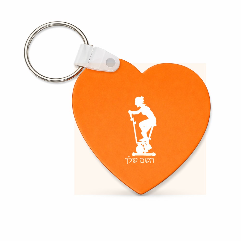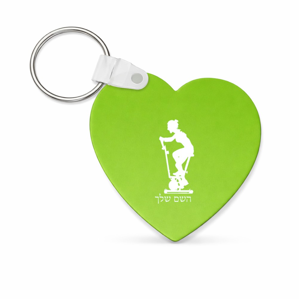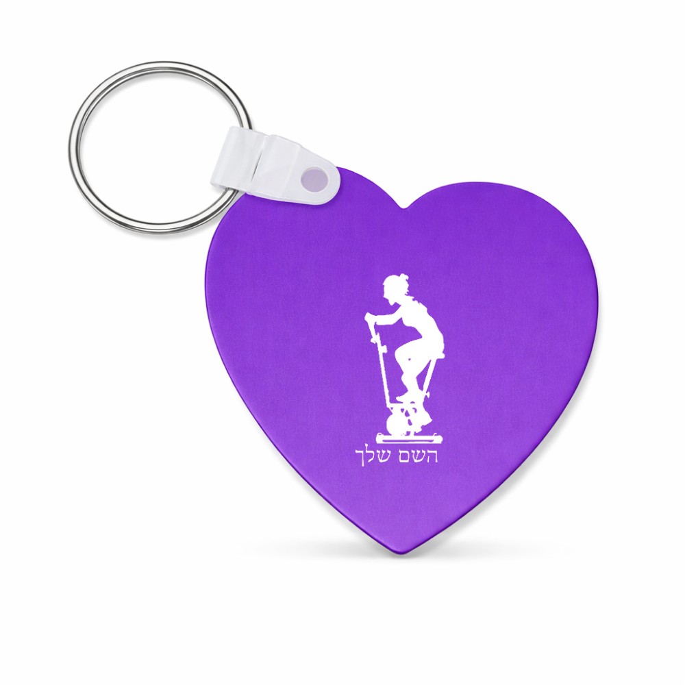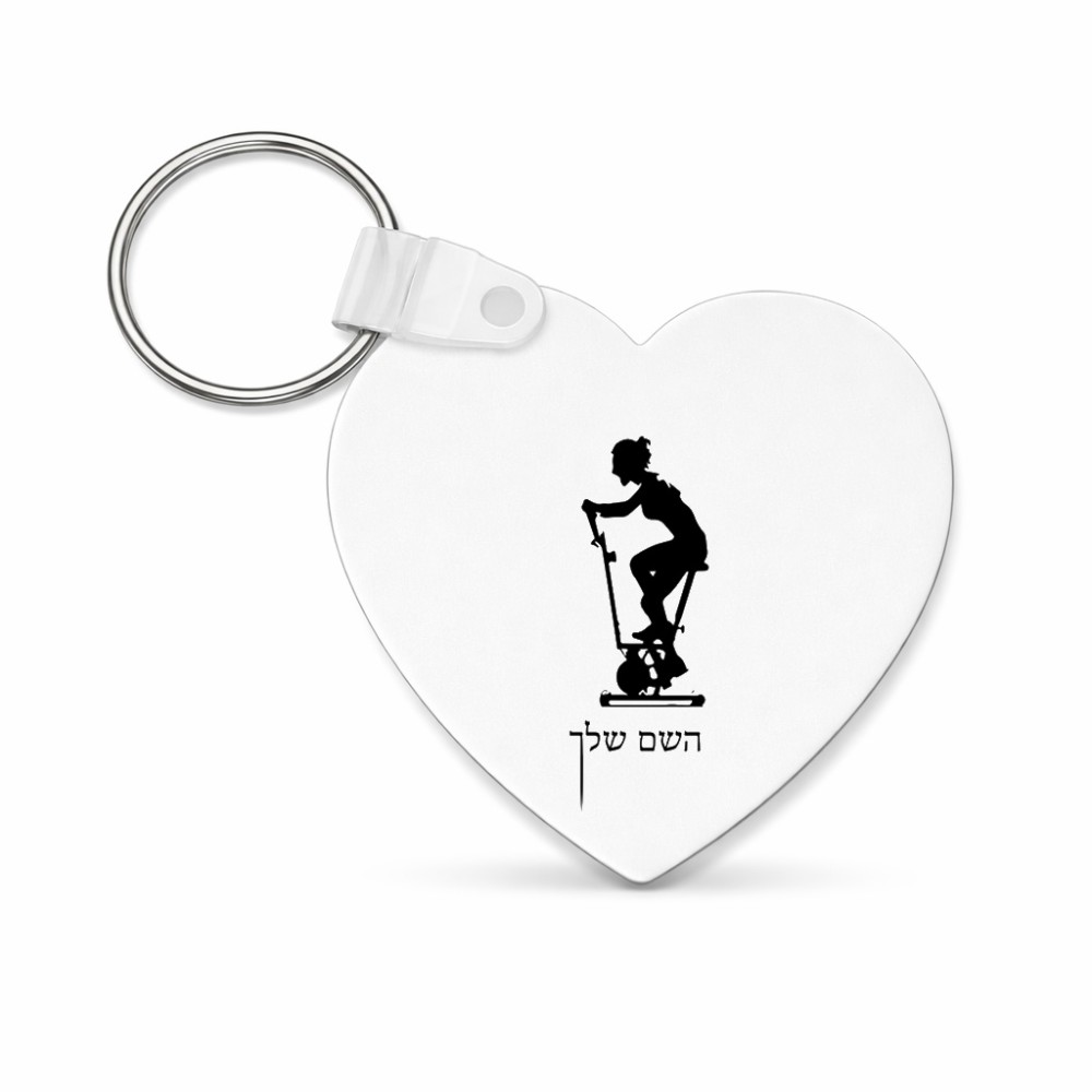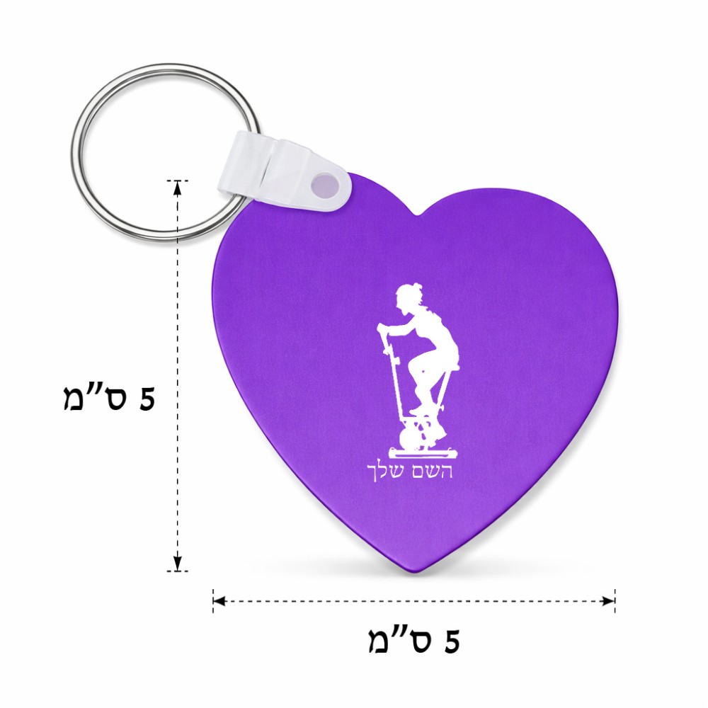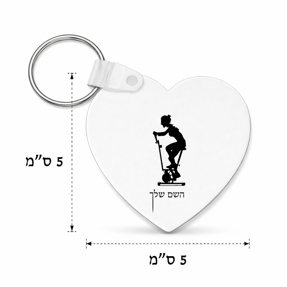 מחזיק מפתחות בצורת לב בעיצוב אישי עם השם שלך בעיצוב אימון ספינינג - אישה גודל המחזיק 5 × 5 ס"מ. את השם המבוקש ניתן לציין בהזמנה, אם לא צויין אנחנו ניצור קשר לבירור.