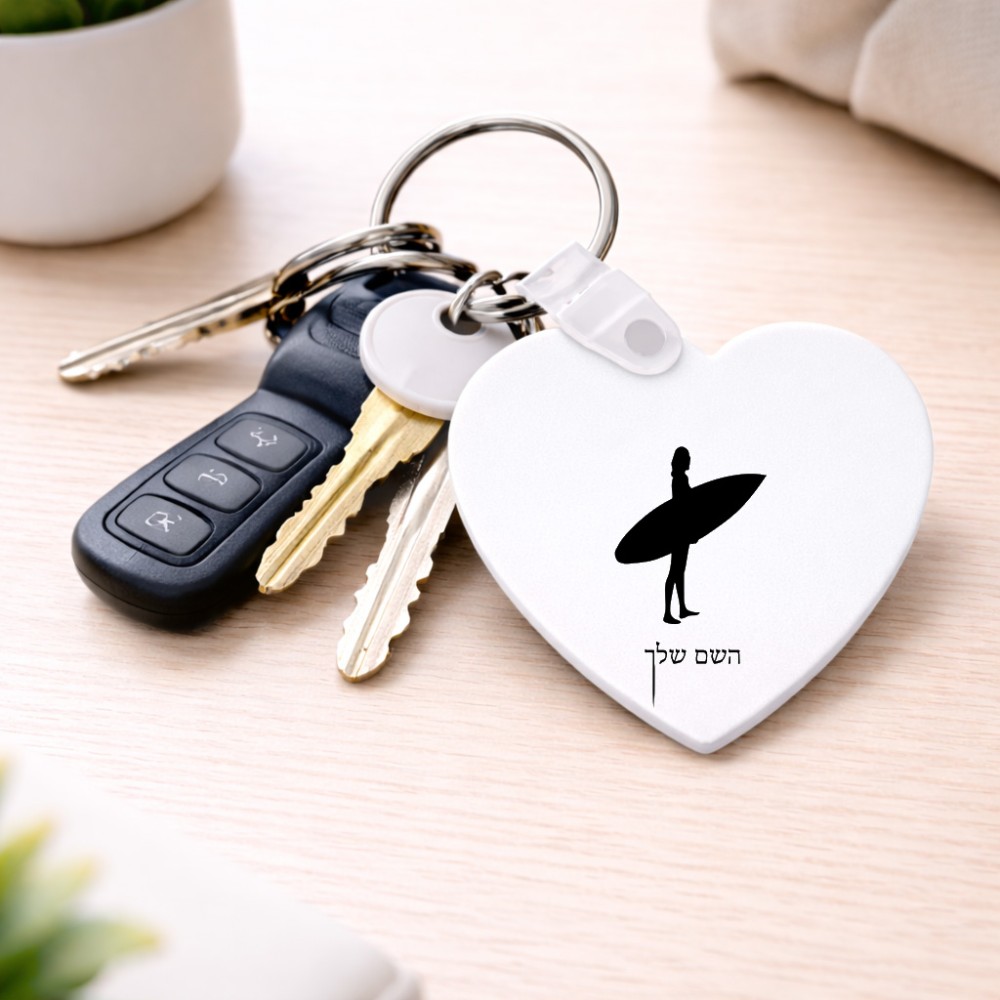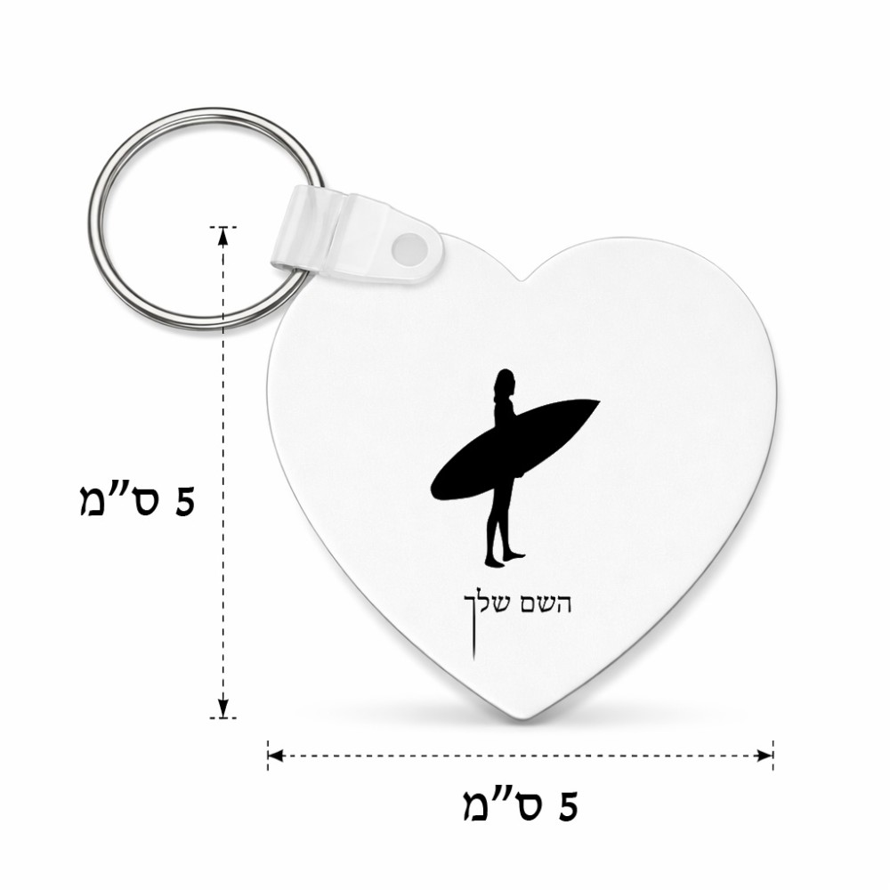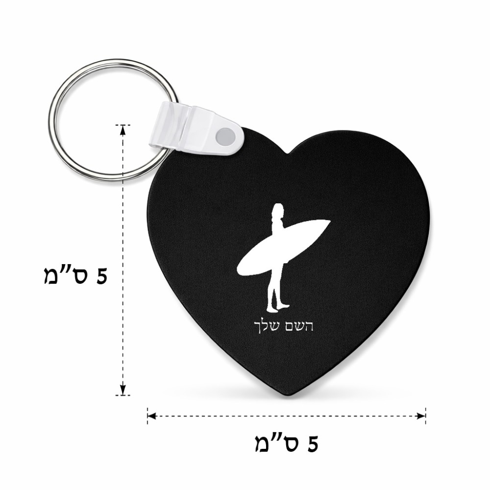 מחזיק מפתחות בצורת לב בעיצוב אישי עם השם שלך בעיצוב גלישה - גלישה גודל המחזיק 5 × 5 ס"מ. את השם המבוקש ניתן לציין בהזמנה, אם לא צויין אנחנו ניצור קשר לבירור.