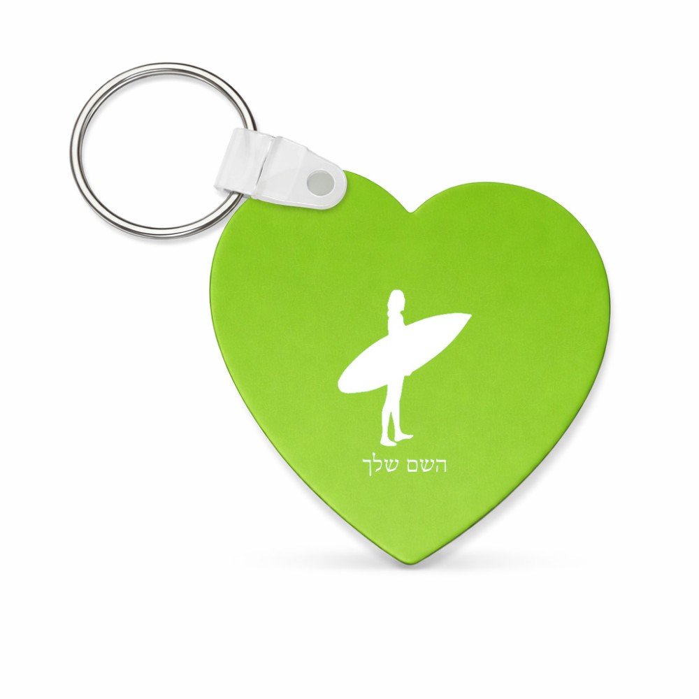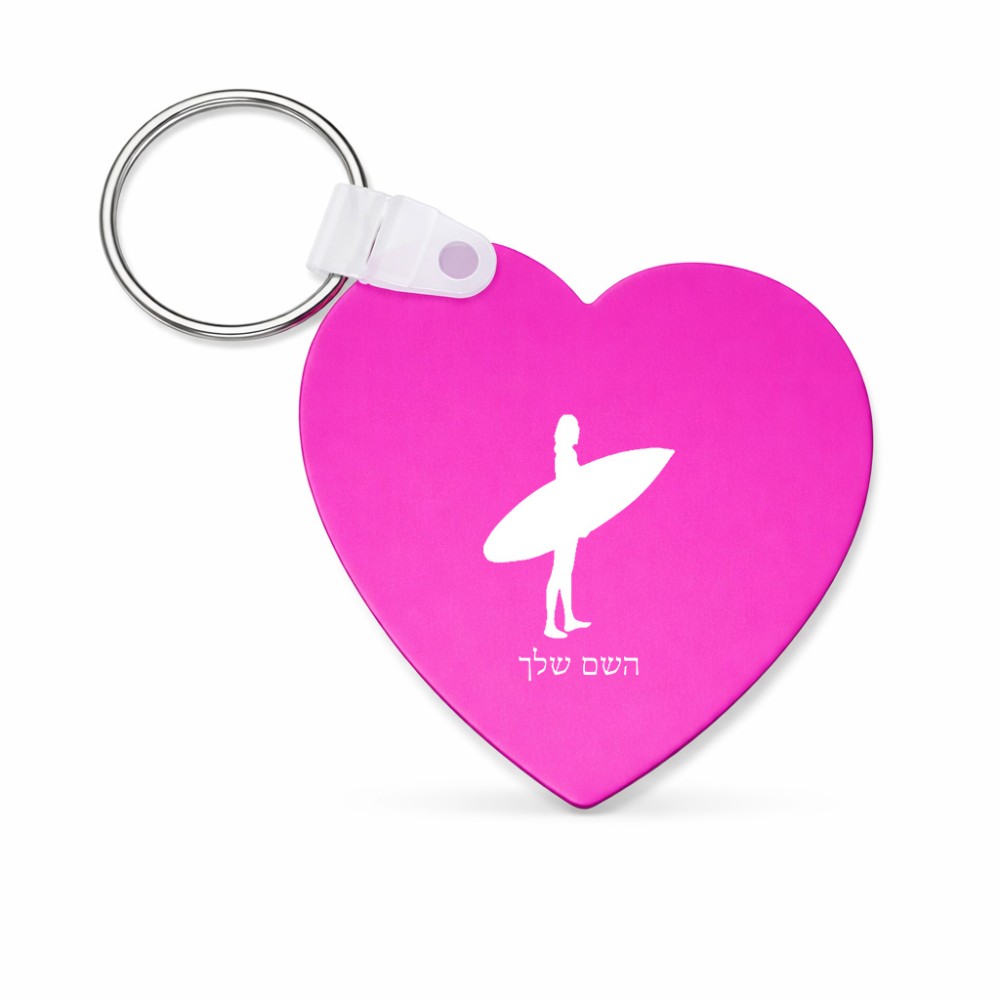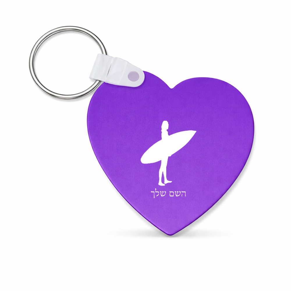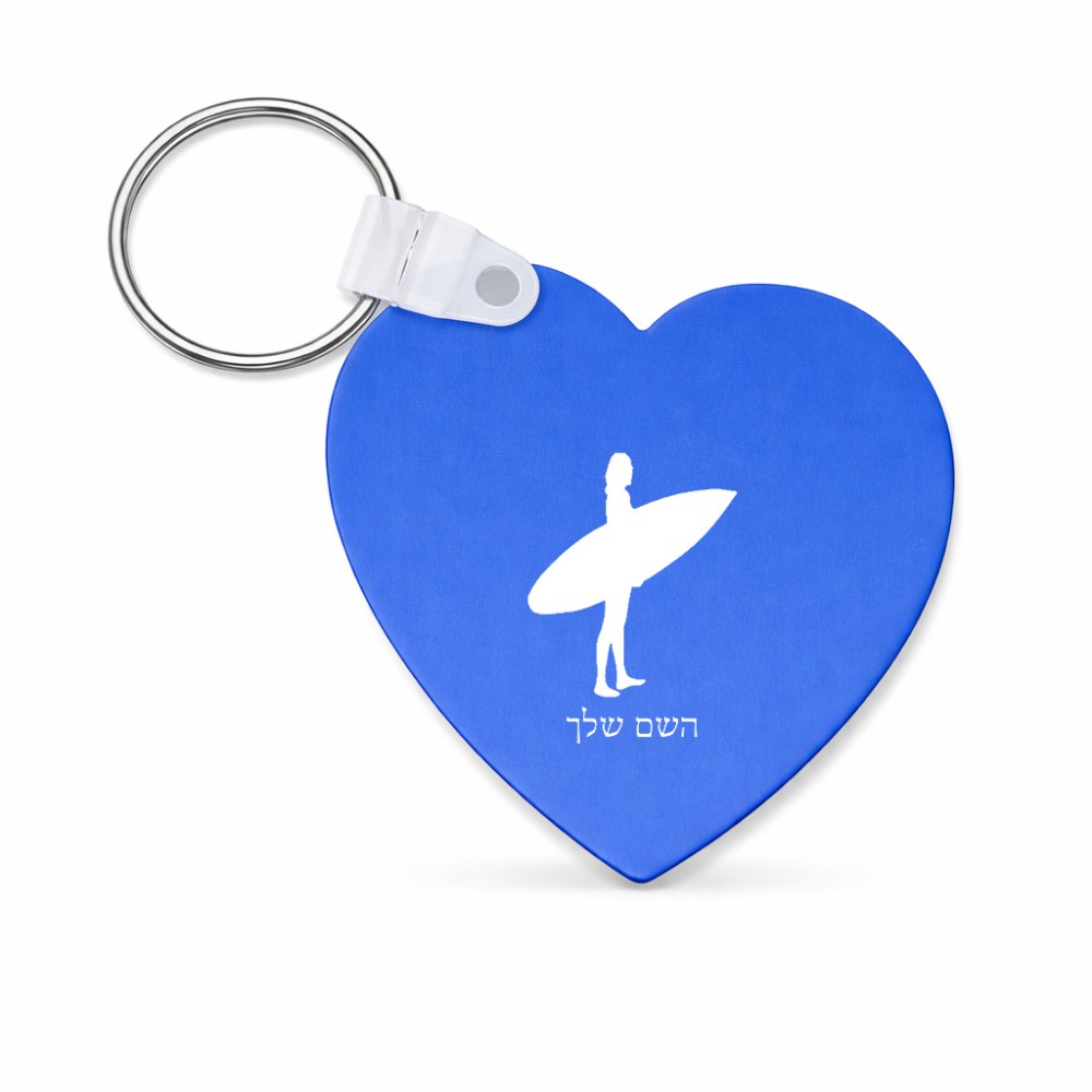 מחזיק מפתחות בצורת לב בעיצוב אישי עם השם שלך בעיצוב גלישה - גלישה גודל המחזיק 5 × 5 ס"מ. את השם המבוקש ניתן לציין בהזמנה, אם לא צויין אנחנו ניצור קשר לבירור.