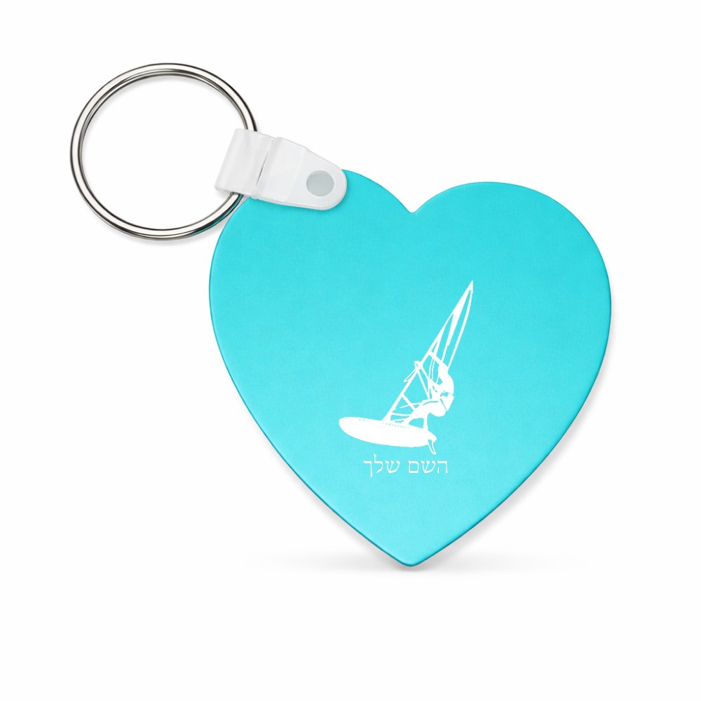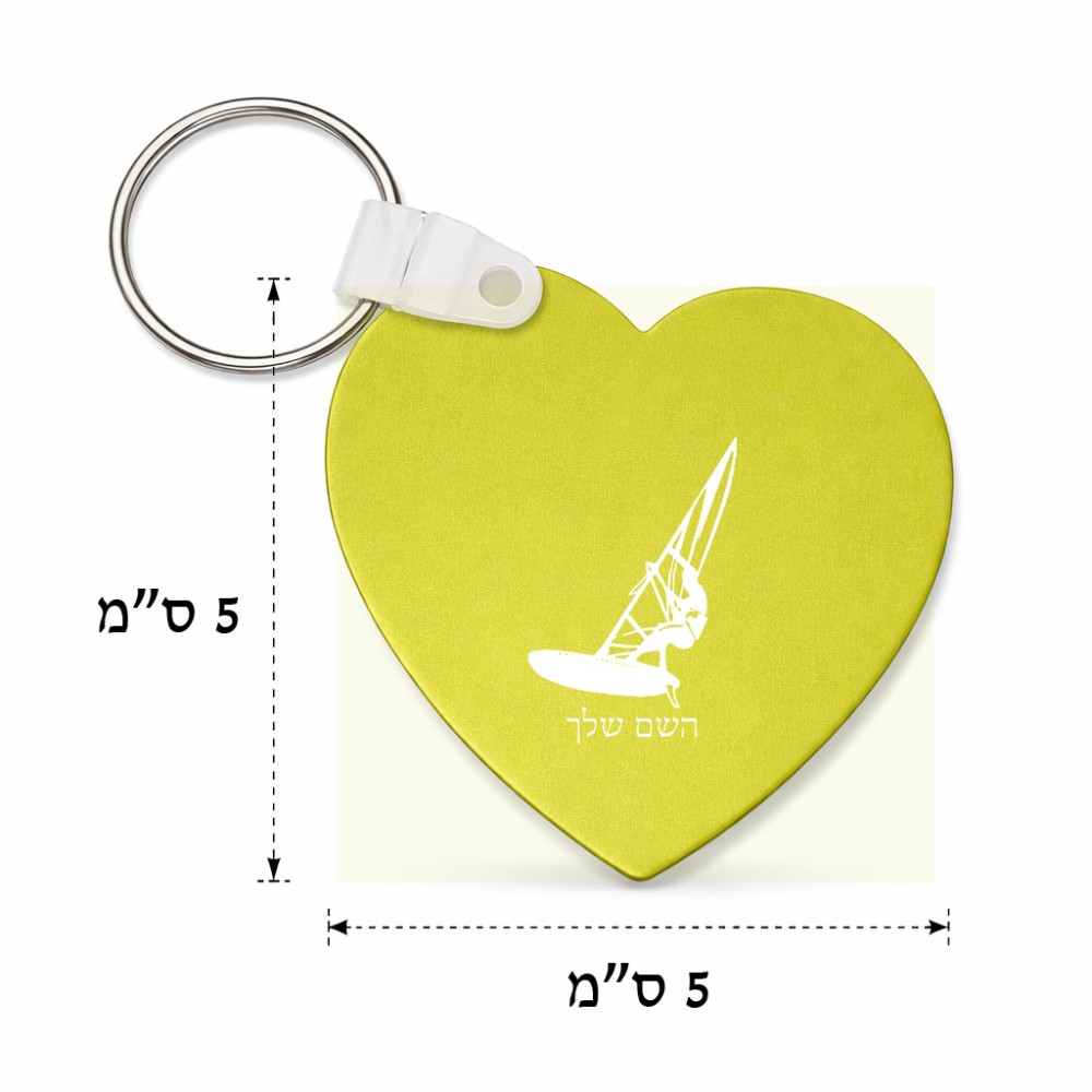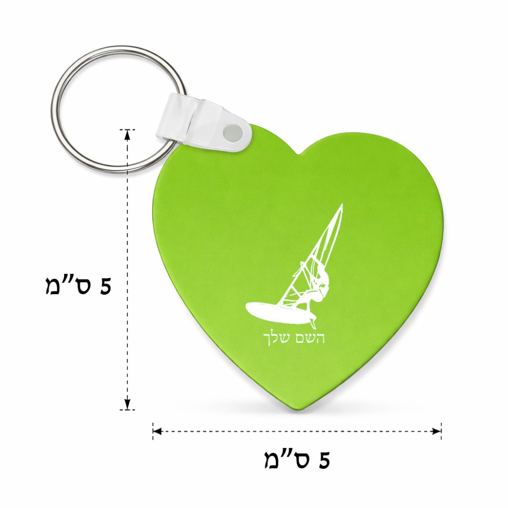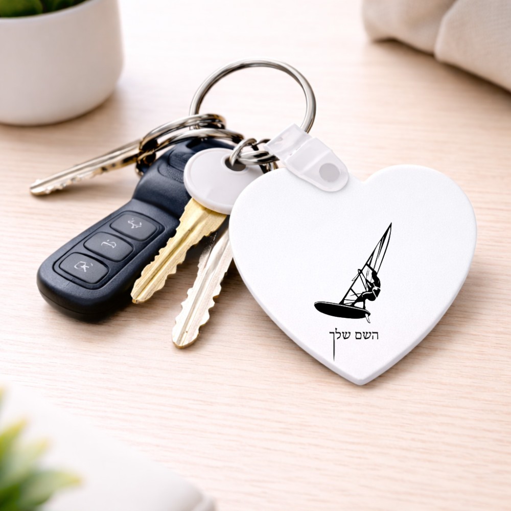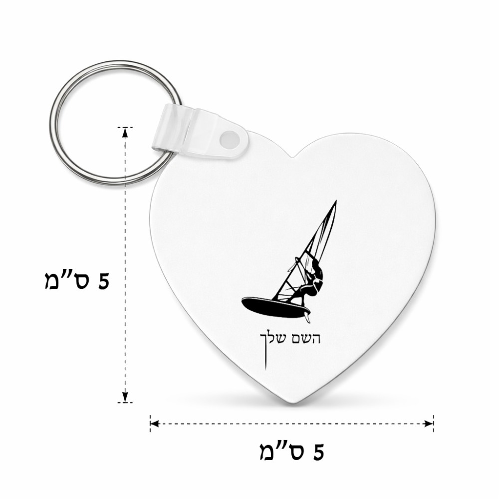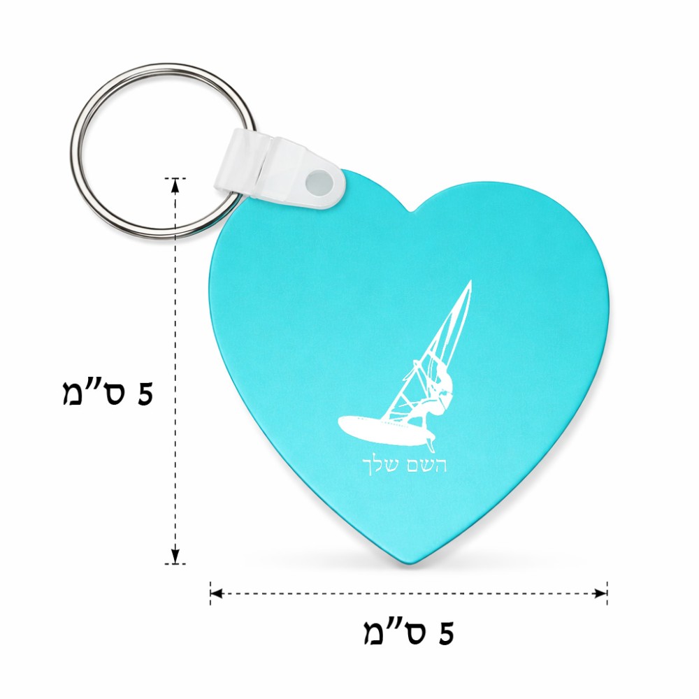 מחזיק מפתחות בצורת לב בעיצוב אישי עם השם שלך בעיצוב לגלוש - גלישה - שייט גודל המחזיק 5 × 5 ס"מ. את השם המבוקש ניתן לציין בהזמנה, אם לא צויין אנחנו ניצור קשר לבירור.