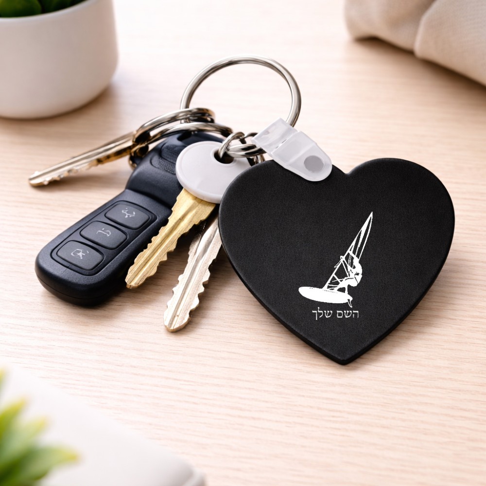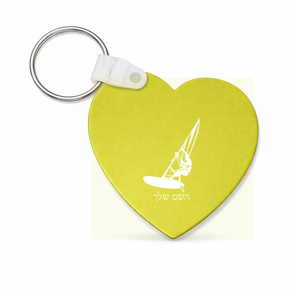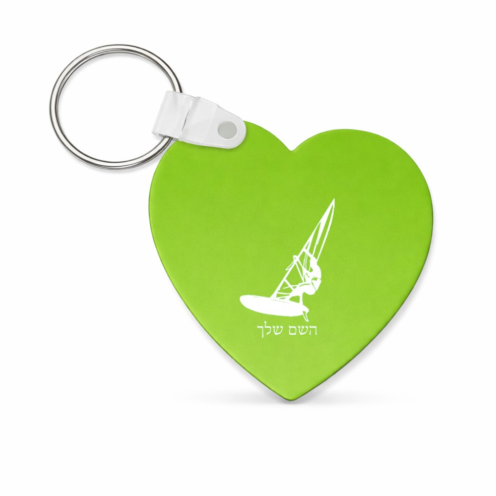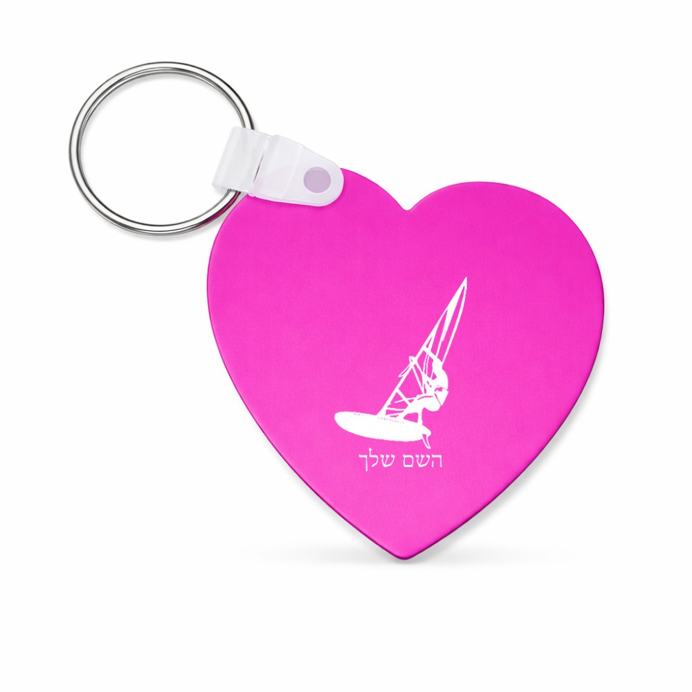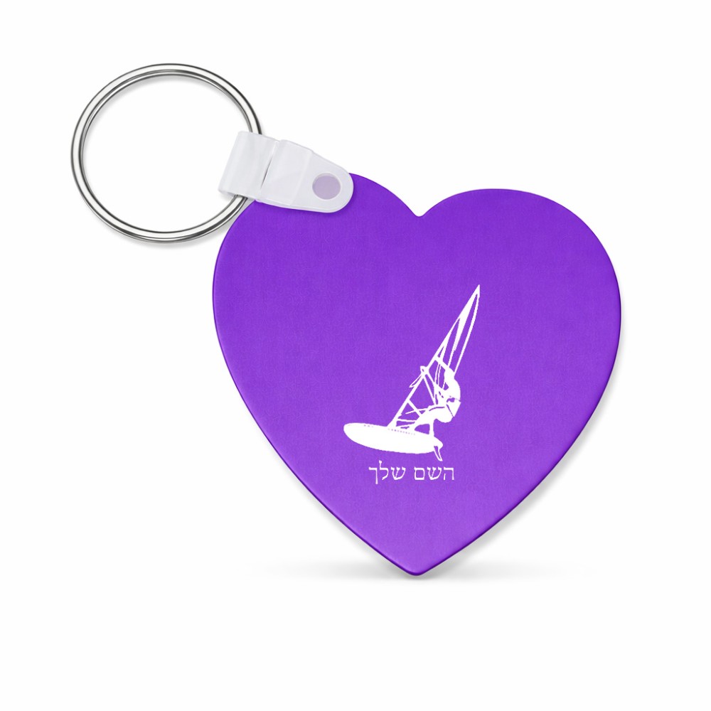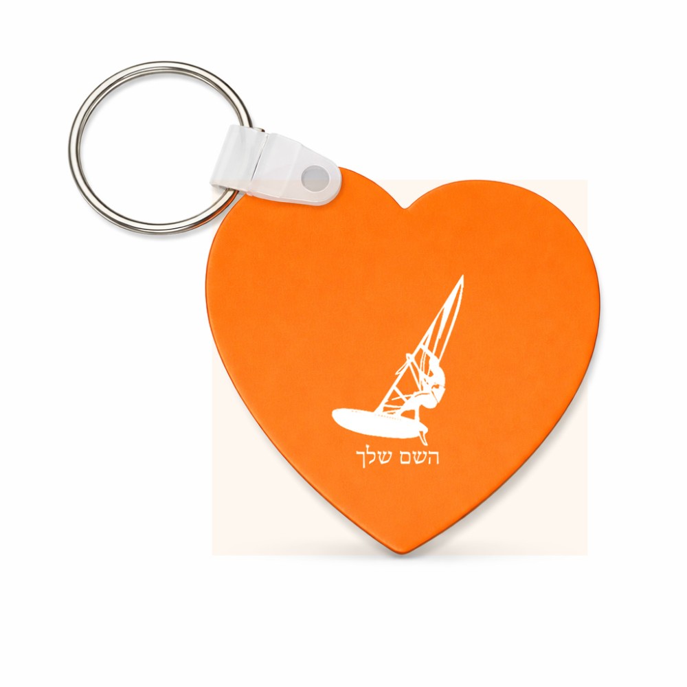 מחזיק מפתחות בצורת לב בעיצוב אישי עם השם שלך בעיצוב לגלוש - גלישה - שייט גודל המחזיק 5 × 5 ס"מ. את השם המבוקש ניתן לציין בהזמנה, אם לא צויין אנחנו ניצור קשר לבירור.