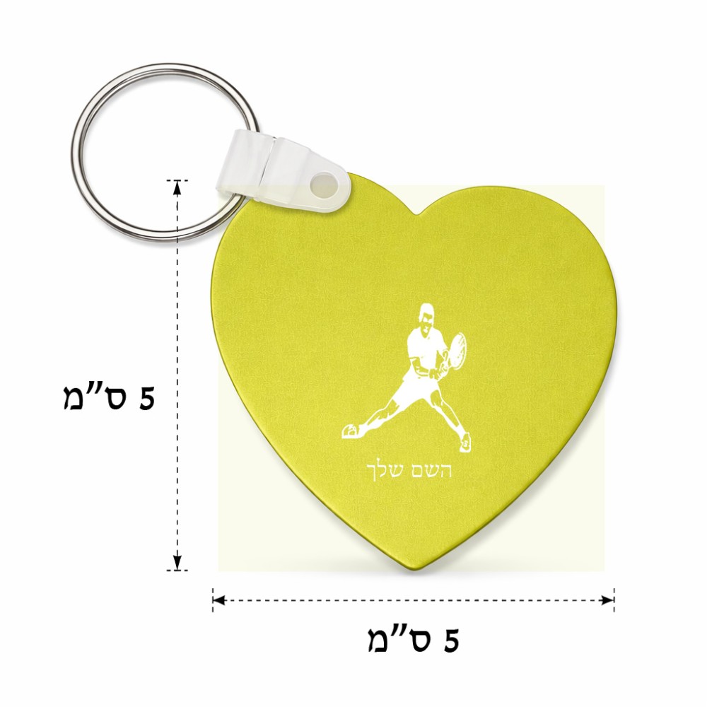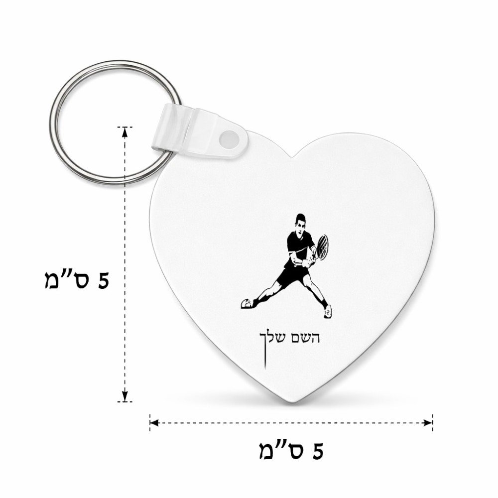 מחזיק מפתחות בצורת לב בעיצוב אישי עם השם שלך בעיצוב שחקן טניס גודל המחזיק 5 × 5 ס"מ. את השם המבוקש ניתן לציין בהזמנה, אם לא צויין אנחנו ניצור קשר לבירור.