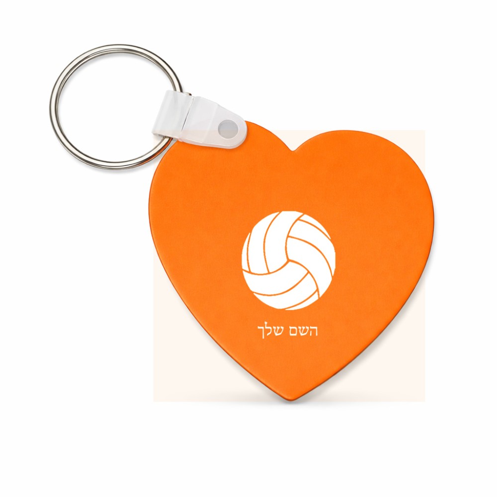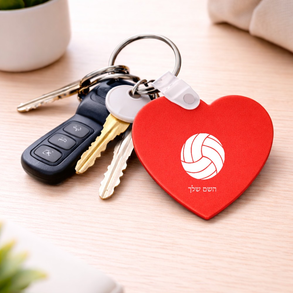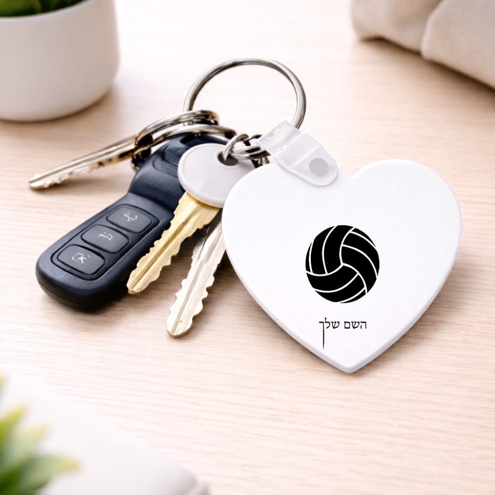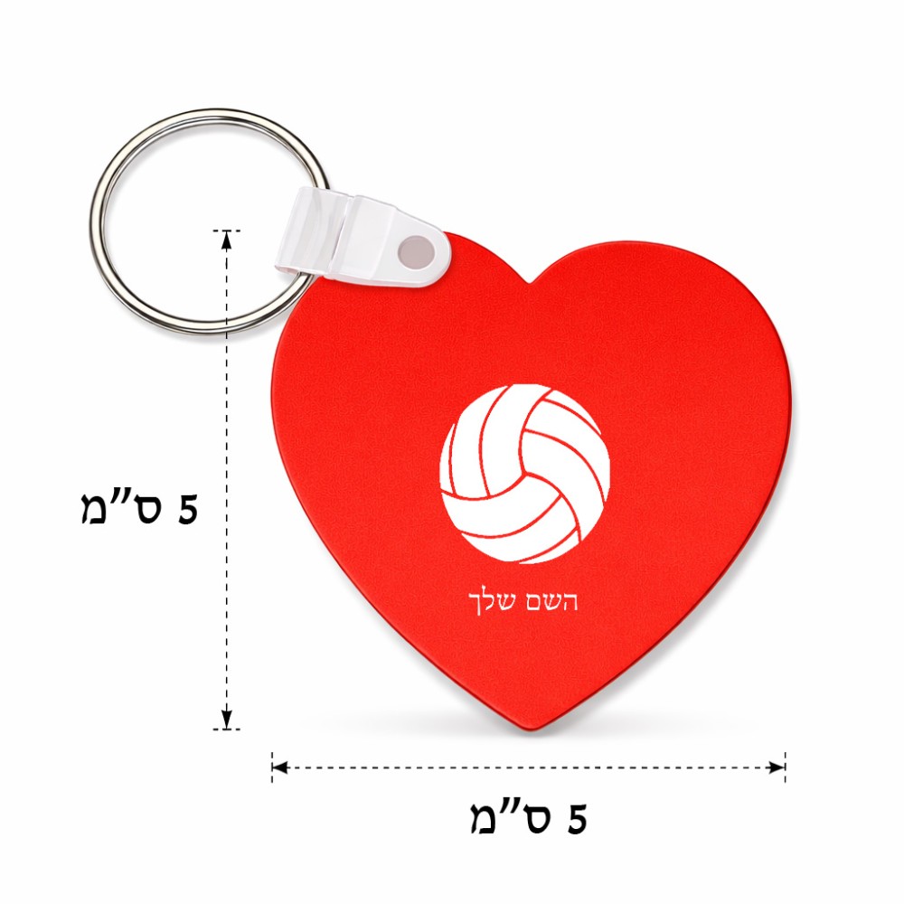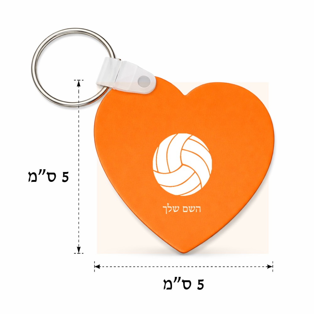 מחזיק מפתחות בצורת לב בעיצוב אישי עם השם שלך בעיצוב כדור כדורעף גודל המחזיק 5 × 5 ס"מ. את השם המבוקש ניתן לציין בהזמנה, אם לא צויין אנחנו ניצור קשר לבירור.