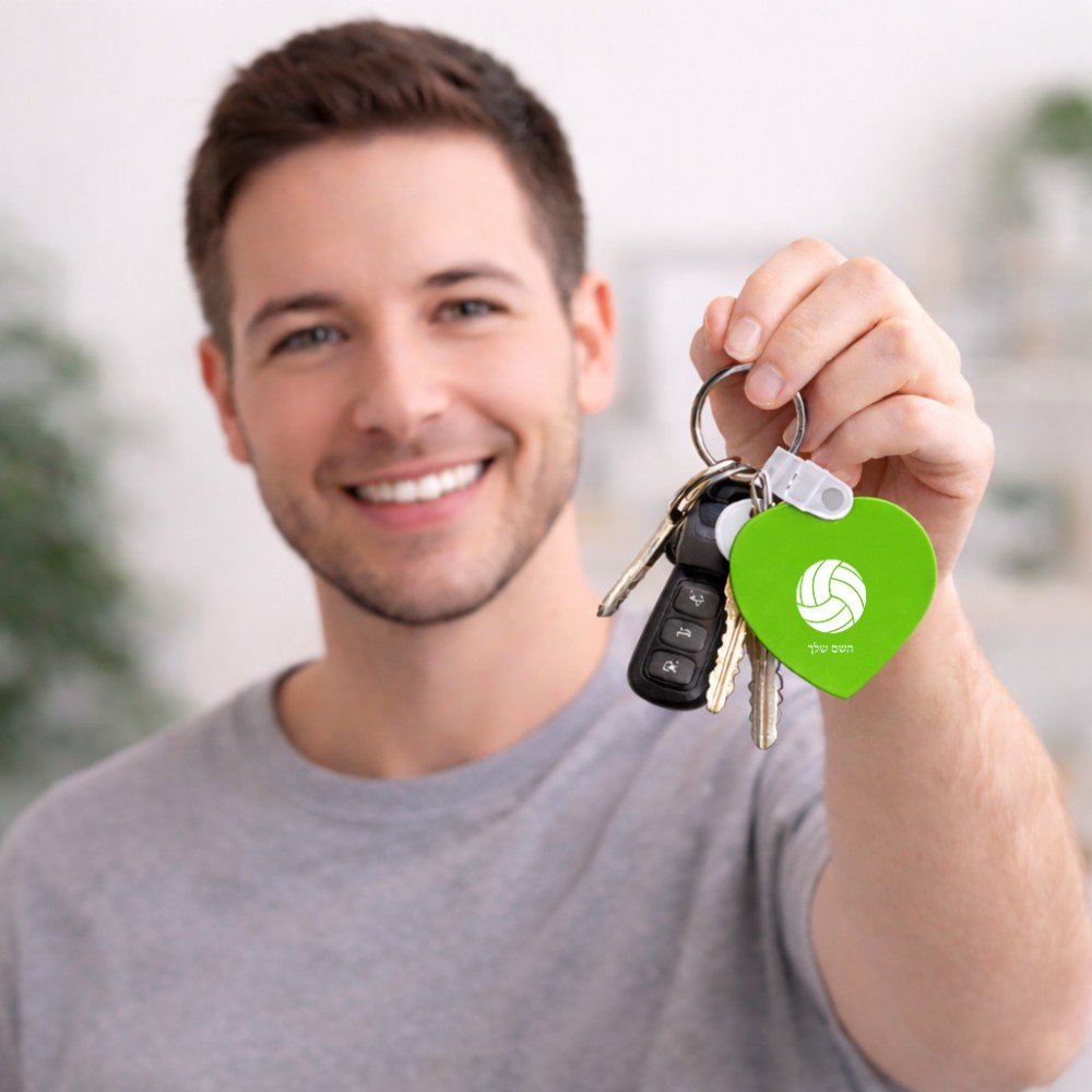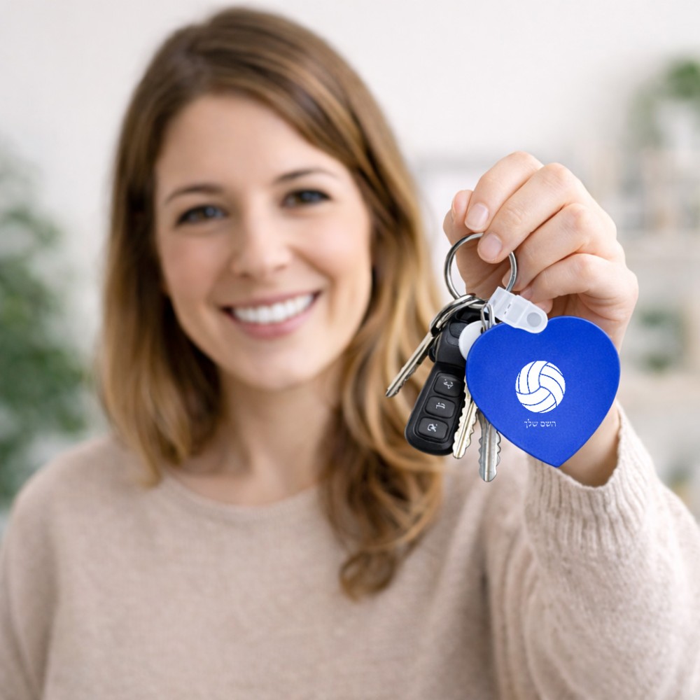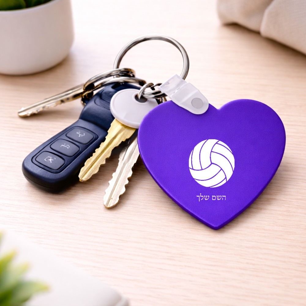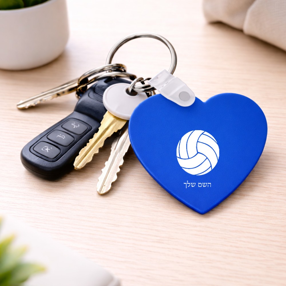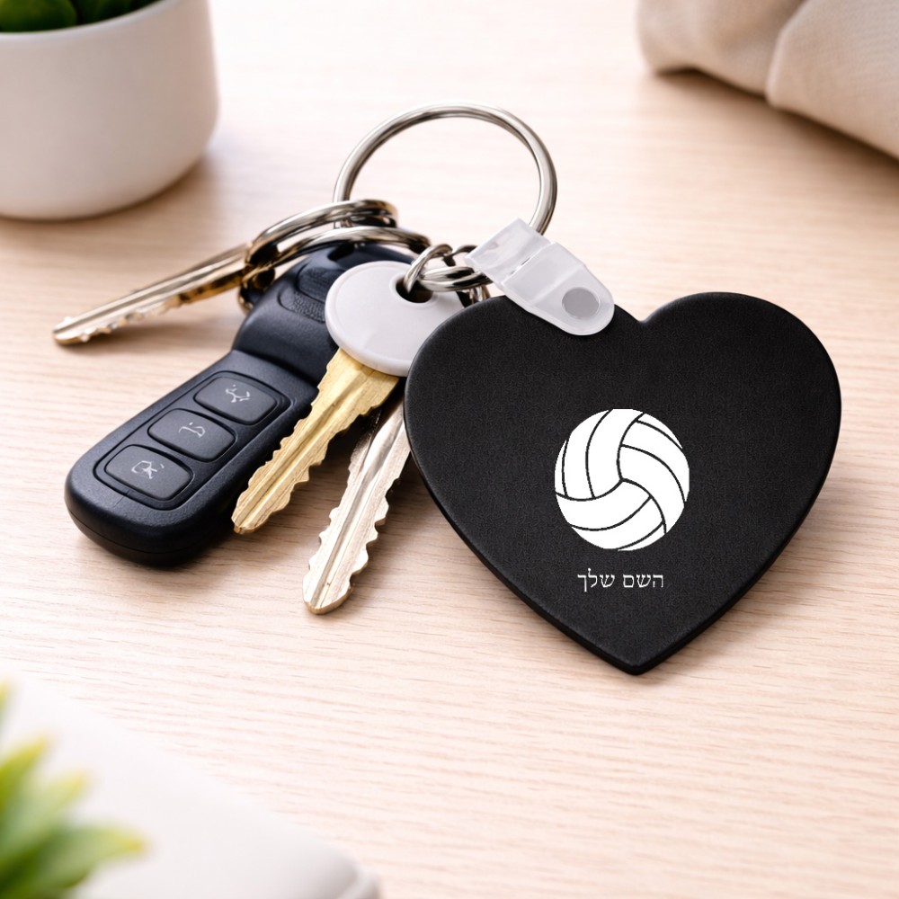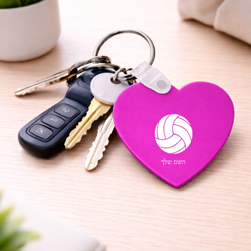 מחזיק מפתחות בצורת לב בעיצוב אישי עם השם שלך בעיצוב כדור כדורעף גודל המחזיק 5 × 5 ס"מ. את השם המבוקש ניתן לציין בהזמנה, אם לא צויין אנחנו ניצור קשר לבירור.