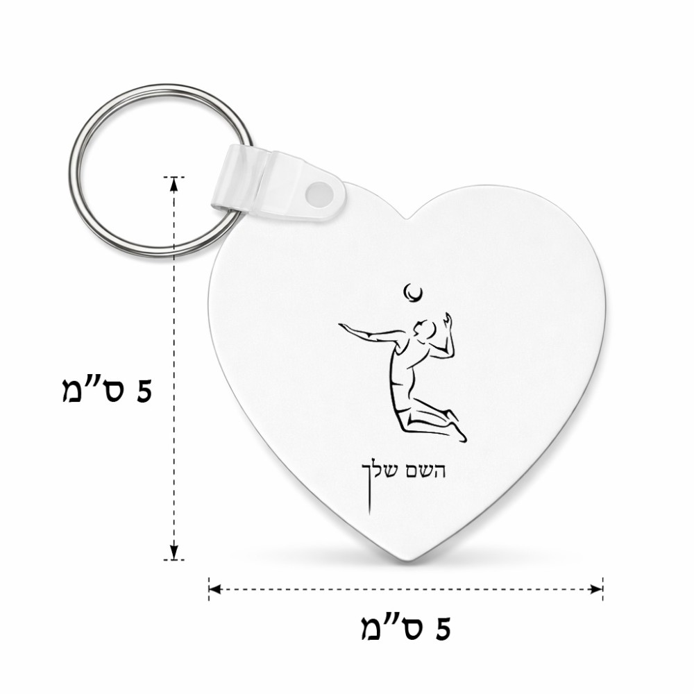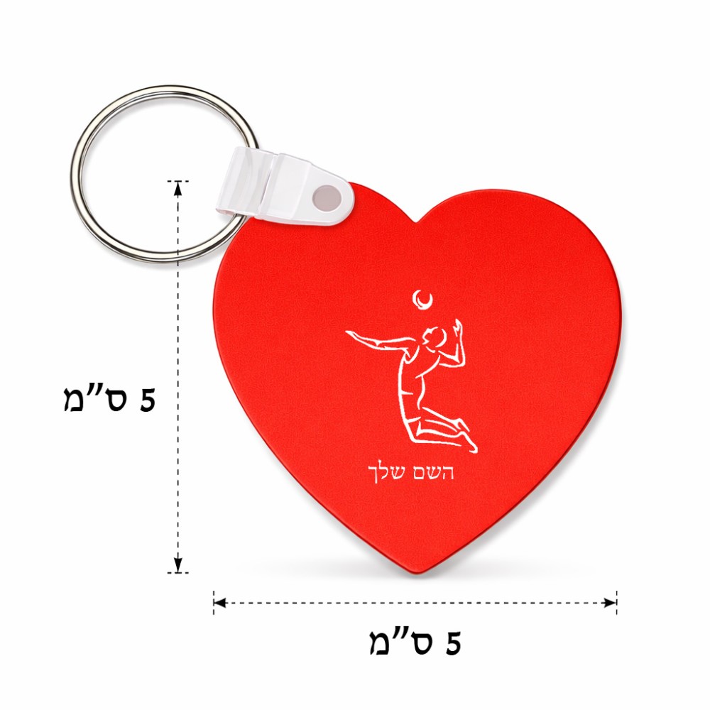 מחזיק מפתחות בצורת לב בעיצוב אישי עם השם שלך בעיצוב שחקן כדורעף גודל המחזיק 5 × 5 ס"מ
