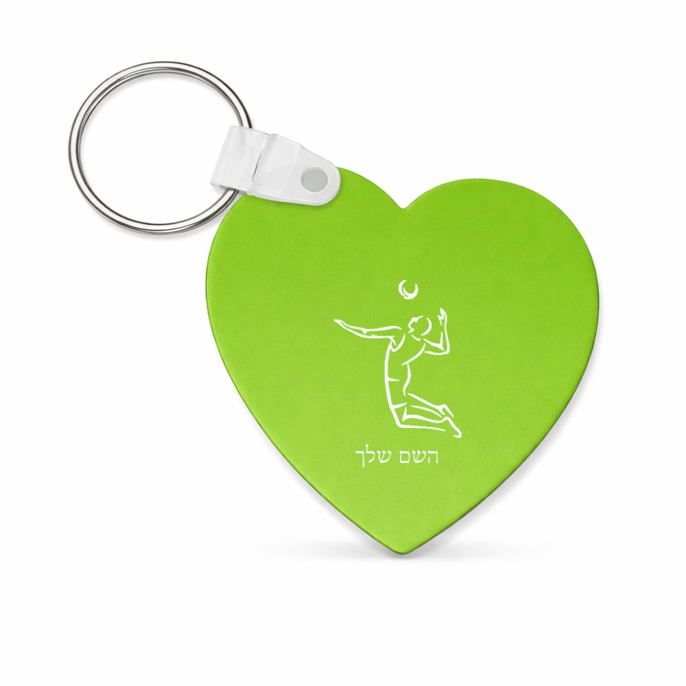 מחזיק מפתחות בצורת לב בעיצוב אישי עם השם שלך בעיצוב שחקן כדורעף גודל המחזיק 5 × 5 ס"מ. את השם המבוקש ניתן לציין בהזמנה, אם לא צויין אנחנו ניצור קשר לבירור.