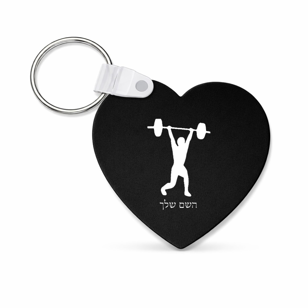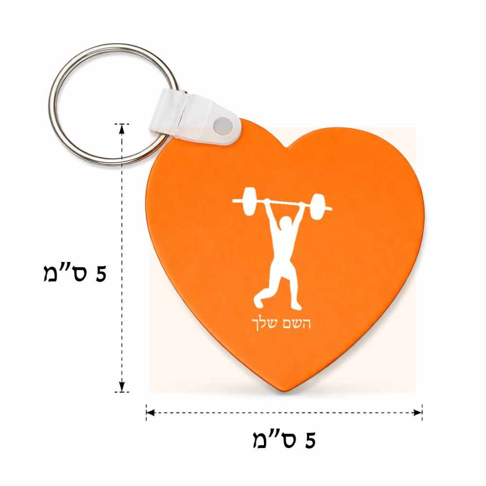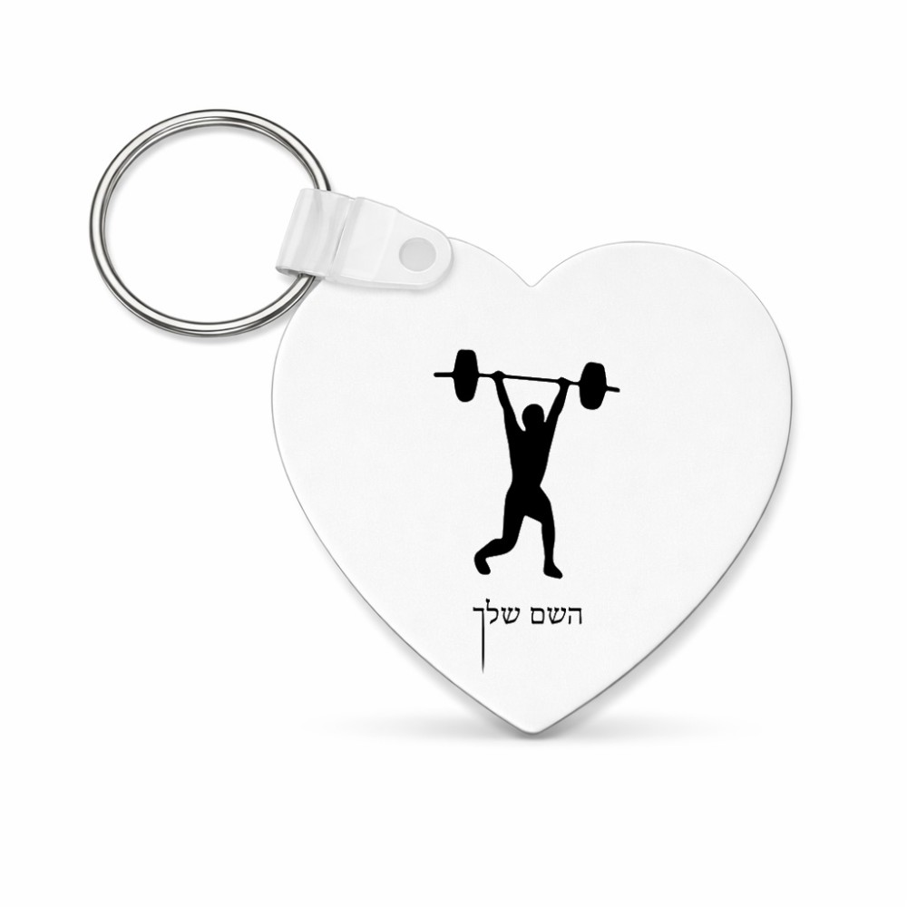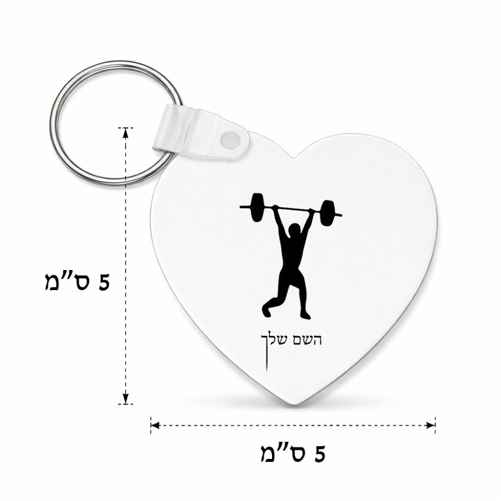מחזיק מפתחות בצורת לב בעיצוב אישי עם השם שלך בעיצוב הרמת משקולות גודל המחזיק 5 × 5 ס"מ. את השם המבוקש ניתן לציין בהזמנה, אם לא צויין אנחנו ניצור קשר לבירור.