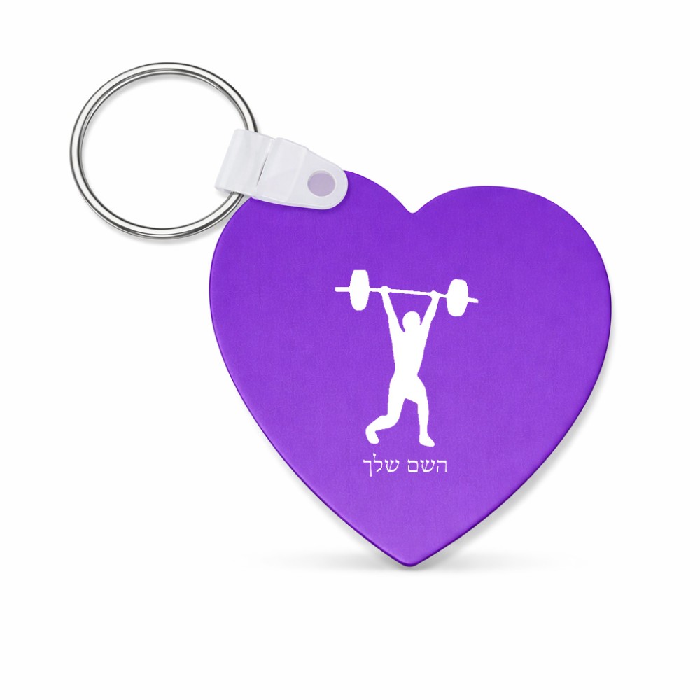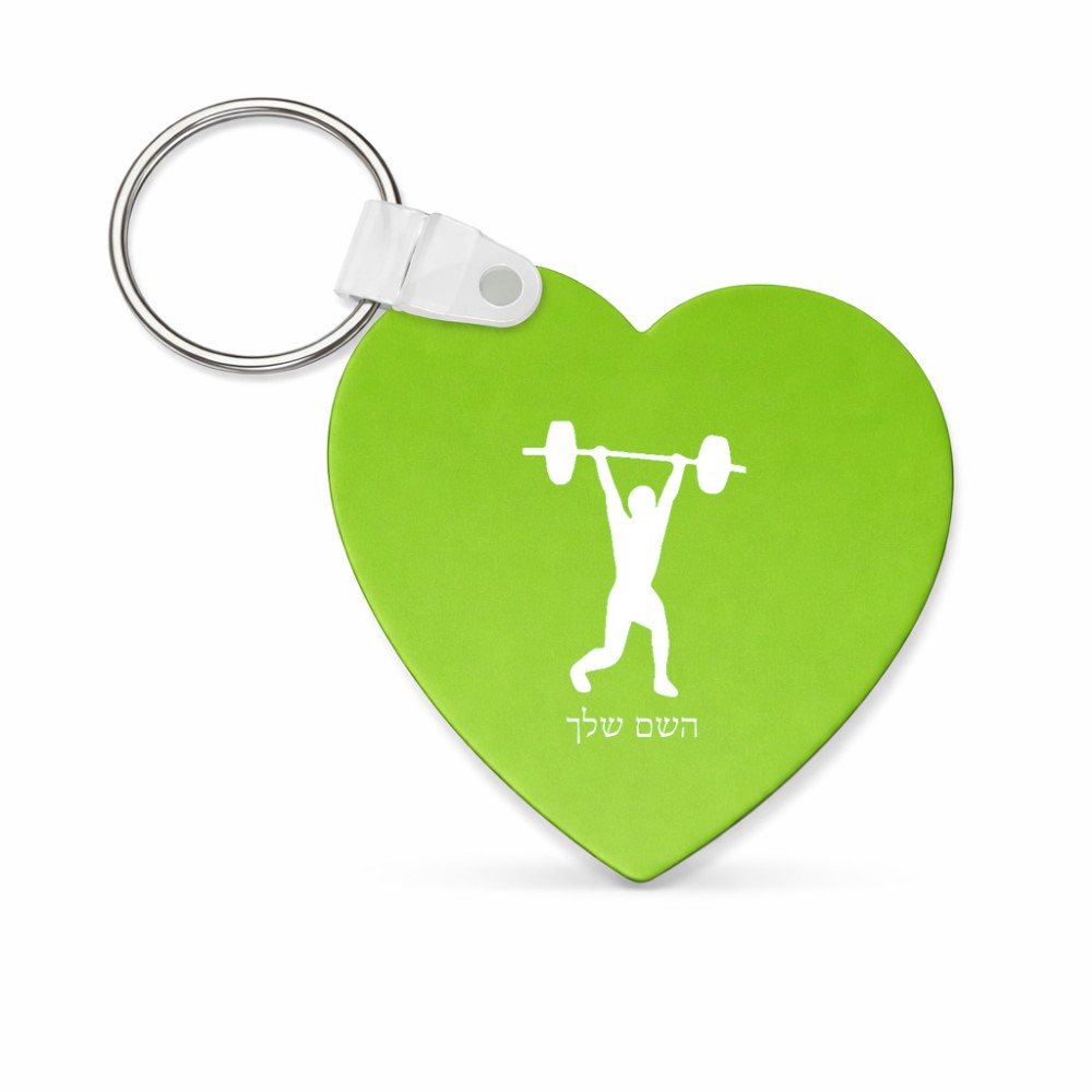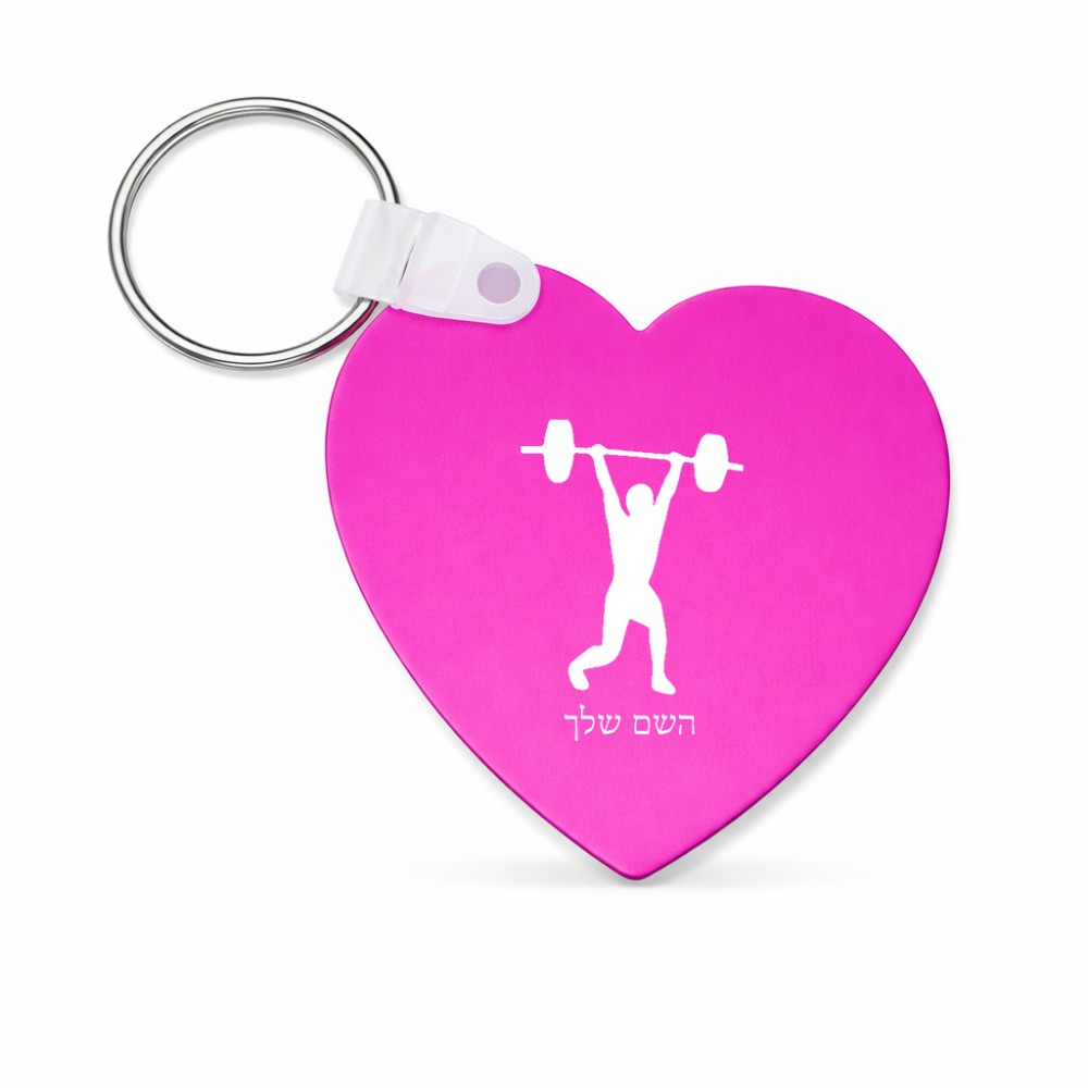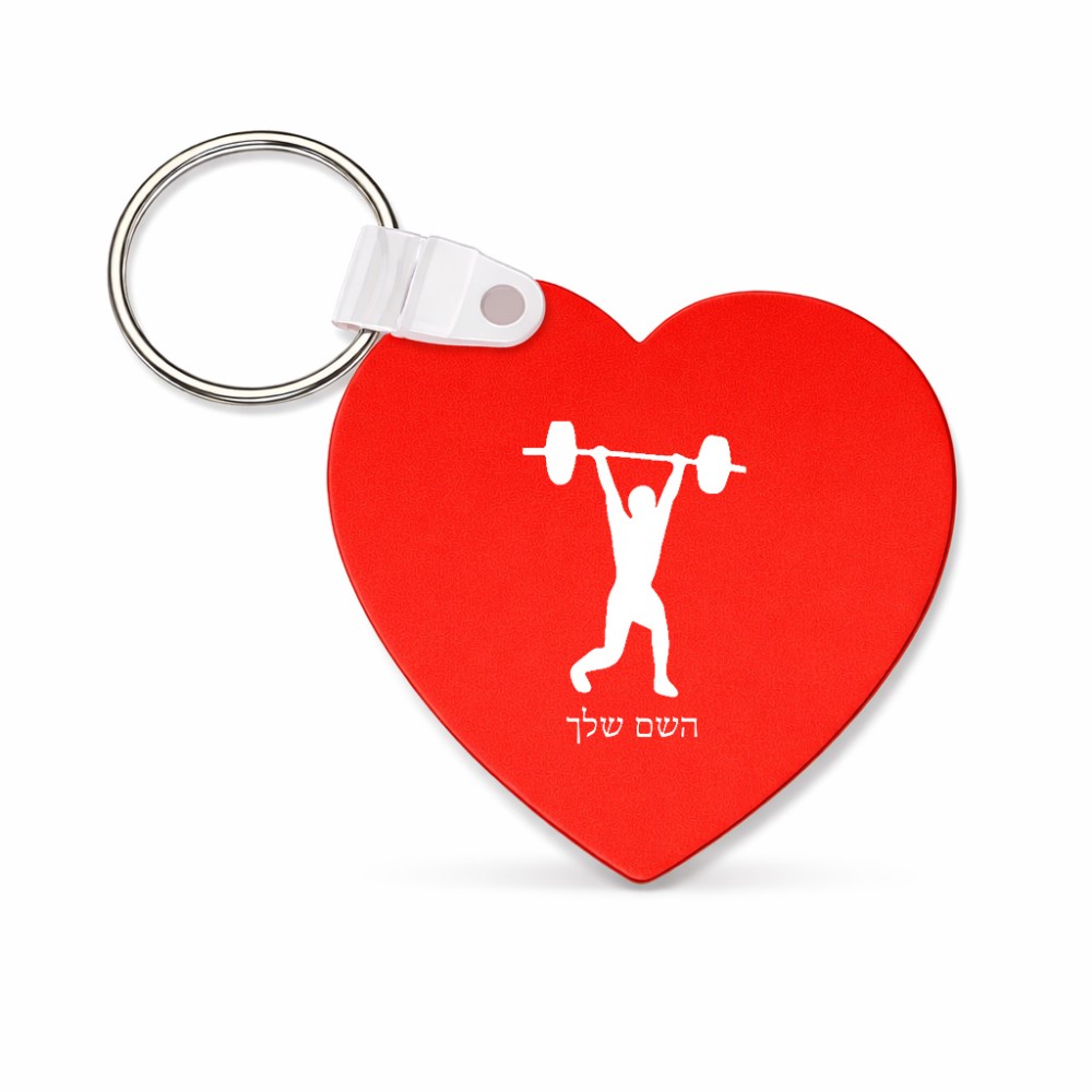 מחזיק מפתחות בצורת לב בעיצוב אישי עם השם שלך בעיצוב הרמת משקולות גודל המחזיק 5 × 5 ס"מ. את השם המבוקש ניתן לציין בהזמנה, אם לא צויין אנחנו ניצור קשר לבירור.
