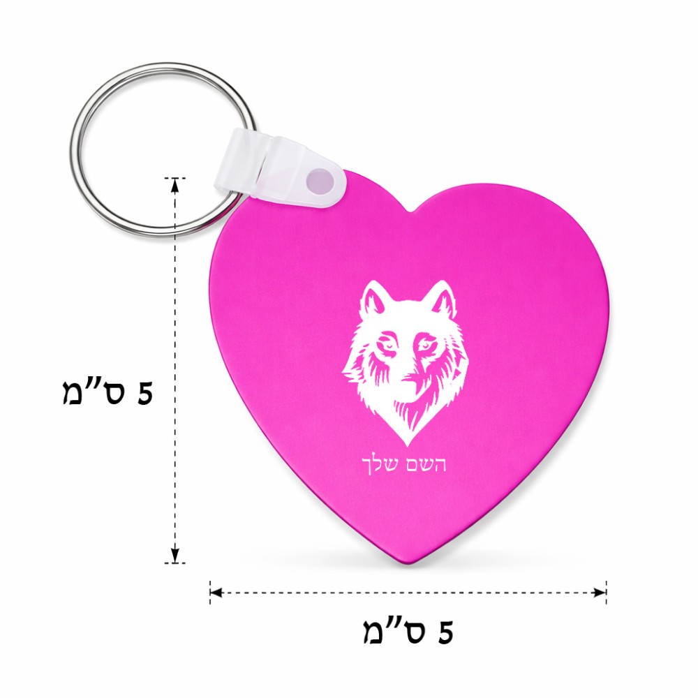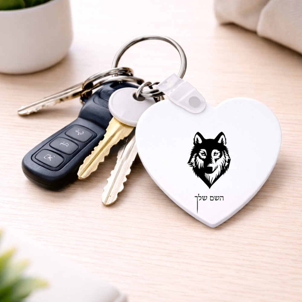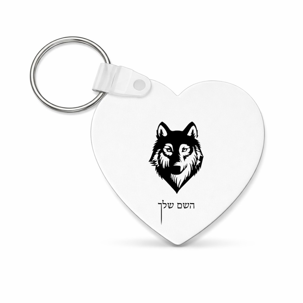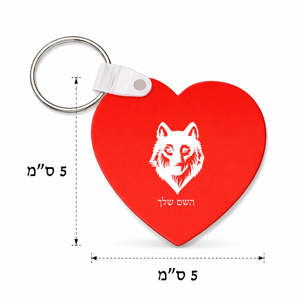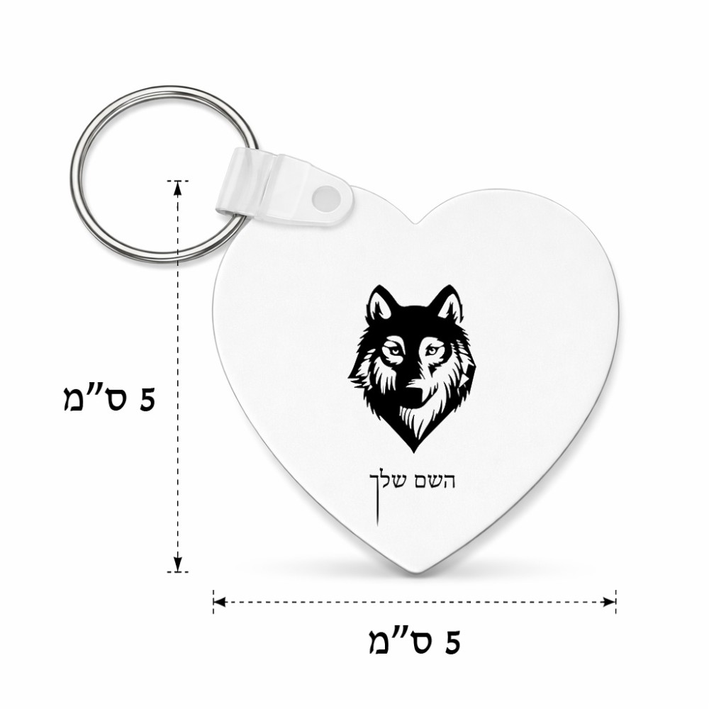 מחזיק מפתחות בצורת לב בעיצוב אישי עם השם שלך בעיצוב זאב גודל המחזיק 5 × 5 ס"מ. את השם המבוקש ניתן לציין בהזמנה, אם לא צויין אנחנו ניצור קשר לבירור.