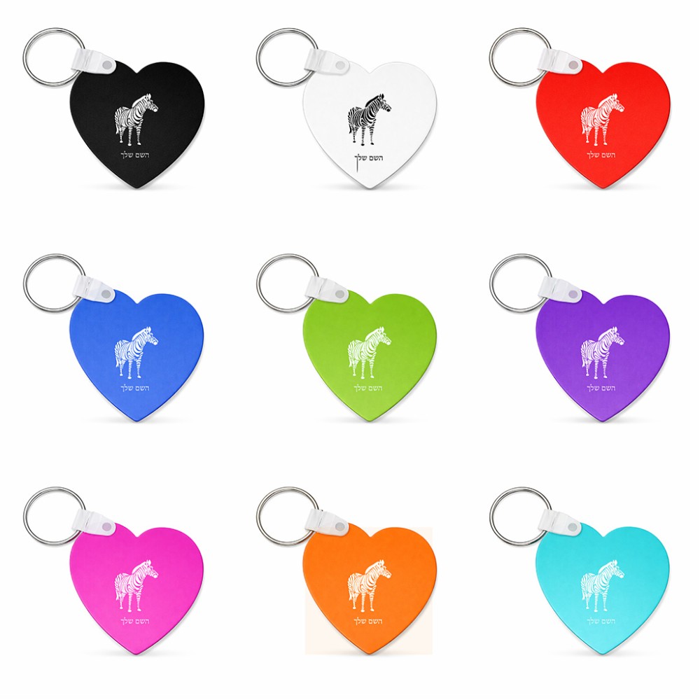 מחזיק מפתחות בצורת לב בעיצוב אישי עם השם שלך בעיצוב זברה גודל המחזיק 5 × 5 ס"מ