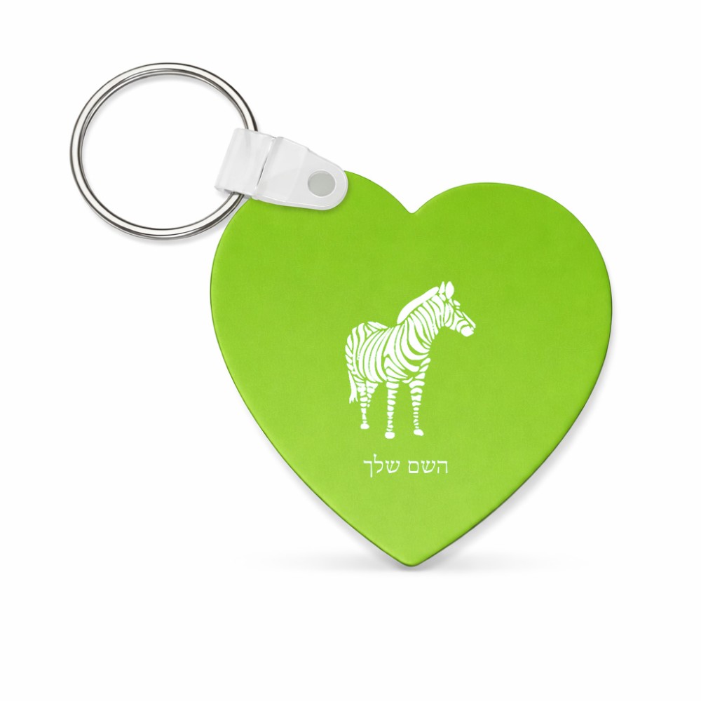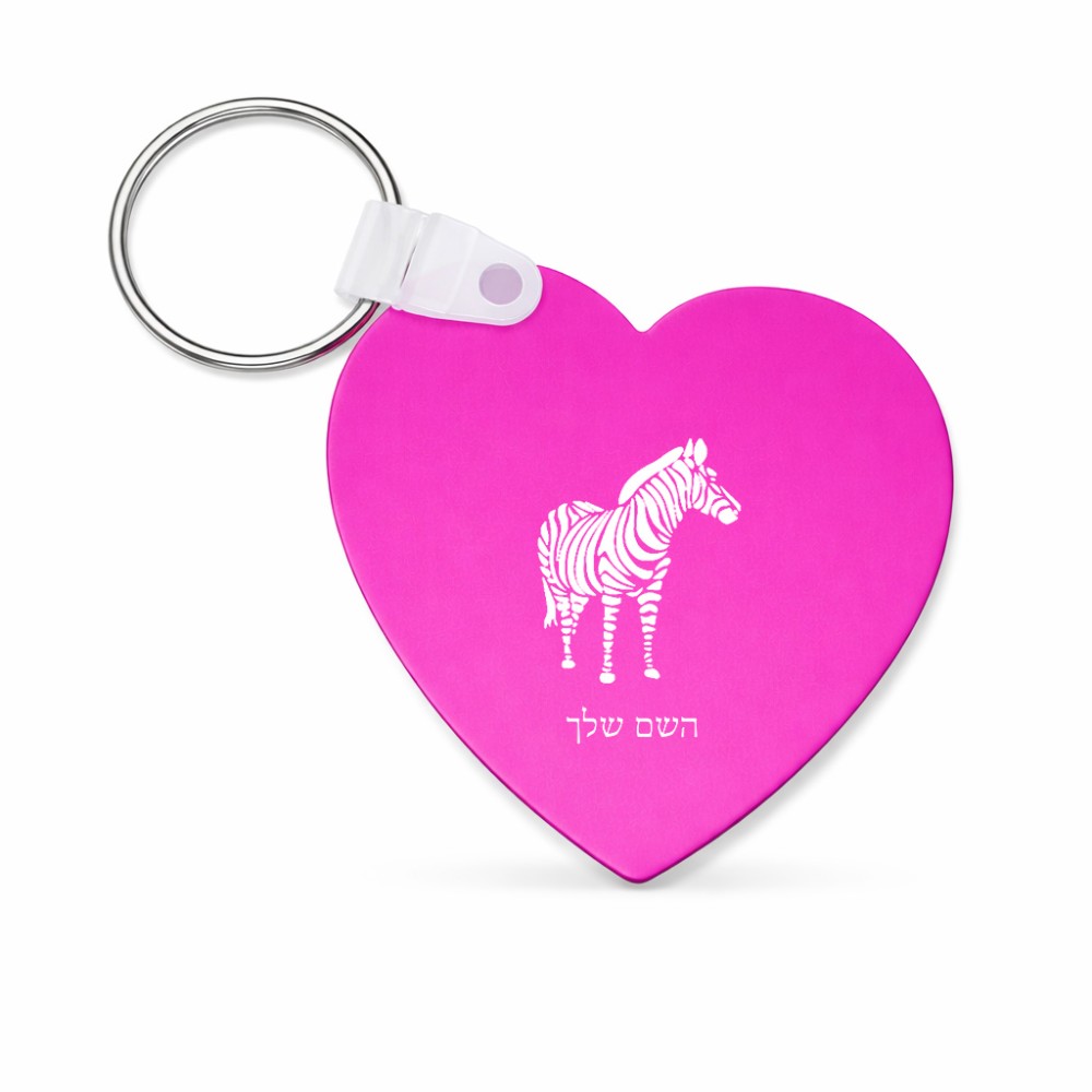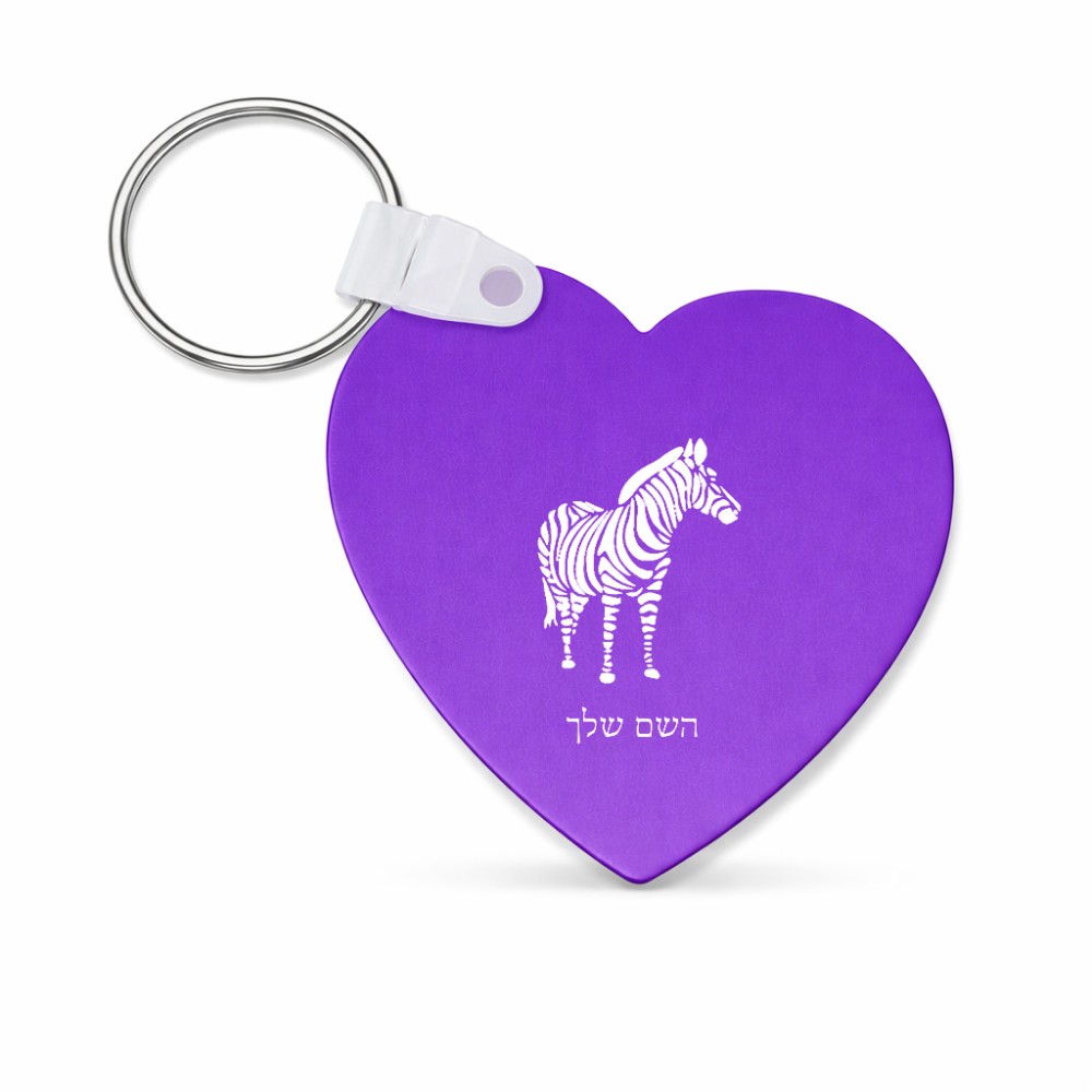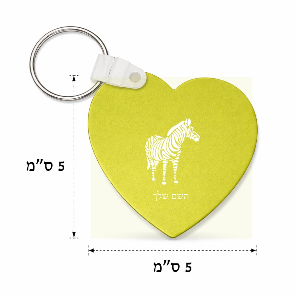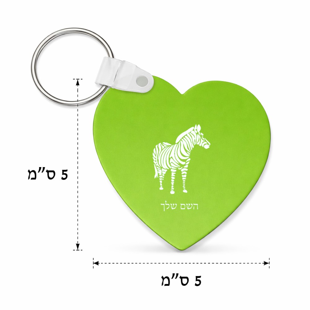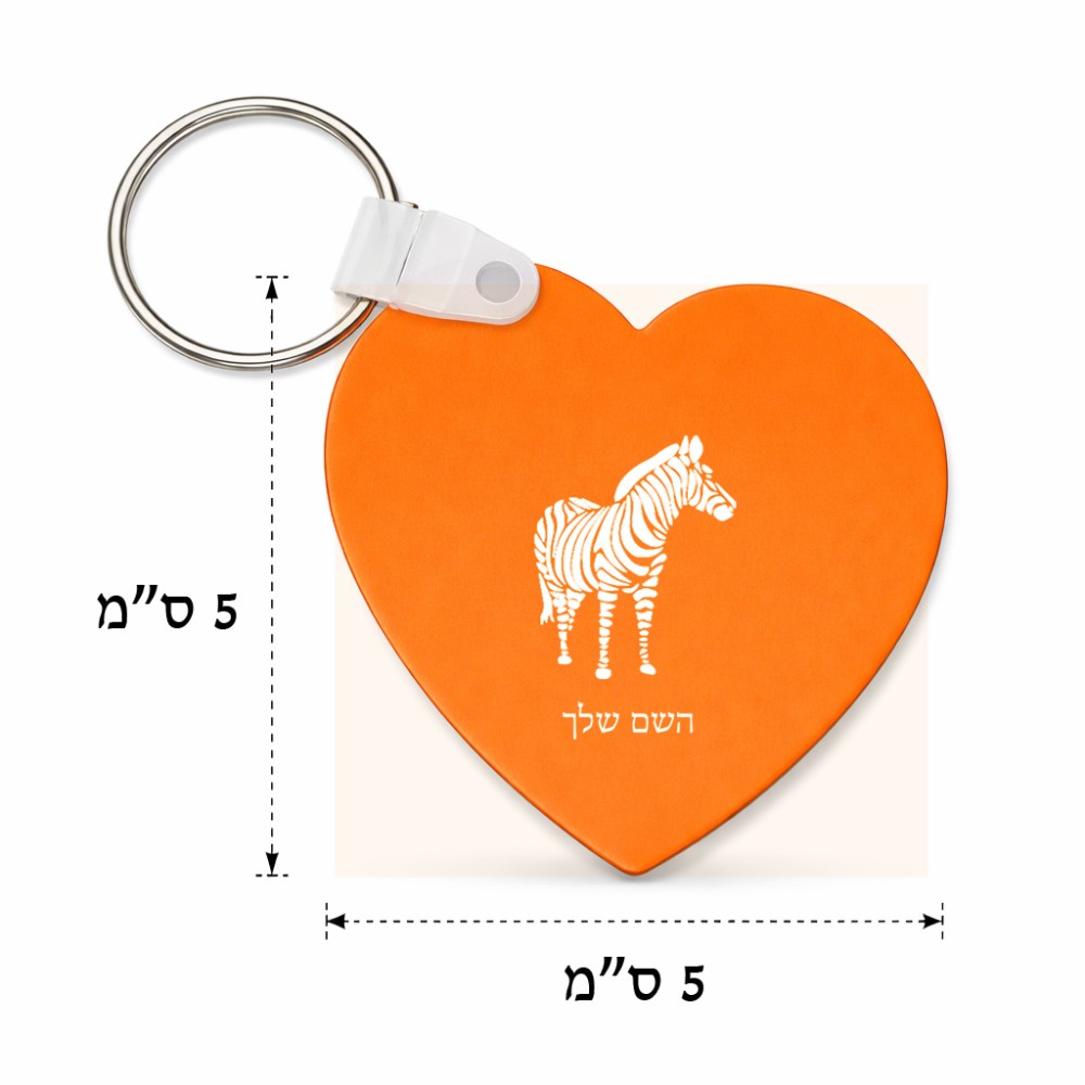 מחזיק מפתחות בצורת לב בעיצוב אישי עם השם שלך בעיצוב זברה גודל המחזיק 5 × 5 ס"מ. את השם המבוקש ניתן לציין בהזמנה, אם לא צויין אנחנו ניצור קשר לבירור.