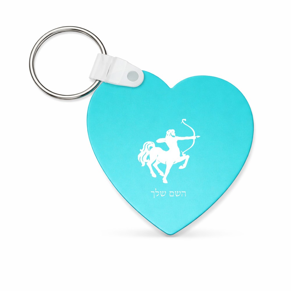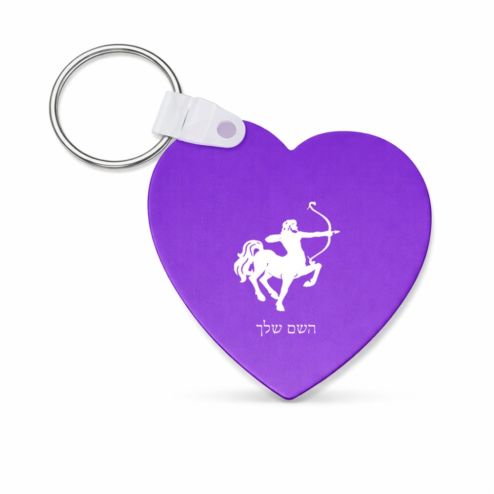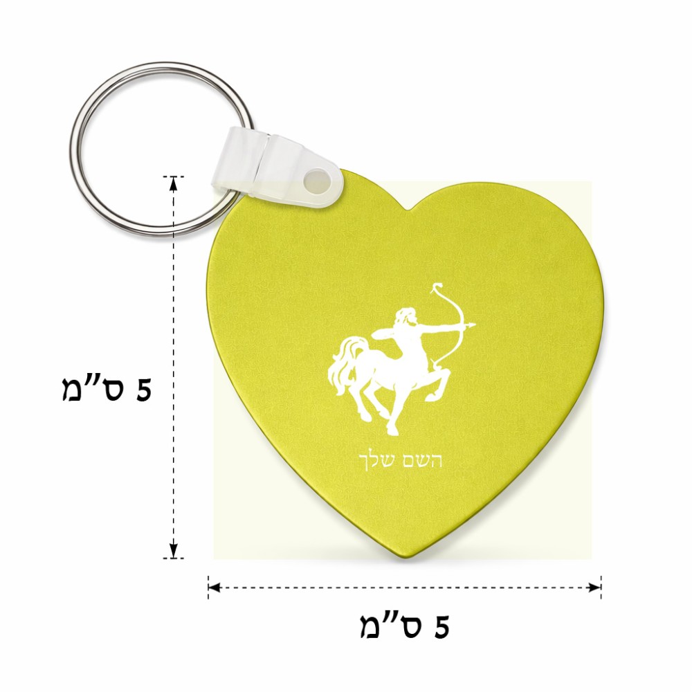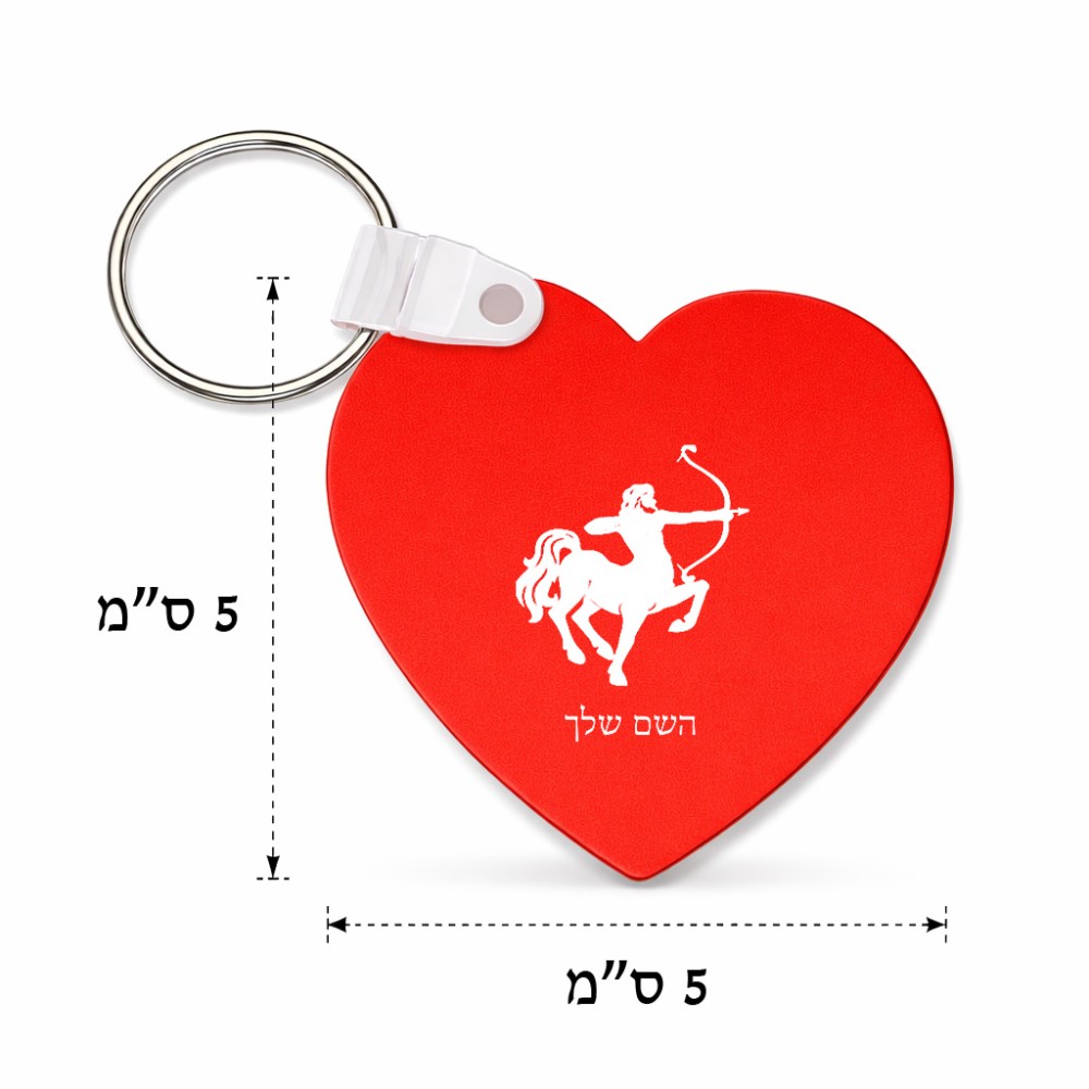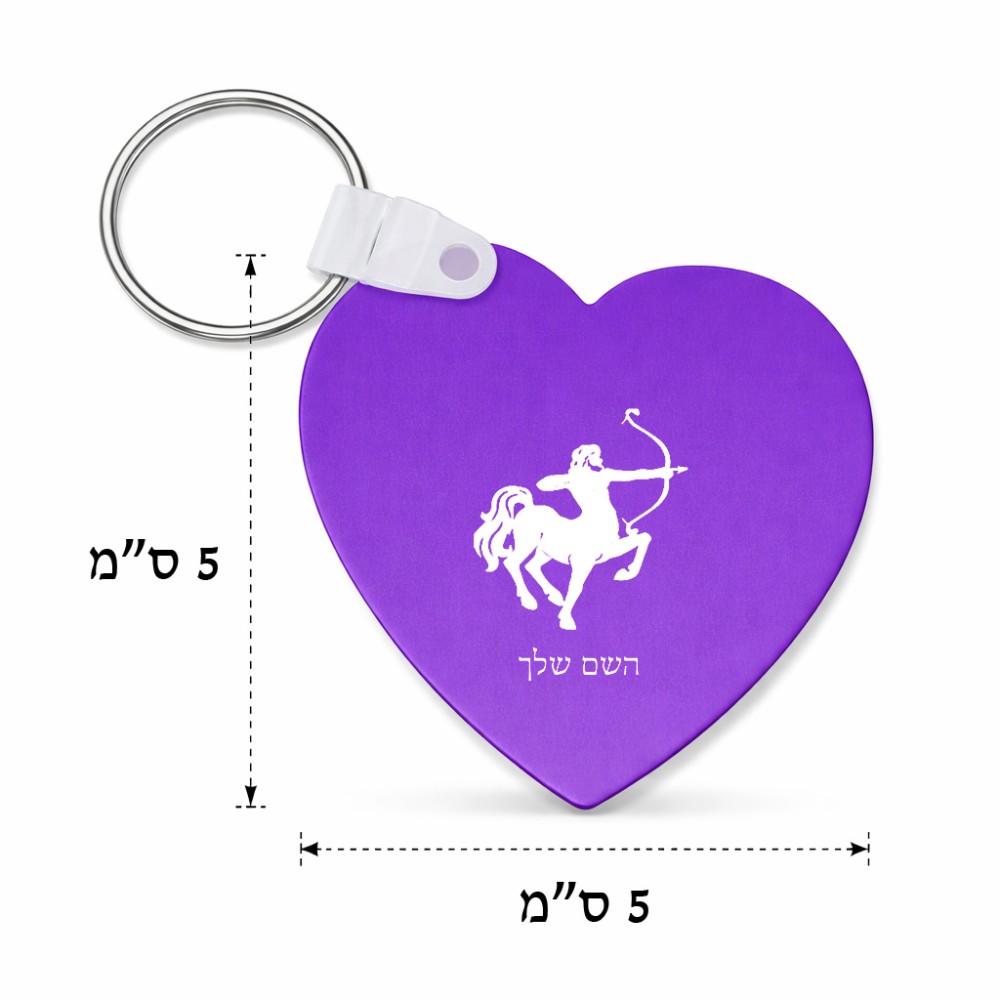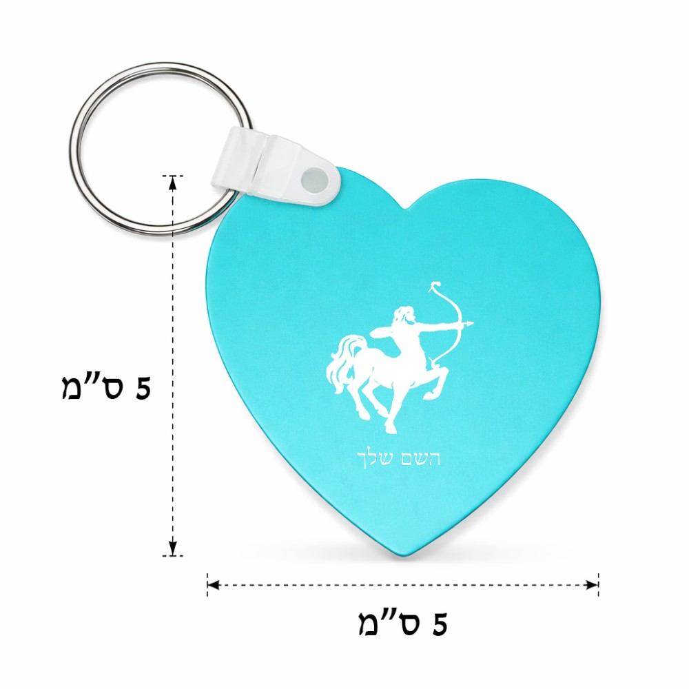 מחזיק מפתחות בצורת לב בעיצוב אישי עם השם שלך בעיצוב מזלות - קשת גודל המחזיק 5 × 5 ס"מ