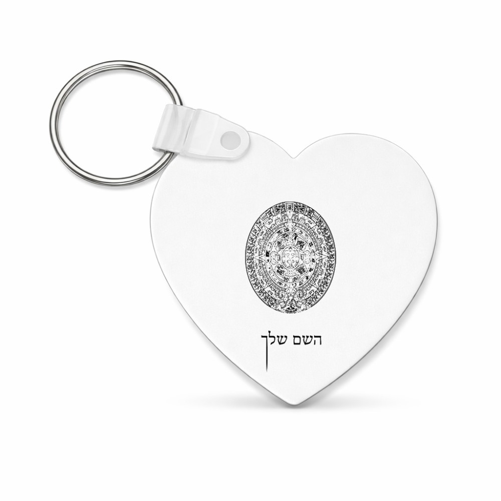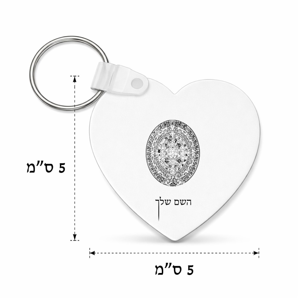 מחזיק מפתחות בצורת לב בעיצוב אישי עם השם שלך בעיצוב לוח שנה אצטקי של המאיה גודל המחזיק 5 × 5 ס"מ. את השם המבוקש ניתן לציין בהזמנה, אם לא צויין אנחנו ניצור קשר לבירור.