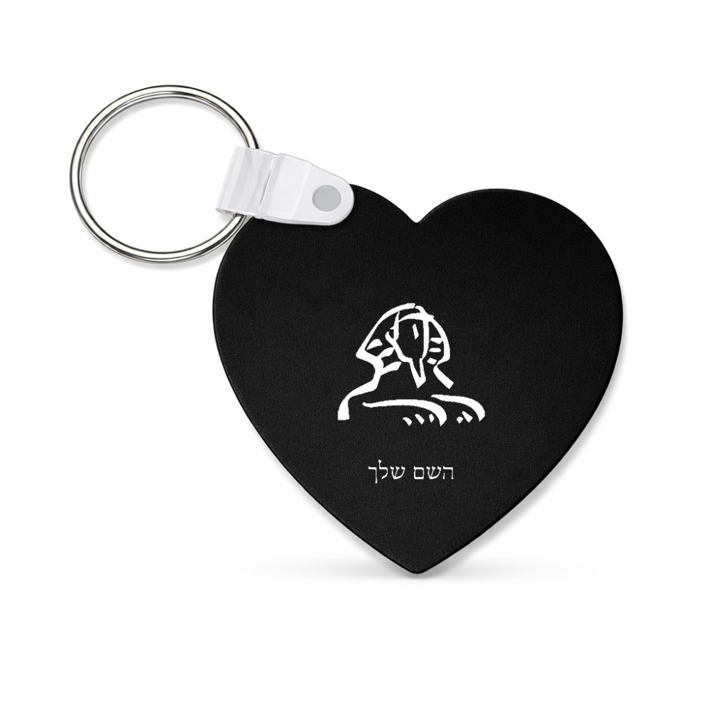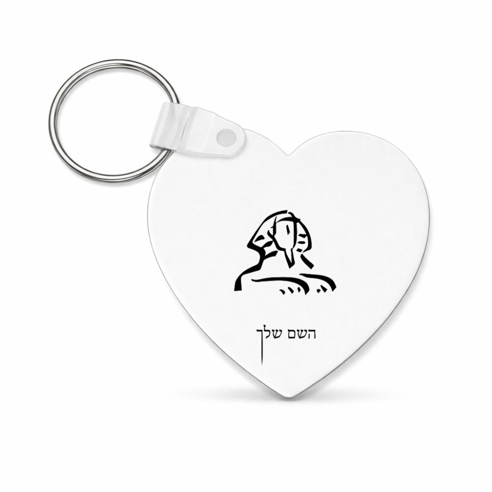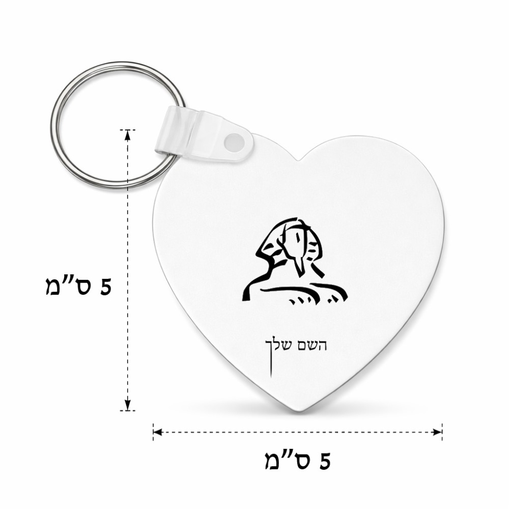 מחזיק מפתחות בצורת לב בעיצוב אישי עם השם שלך בעיצוב ספינקס מצרים גודל המחזיק 5 × 5 ס"מ. את השם המבוקש ניתן לציין בהזמנה, אם לא צויין אנחנו ניצור קשר לבירור.