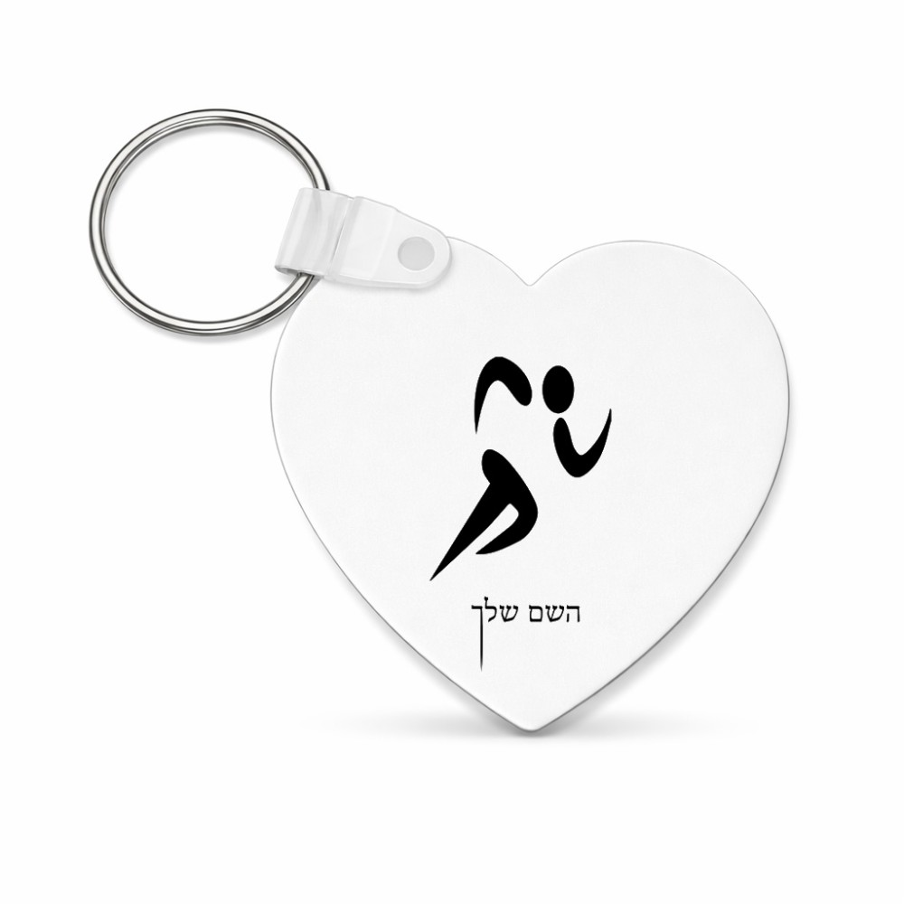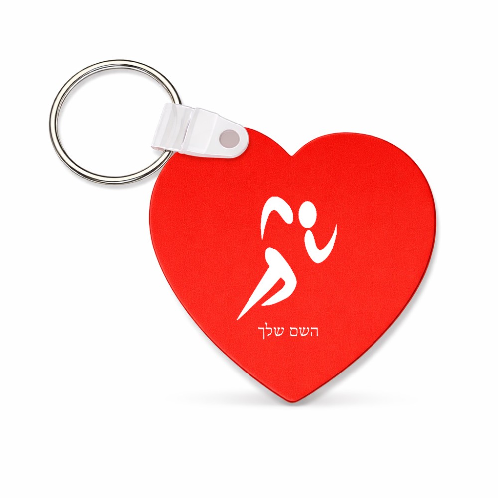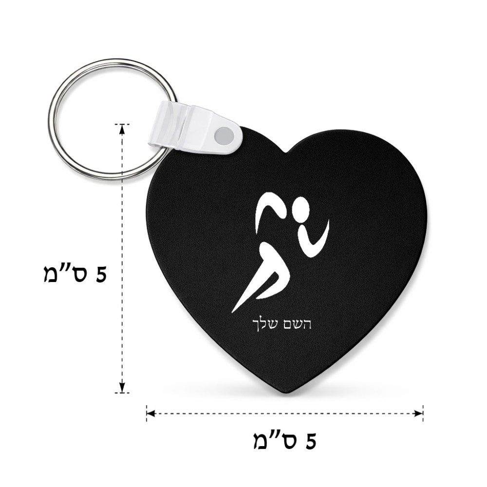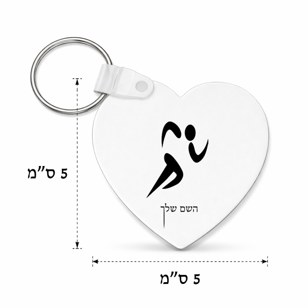 מחזיק מפתחות בצורת לב בעיצוב אישי עם השם שלך בעיצוב רצים אולימפיים גודל המחזיק 5 × 5 ס"מ. את השם המבוקש ניתן לציין בהזמנה, אם לא צויין אנחנו ניצור קשר לבירור.