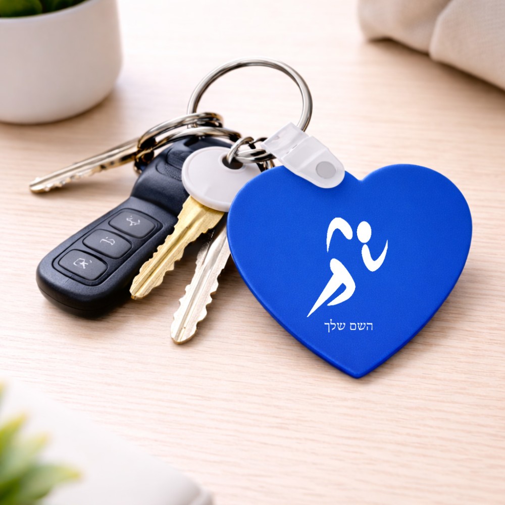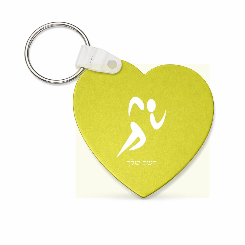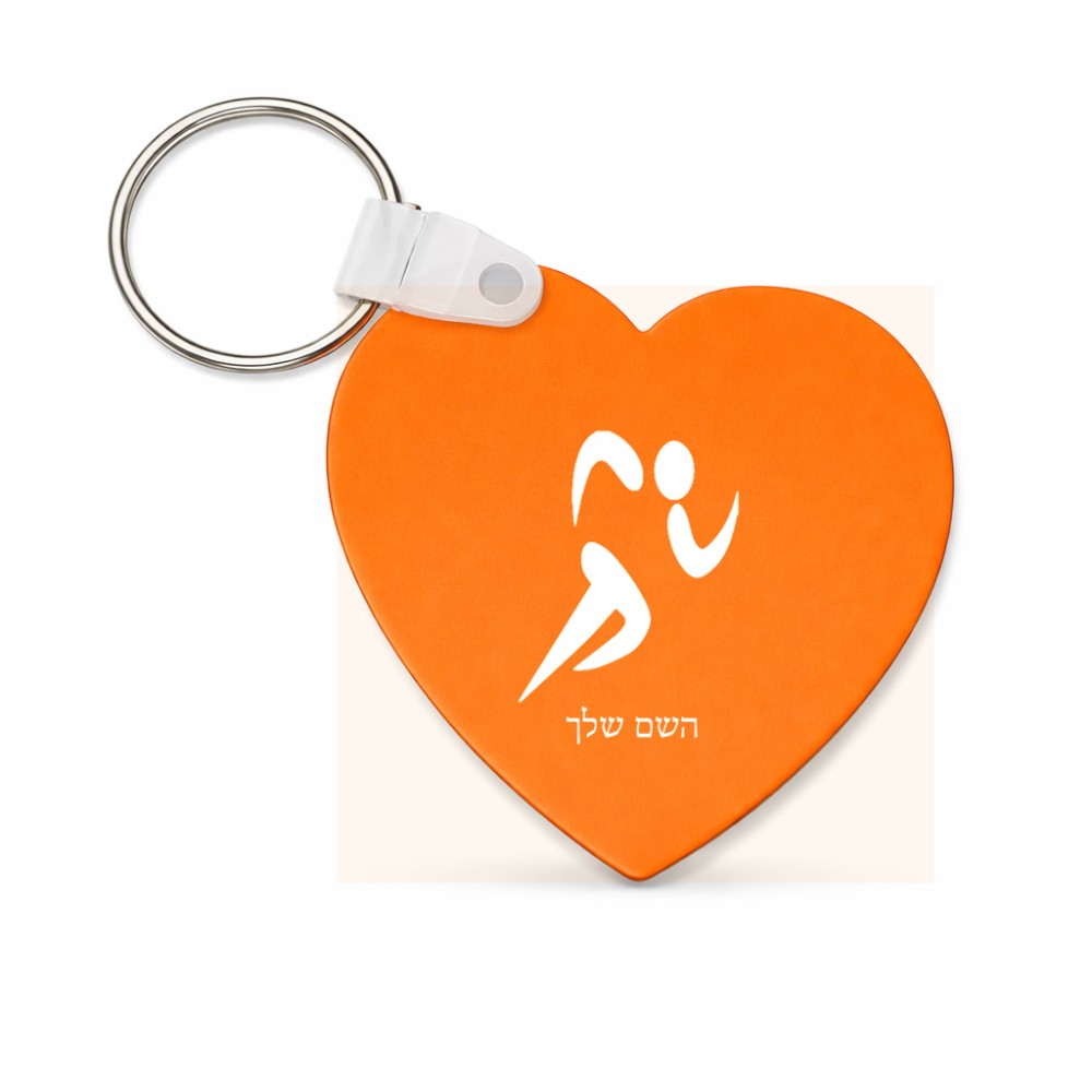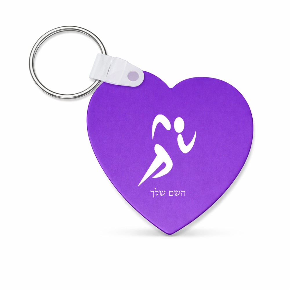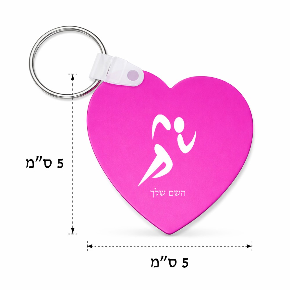 מחזיק מפתחות בצורת לב בעיצוב אישי עם השם שלך בעיצוב רצים אולימפיים גודל המחזיק 5 × 5 ס"מ. את השם המבוקש ניתן לציין בהזמנה, אם לא צויין אנחנו ניצור קשר לבירור.