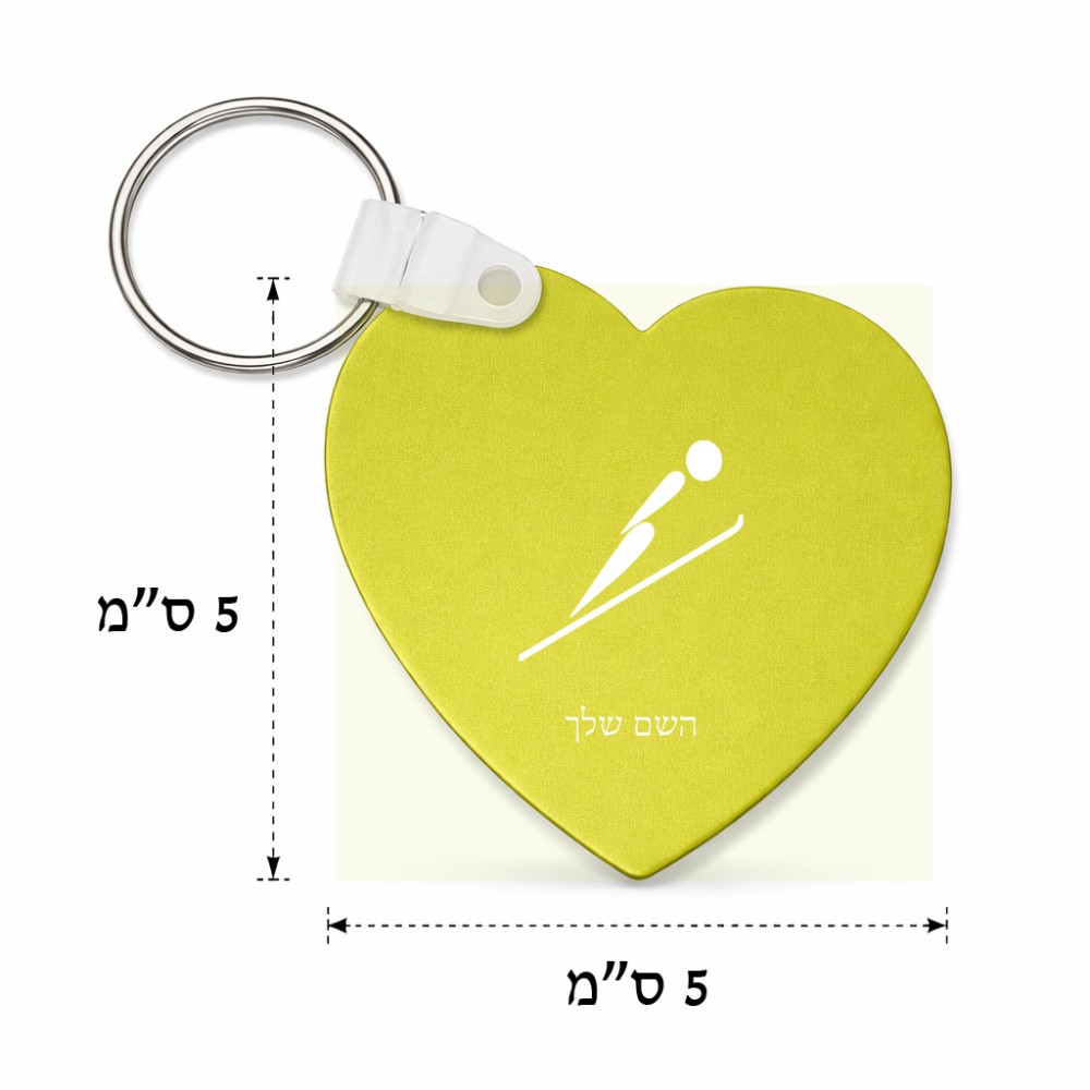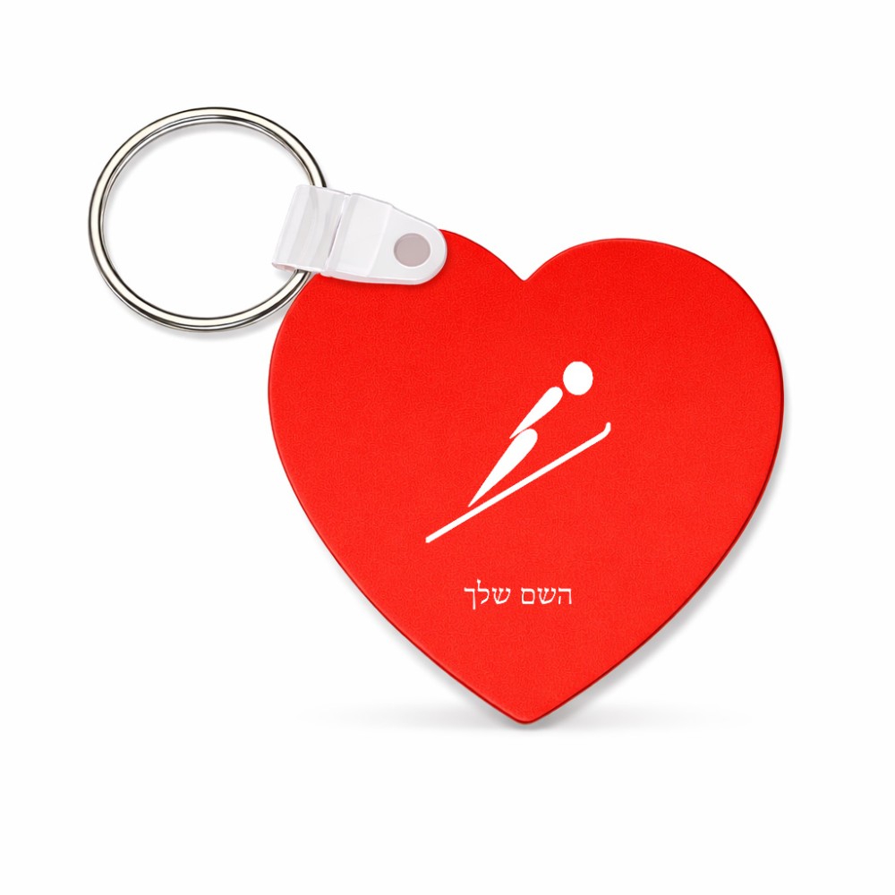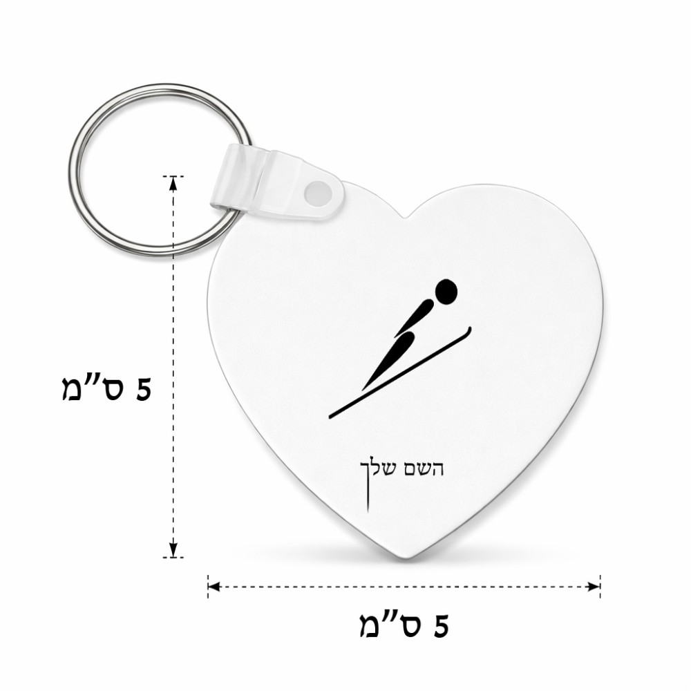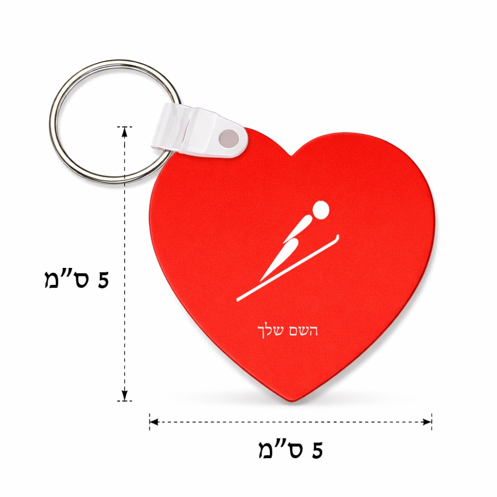 מחזיק מפתחות בצורת לב בעיצוב אישי עם השם שלך בעיצוב קפיצת סקי אולימפית גודל המחזיק 5 × 5 ס"מ. את השם המבוקש ניתן לציין בהזמנה, אם לא צויין אנחנו ניצור קשר לבירור.