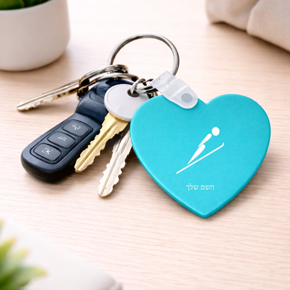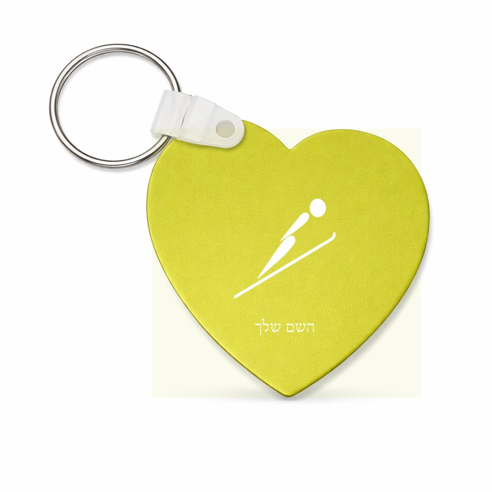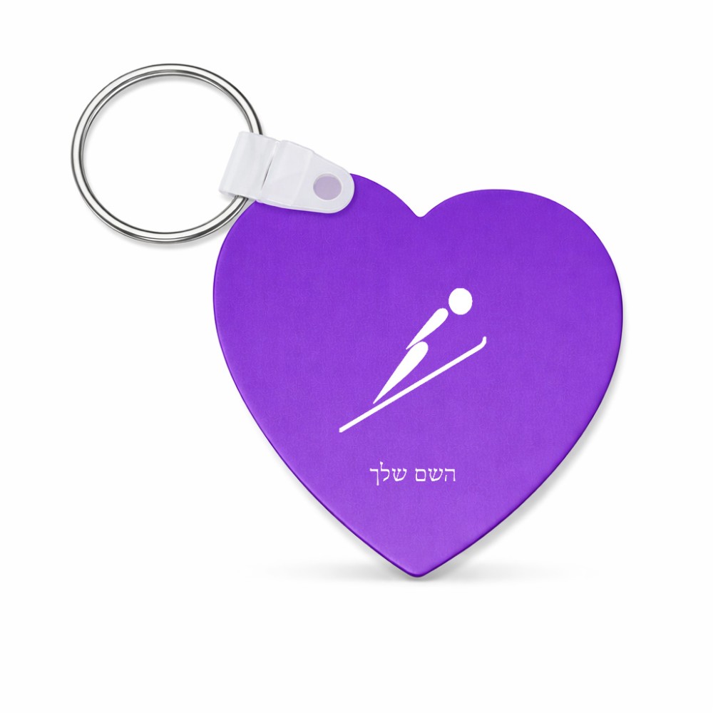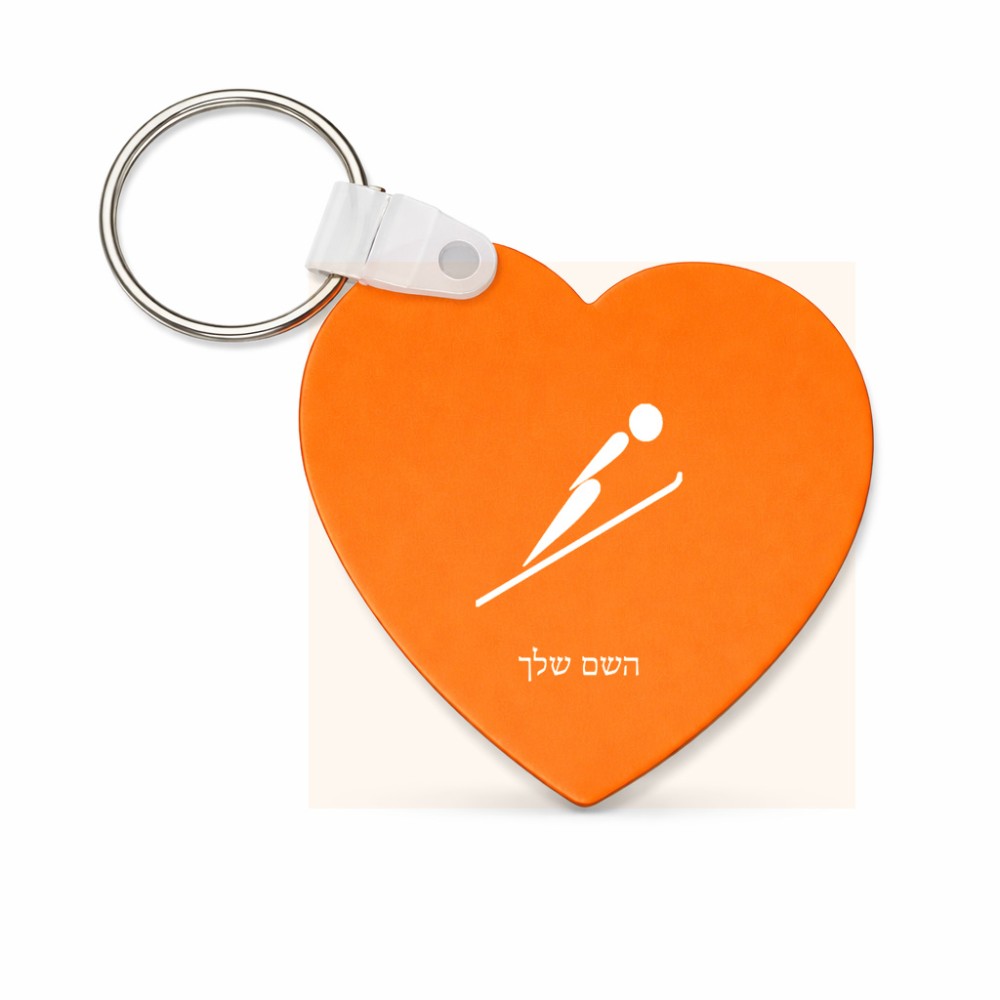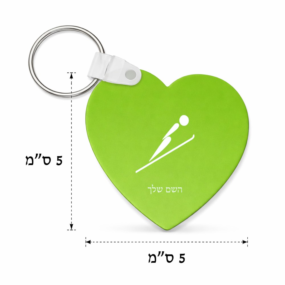 מחזיק מפתחות בצורת לב בעיצוב אישי עם השם שלך בעיצוב קפיצת סקי אולימפית גודל המחזיק 5 × 5 ס"מ. את השם המבוקש ניתן לציין בהזמנה, אם לא צויין אנחנו ניצור קשר לבירור.