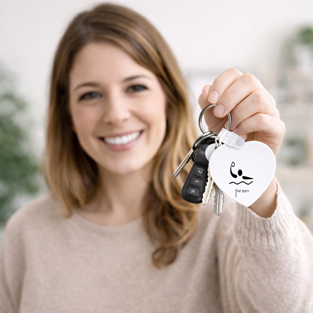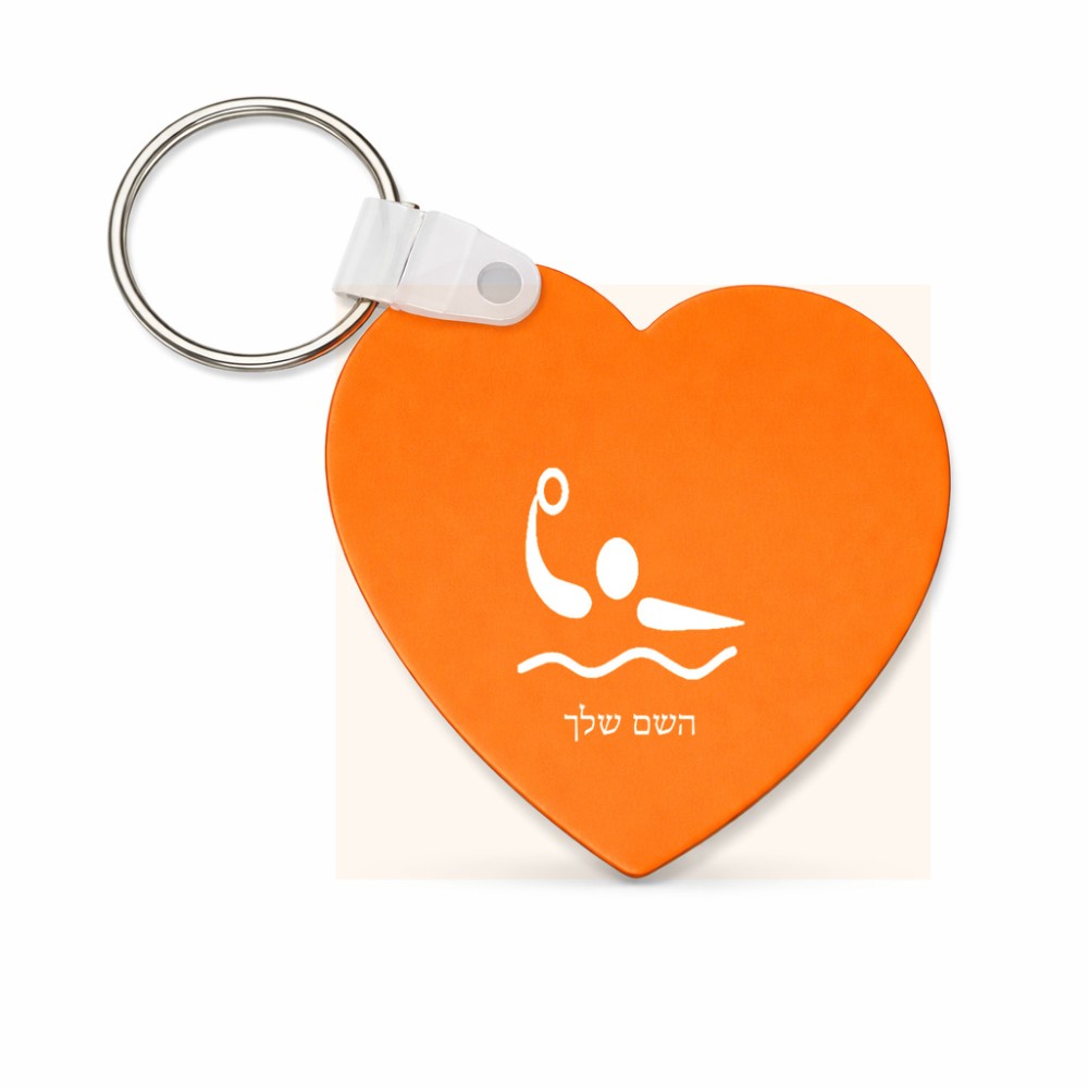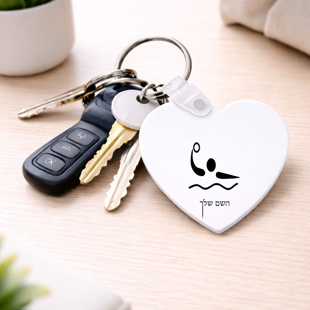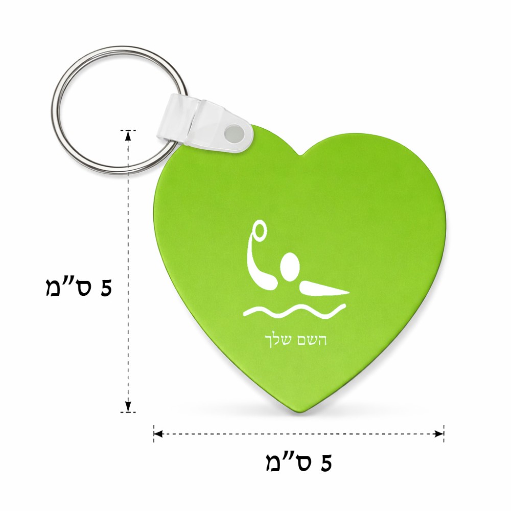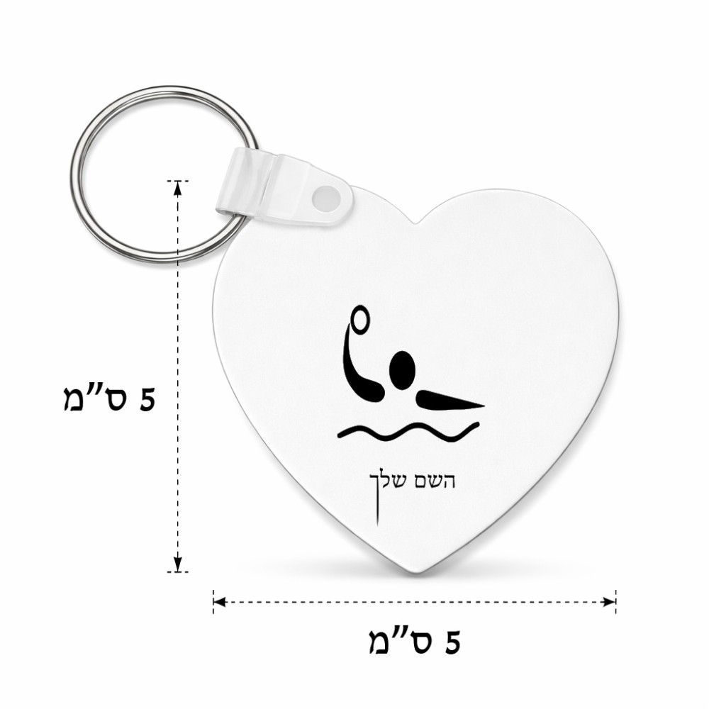מחזיק מפתחות בצורת לב בעיצוב אישי עם השם שלך בעיצוב כדור מים אולימפי גודל המחזיק 5 × 5 ס"מ. את השם המבוקש ניתן לציין בהזמנה, אם לא צויין אנחנו ניצור קשר לבירור.