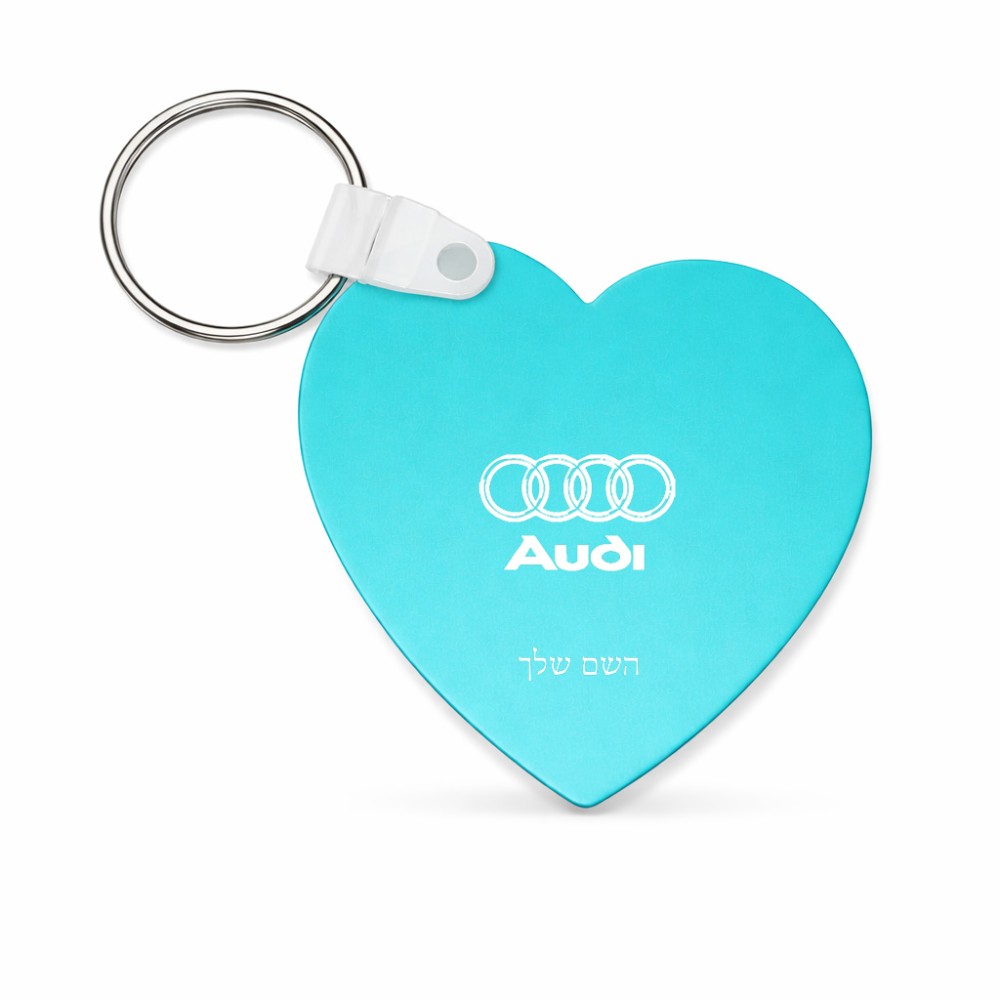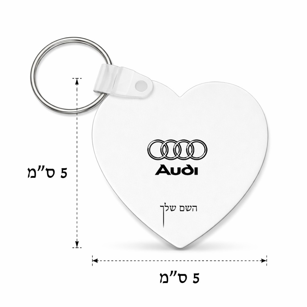 מחזיק מפתחות בצורת לב בעיצוב אישי עם השם שלך בעיצוב אאודי גודל המחזיק 5 × 5 ס"מ. את השם המבוקש ניתן לציין בהזמנה, אם לא צויין אנחנו ניצור קשר לבירור.