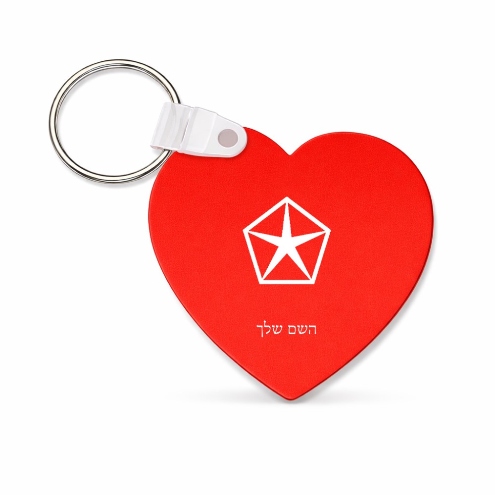 מחזיק מפתחות בצורת לב בעיצוב אישי עם השם שלך בעיצוב קרייזלר גודל המחזיק 5 × 5 ס"מ. את השם המבוקש ניתן לציין בהזמנה, אם לא צויין אנחנו ניצור קשר לבירור.