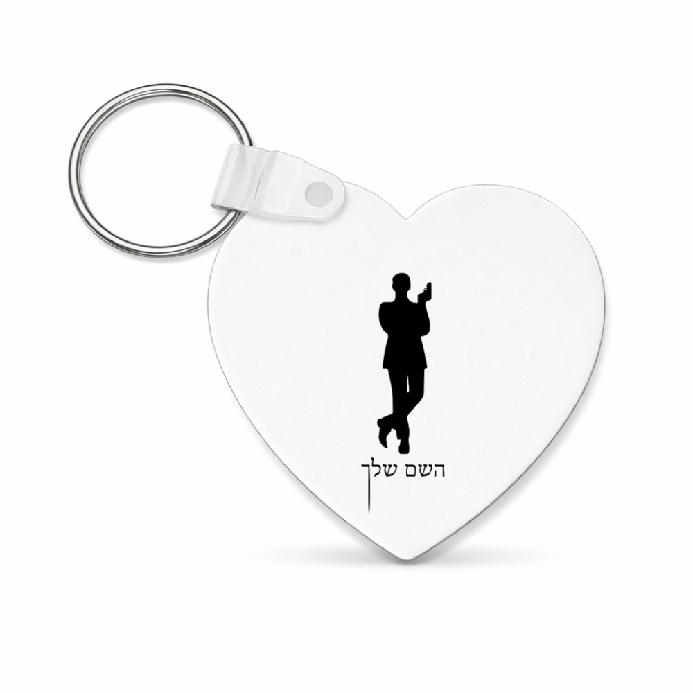 מחזיק מפתחות בצורת לב בעיצוב אישי עם השם שלך בעיצוב ג'יימס בונד גודל המחזיק 5 × 5 ס"מ. את השם המבוקש ניתן לציין בהזמנה, אם לא צויין אנחנו ניצור קשר לבירור.
