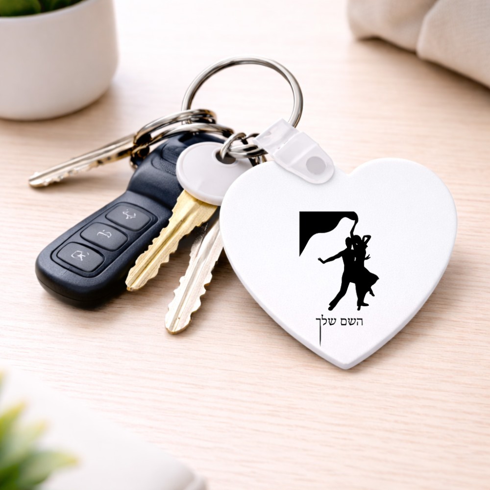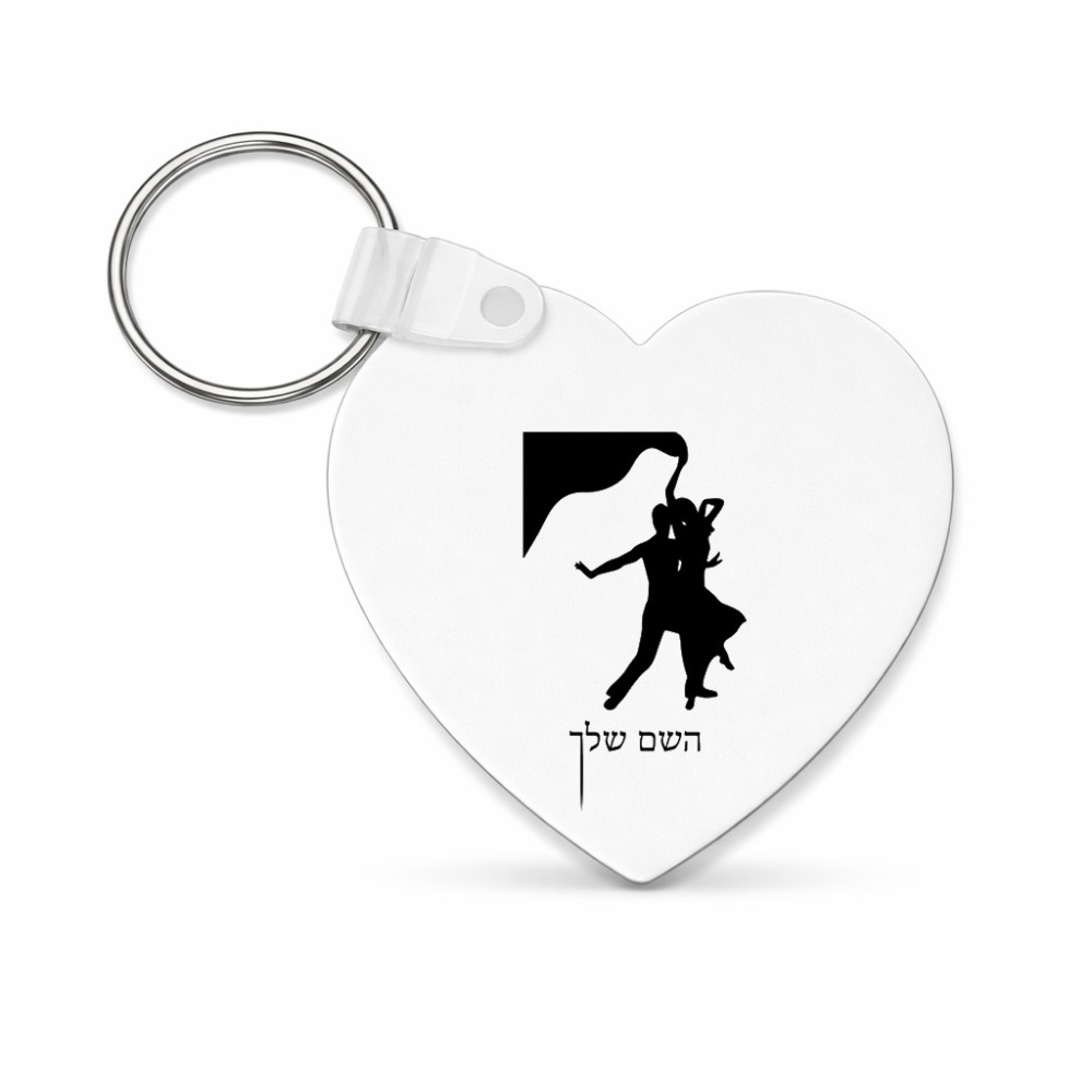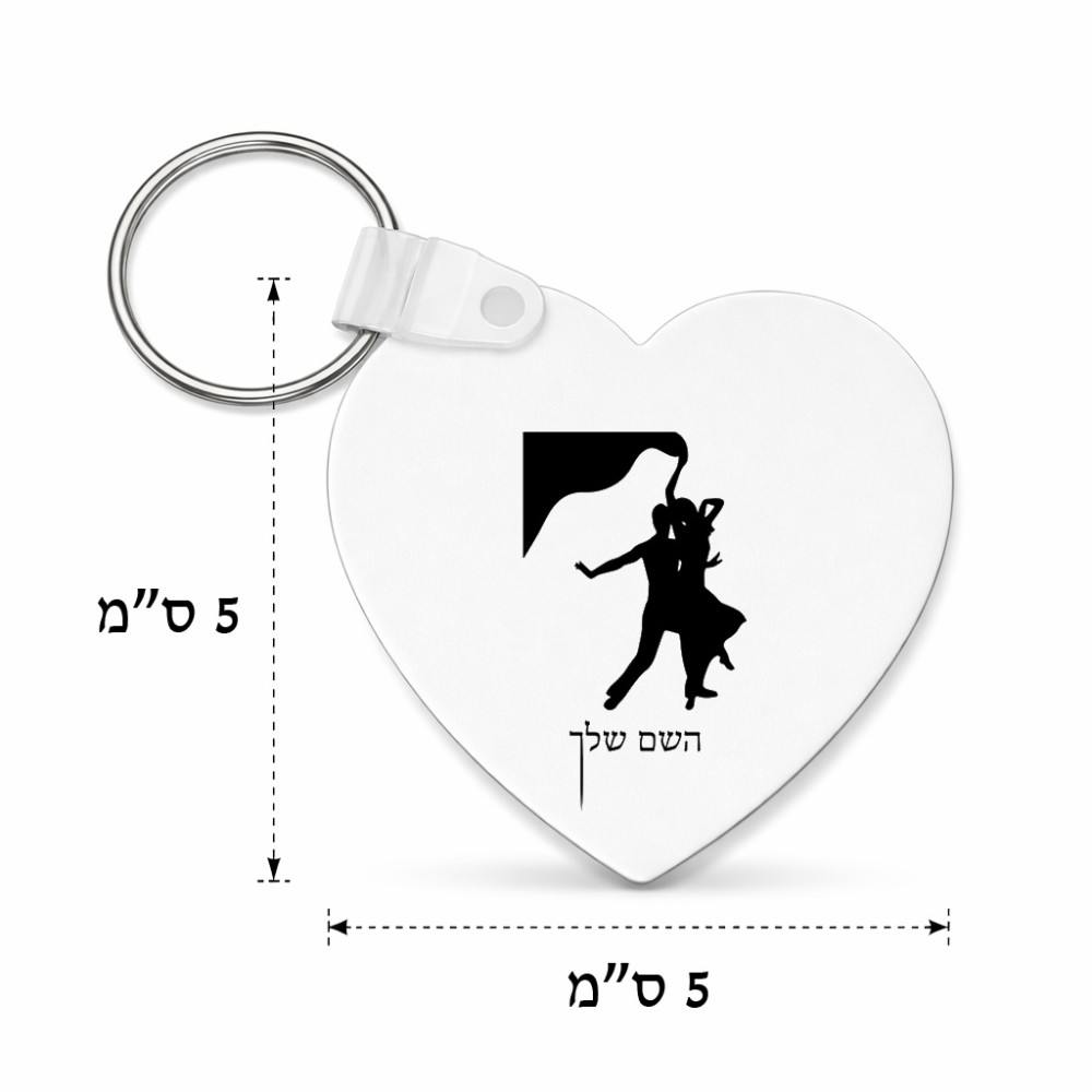 מחזיק מפתחות בצורת לב בעיצוב אישי עם השם שלך בעיצוב אישה רוקדת עם גבר גודל המחזיק 5 × 5 ס"מ. את השם המבוקש ניתן לציין בהזמנה, אם לא צויין אנחנו ניצור קשר לבירור.