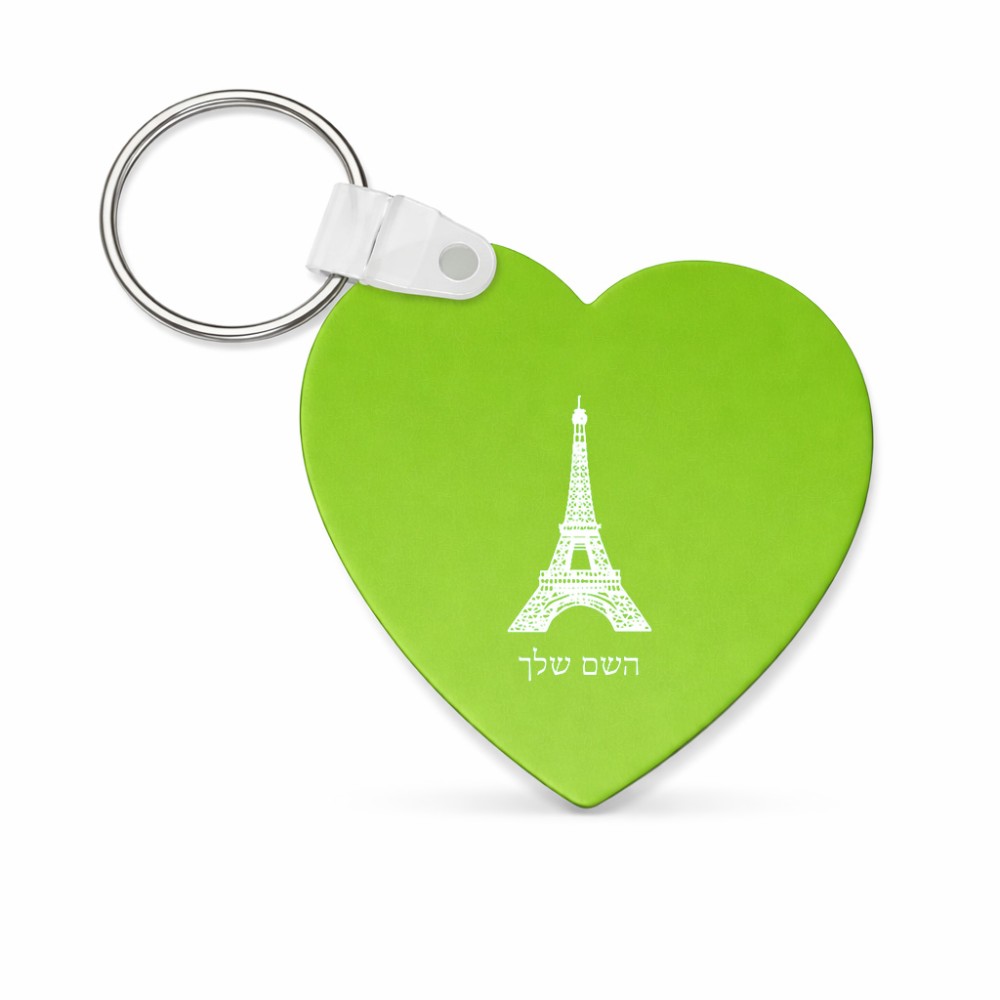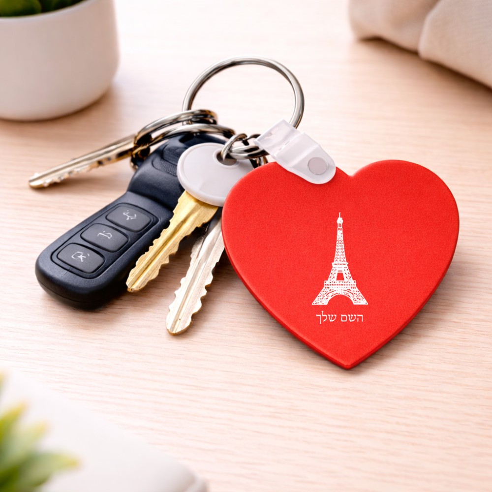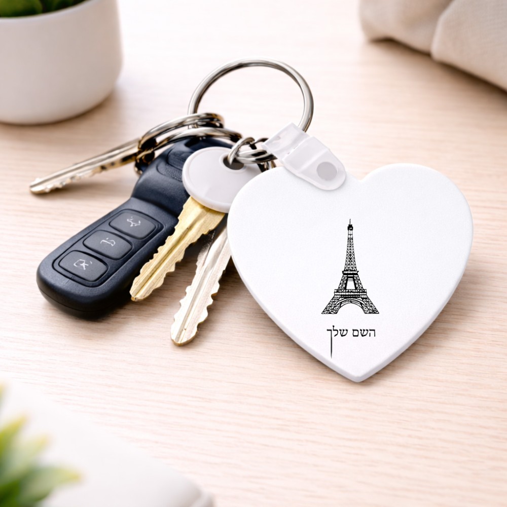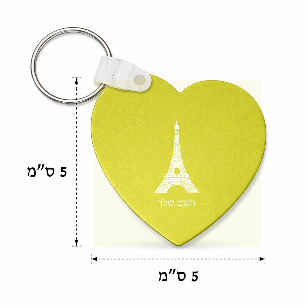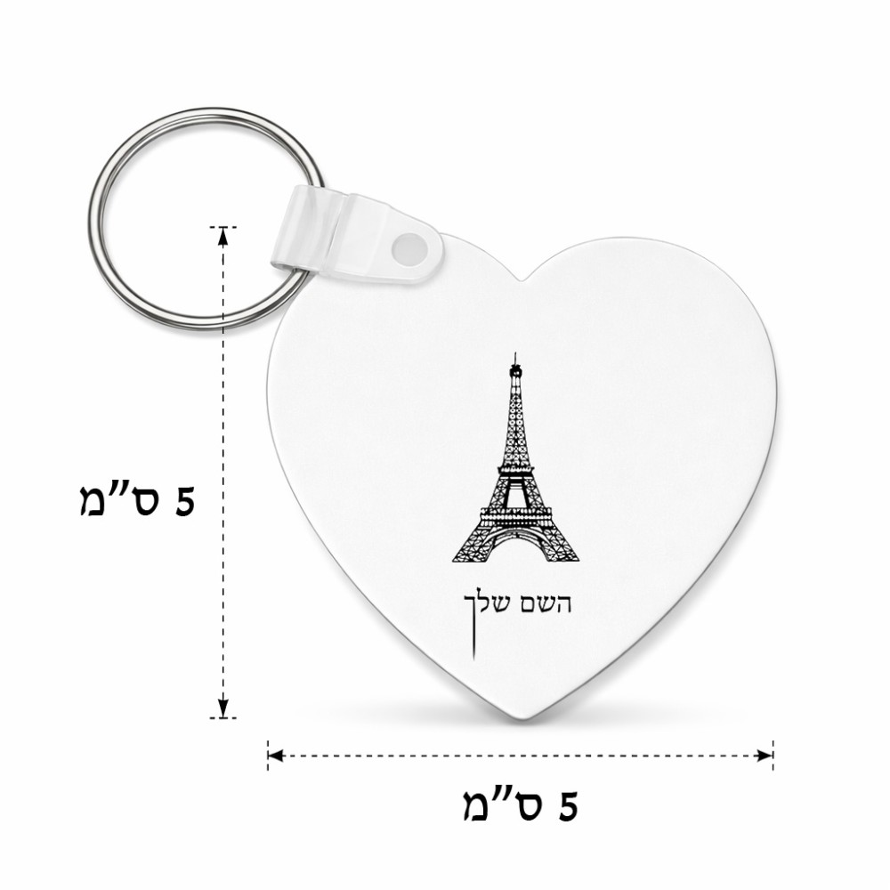 מחזיק מפתחות בצורת לב בעיצוב אישי עם השם שלך בעיצוב מגדל אייפל גודל המחזיק 5 × 5 ס"מ. את השם המבוקש ניתן לציין בהזמנה, אם לא צויין אנחנו ניצור קשר לבירור.