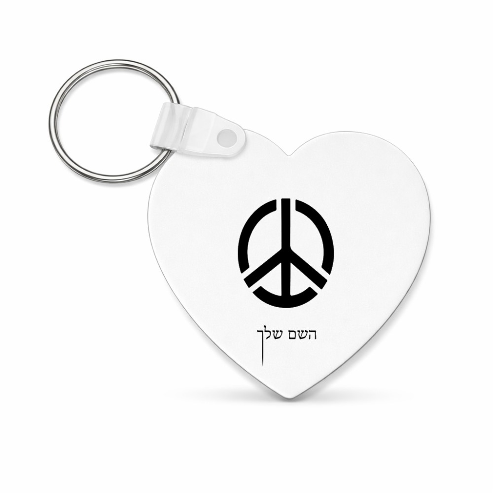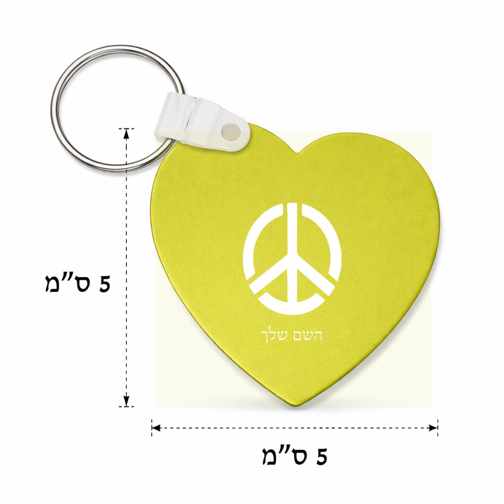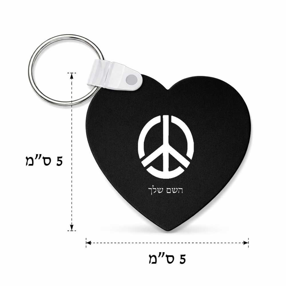 מחזיק מפתחות בצורת לב בעיצוב אישי עם השם שלך בעיצוב סמל השלום גודל המחזיק 5 × 5 ס"מ. את השם המבוקש ניתן לציין בהזמנה, אם לא צויין אנחנו ניצור קשר לבירור.