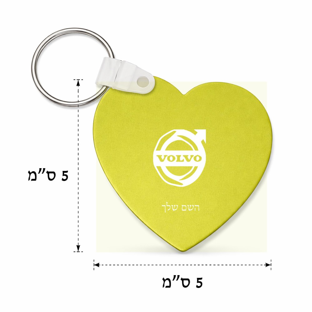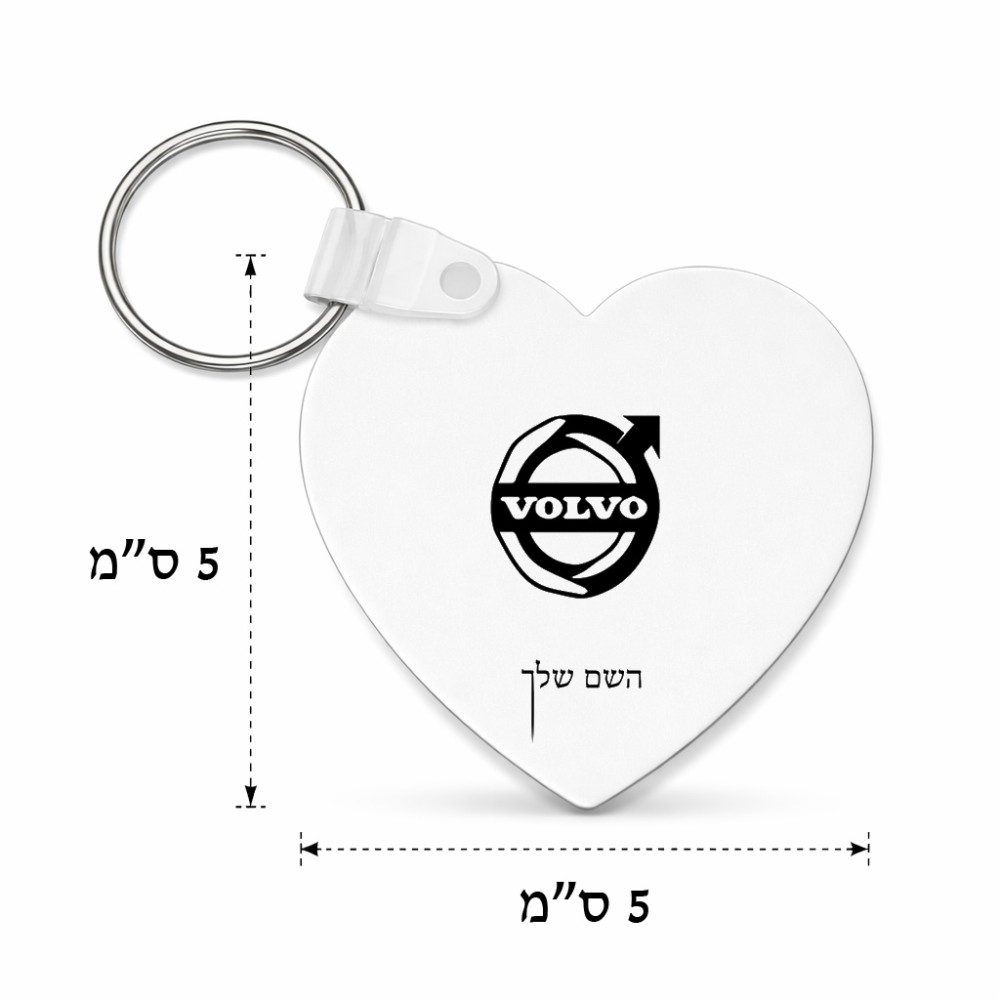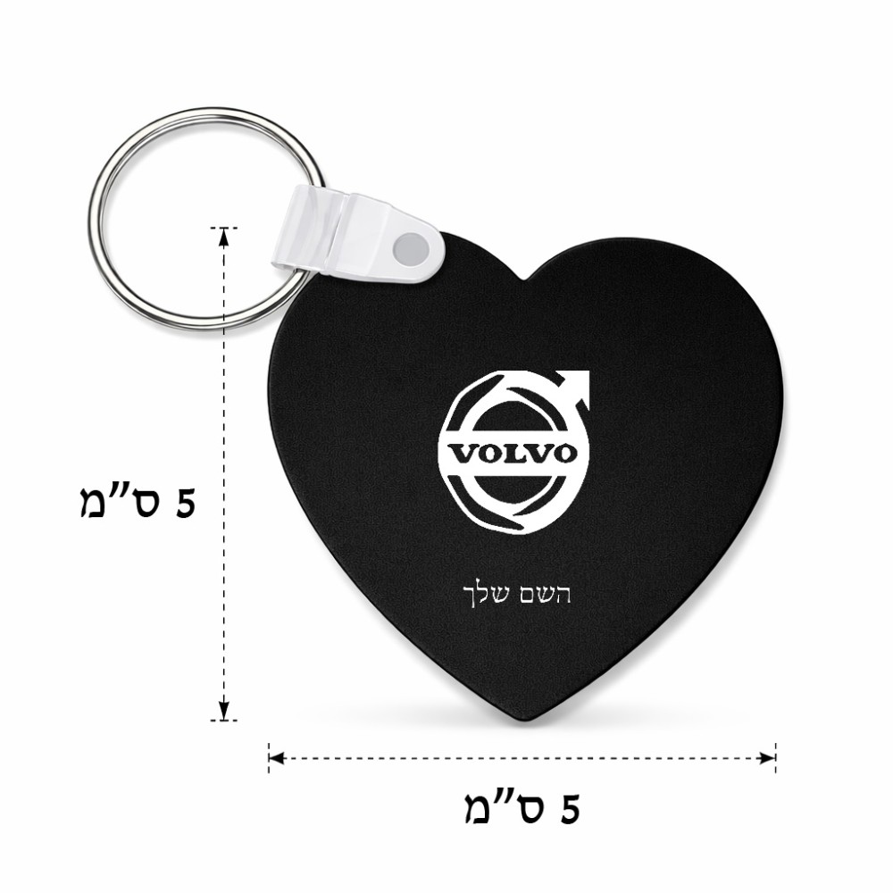 מחזיק מפתחות בצורת לב בעיצוב אישי עם השם שלך בעיצוב וולוו גודל המחזיק 5 × 5 ס"מ