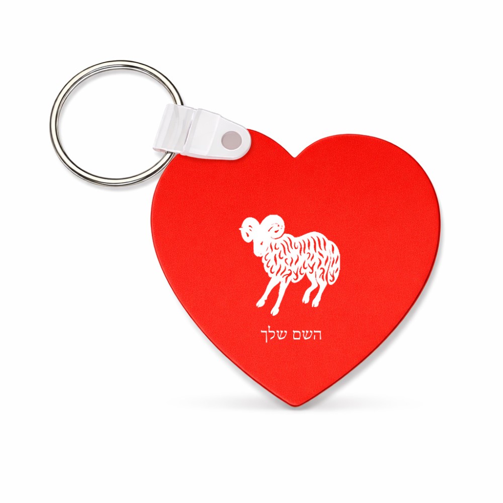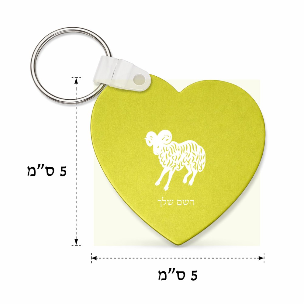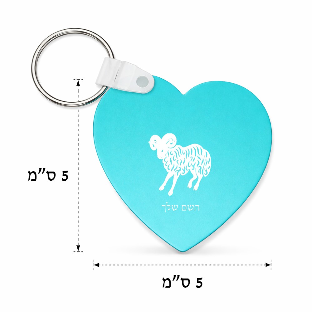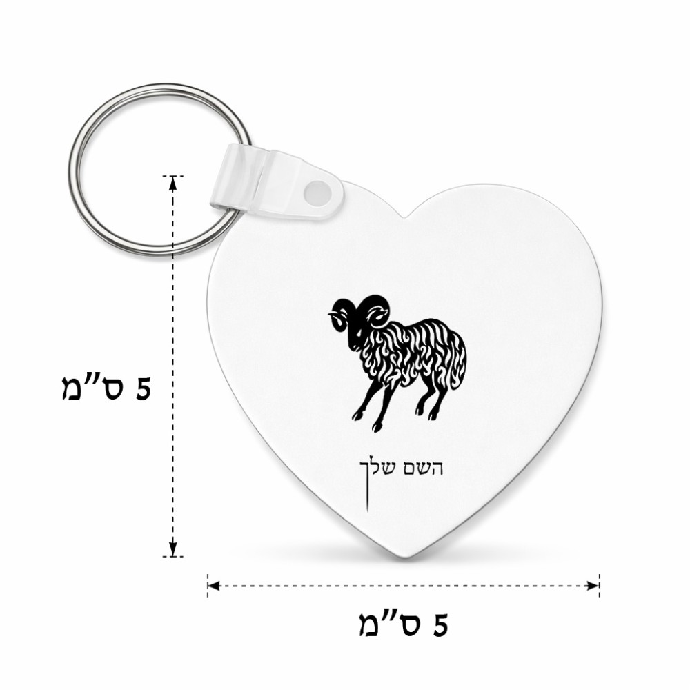 מחזיק מפתחות בצורת לב בעיצוב אישי עם השם שלך בעיצוב מזלות - טלה גודל המחזיק 5 × 5 ס"מ