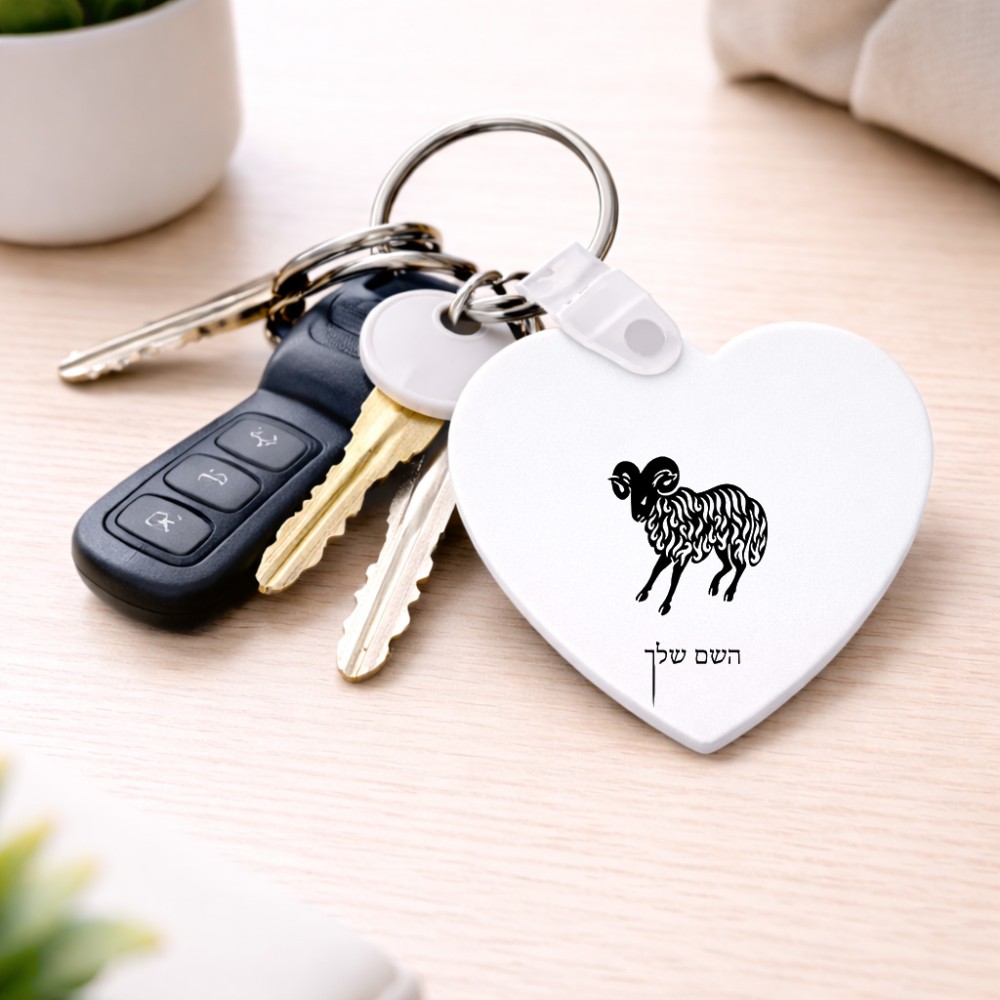 מחזיק מפתחות בצורת לב בעיצוב אישי עם השם שלך בעיצוב מזלות - טלה גודל המחזיק 5 × 5 ס"מ. את השם המבוקש ניתן לציין בהזמנה, אם לא צויין אנחנו ניצור קשר לבירור.