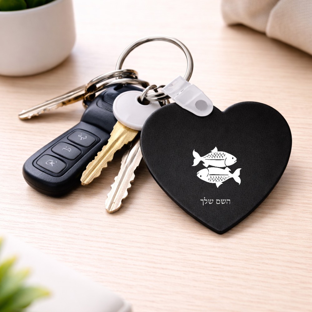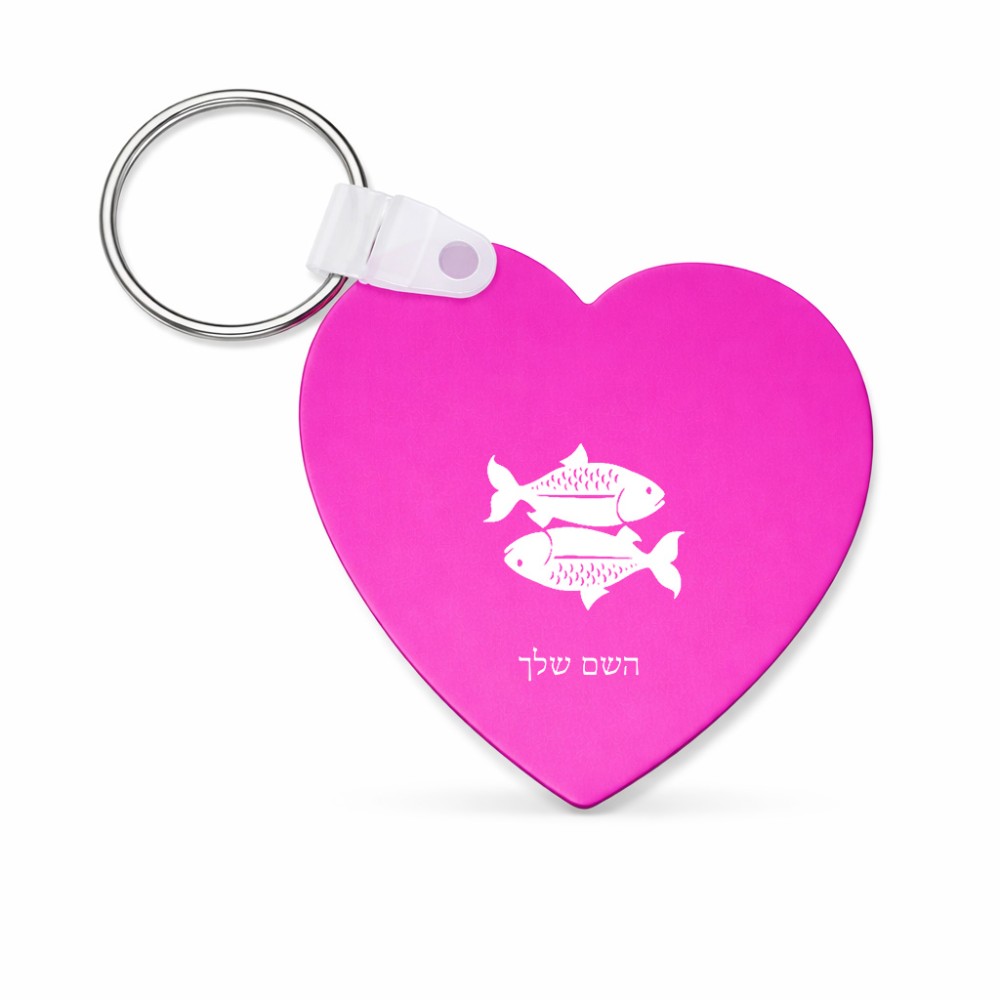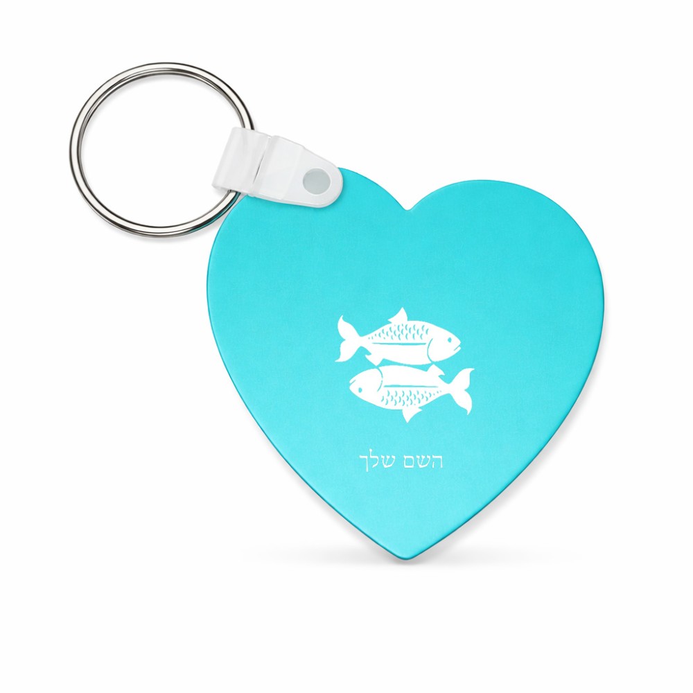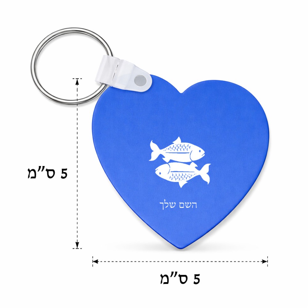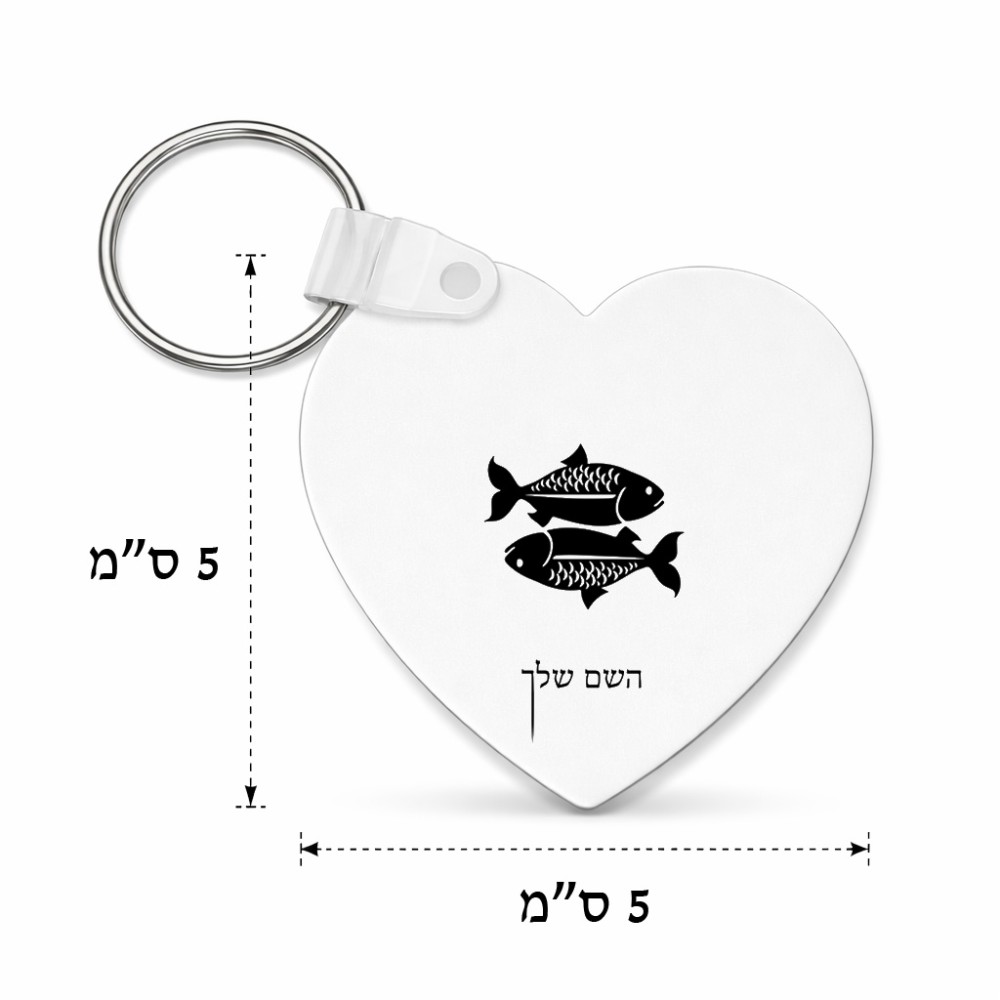 מחזיק מפתחות בצורת לב בעיצוב אישי עם השם שלך בעיצוב מזלות - דגים גודל המחזיק 5 × 5 ס"מ