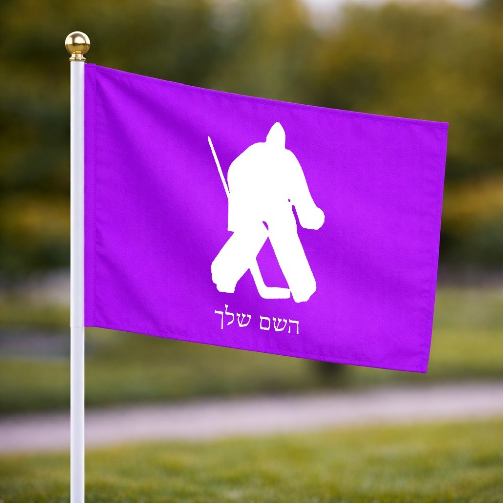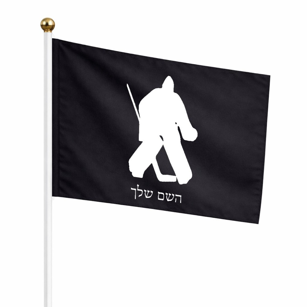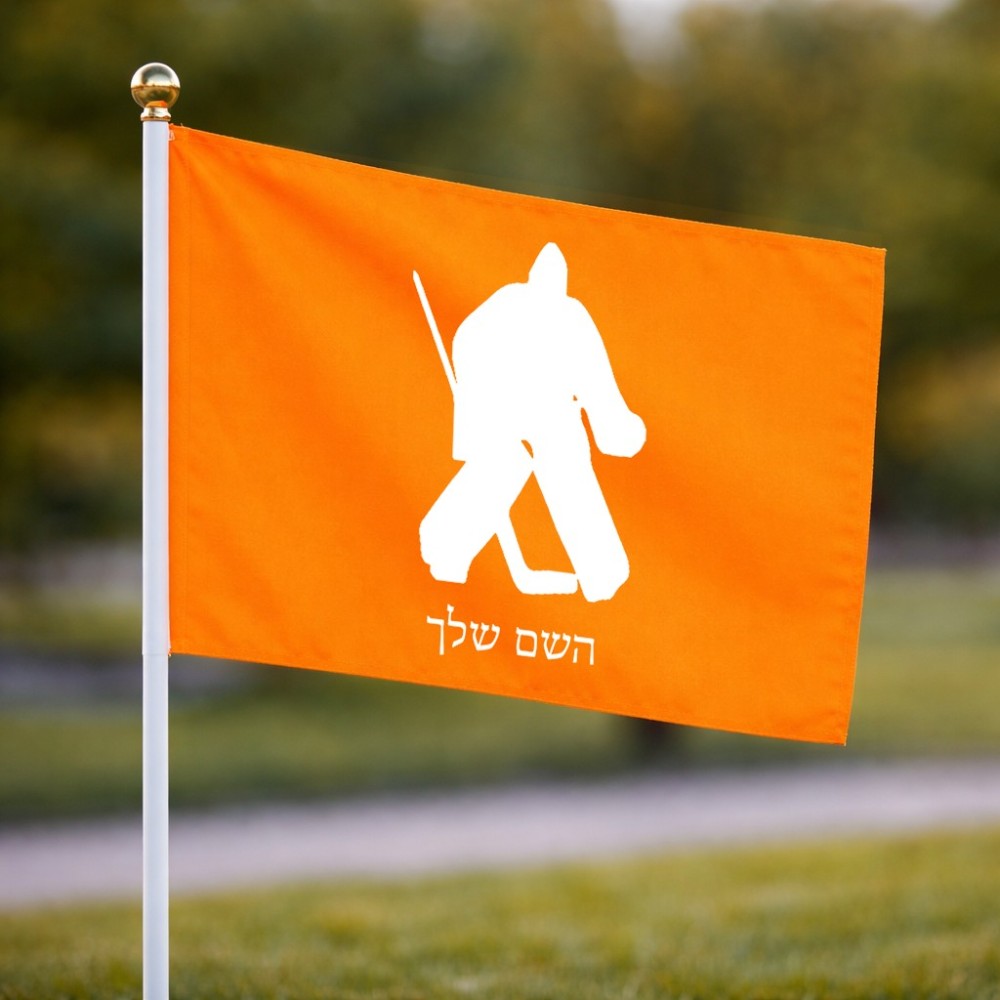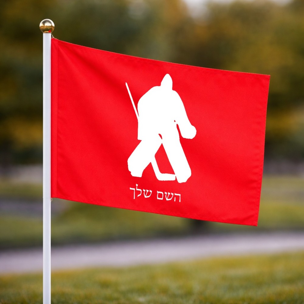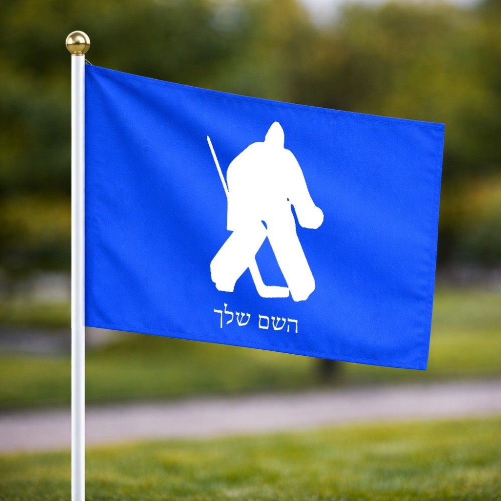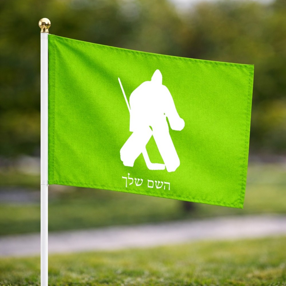 דיגלון בעיצוב אישי עם השם שלך בעיצוב הוקי שוערים גודל הדיגלון 20.5 × 14 ס"מ, ההדפסה מתבצעת בשני צידי הדגל, את השם המבוקש ניתן לציין בהזמנה, אם לא צויין אנחנו ניצור קשר לבירור.