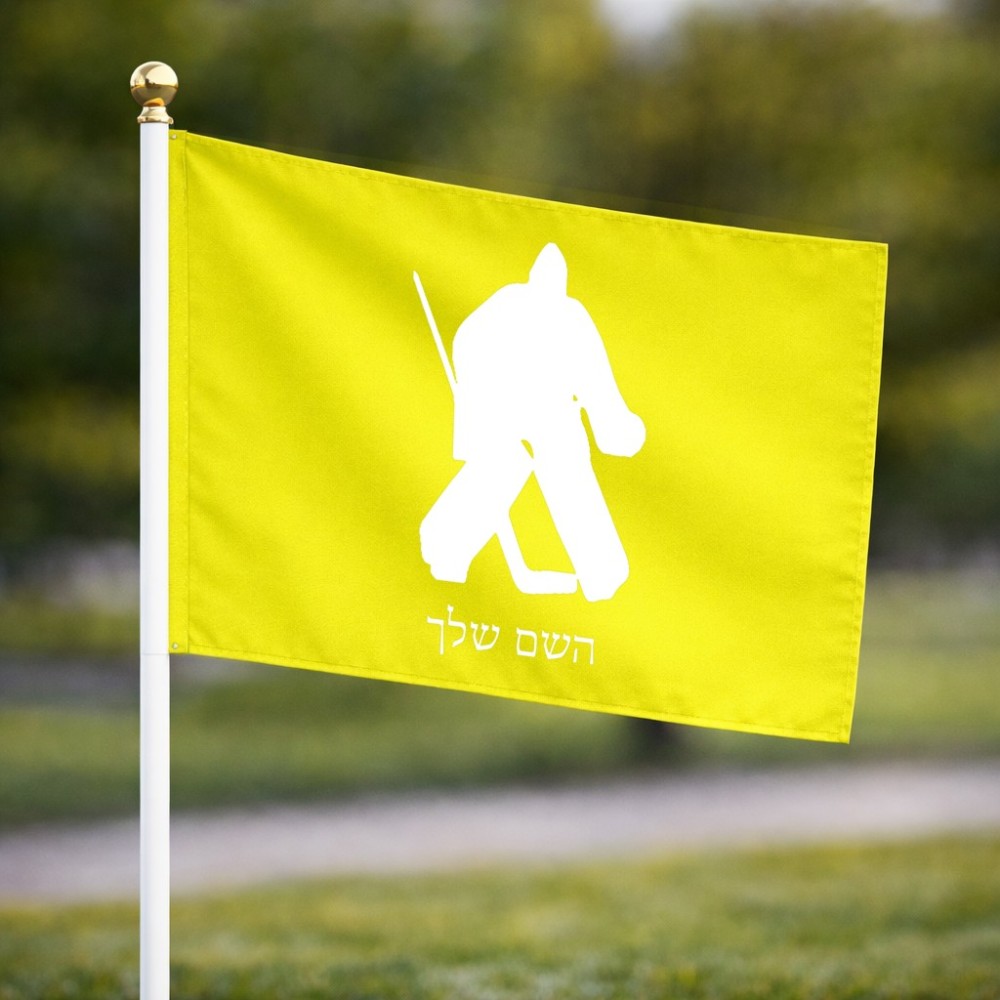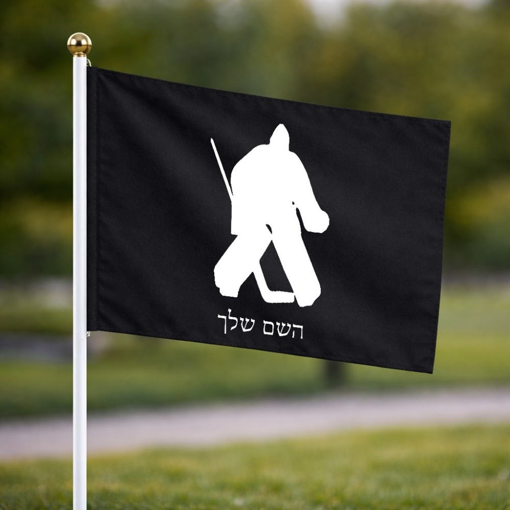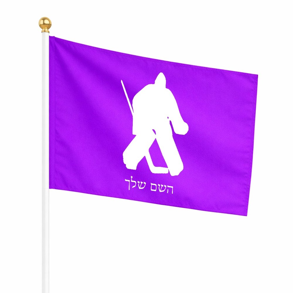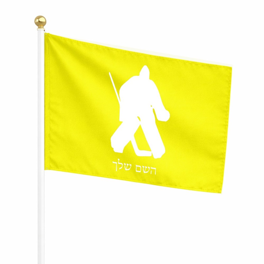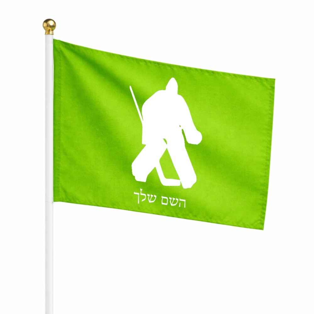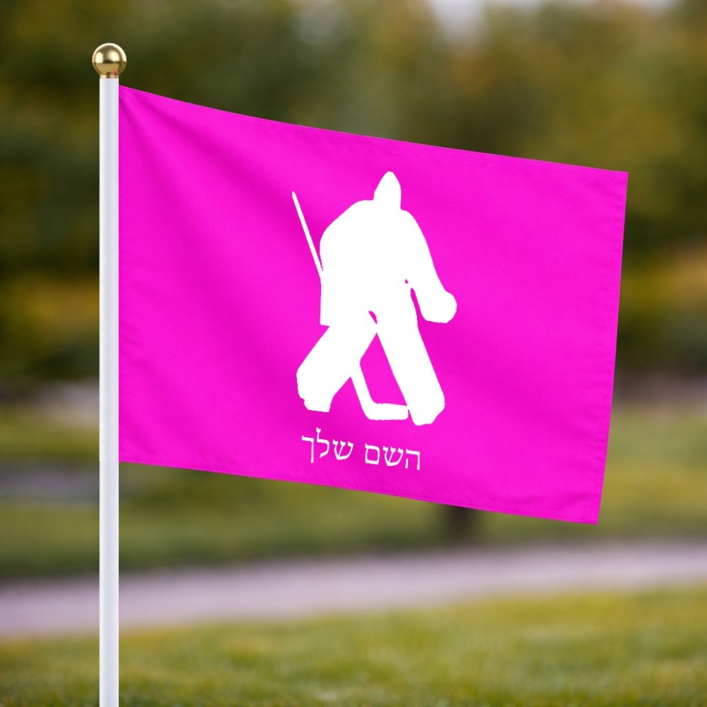 דיגלון בעיצוב אישי עם השם שלך בעיצוב הוקי שוערים גודל הדיגלון 20.5 × 14 ס"מ, ההדפסה מתבצעת בשני צידי הדגל, את השם המבוקש ניתן לציין בהזמנה, אם לא צויין אנחנו ניצור קשר לבירור.
