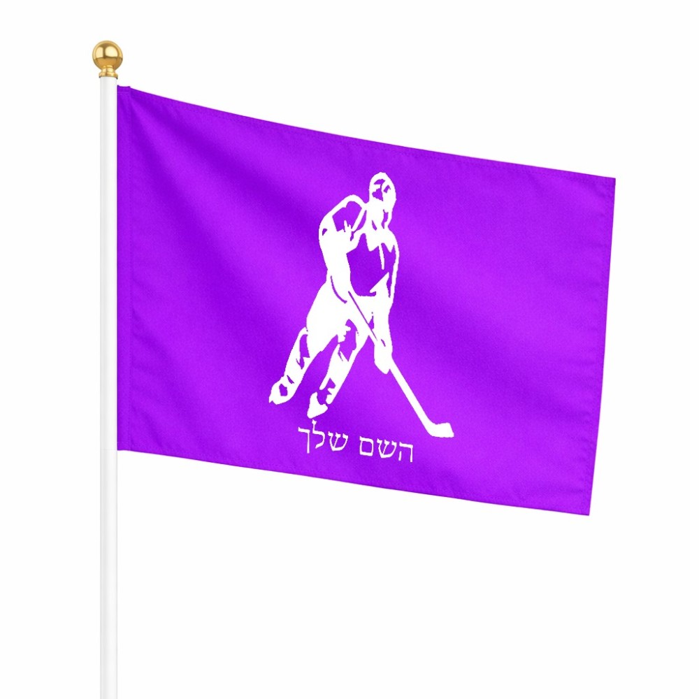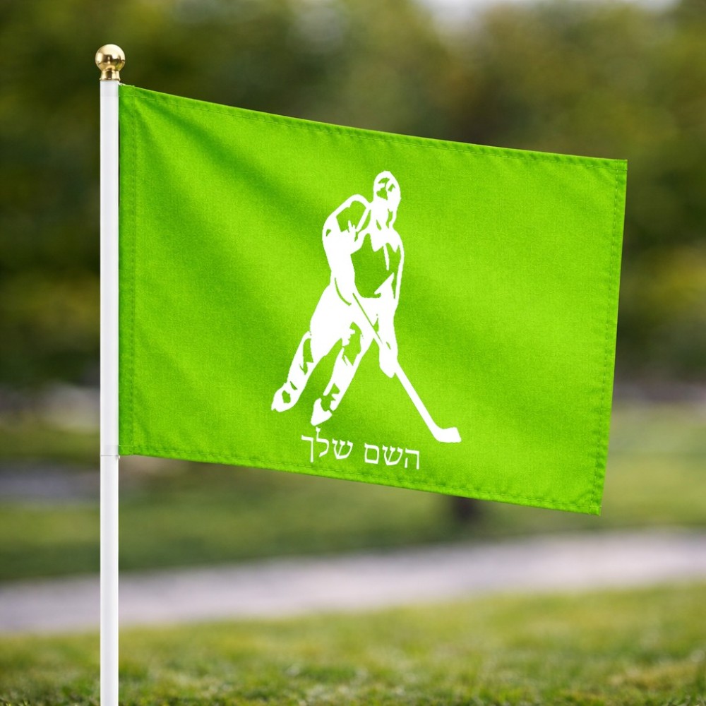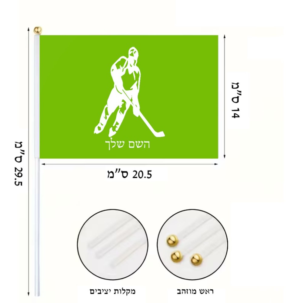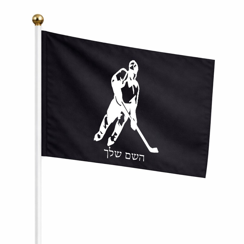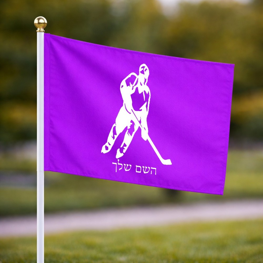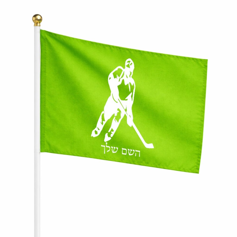 דיגלון בעיצוב אישי עם השם שלך בעיצוב שחקן הוקי גודל הדיגלון 20.5 × 14 ס"מ, ההדפסה מתבצעת בשני צידי הדגל, את השם המבוקש ניתן לציין בהזמנה, אם לא צויין אנחנו ניצור קשר לבירור.