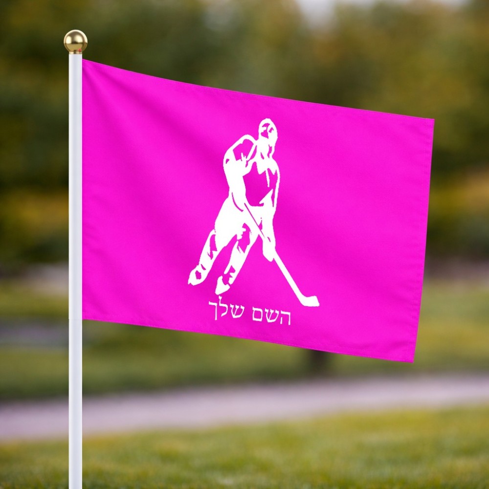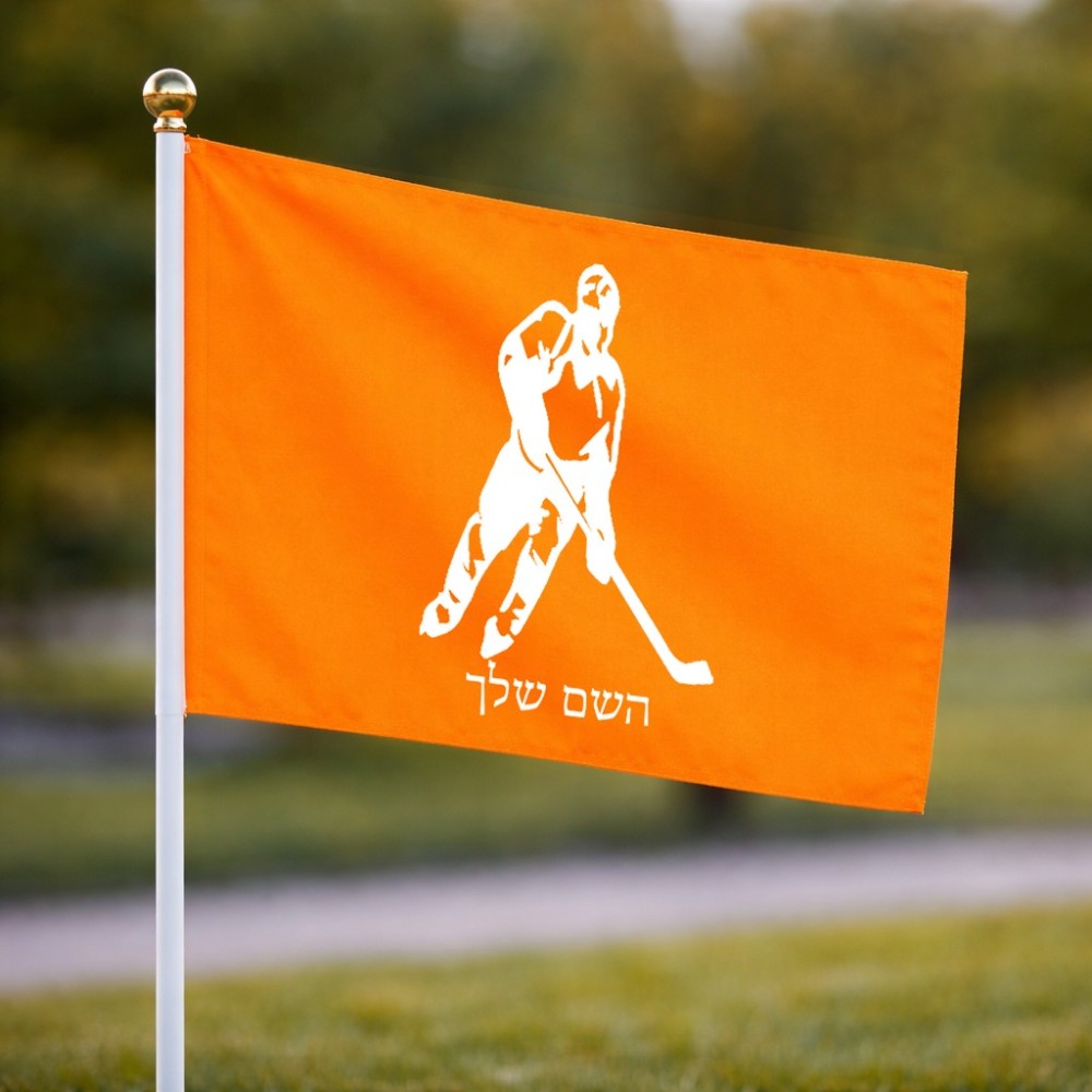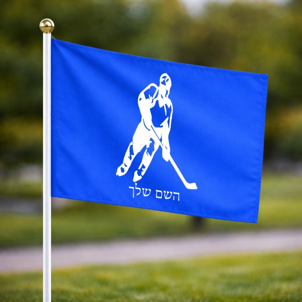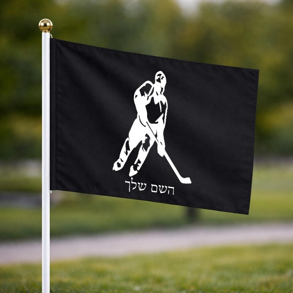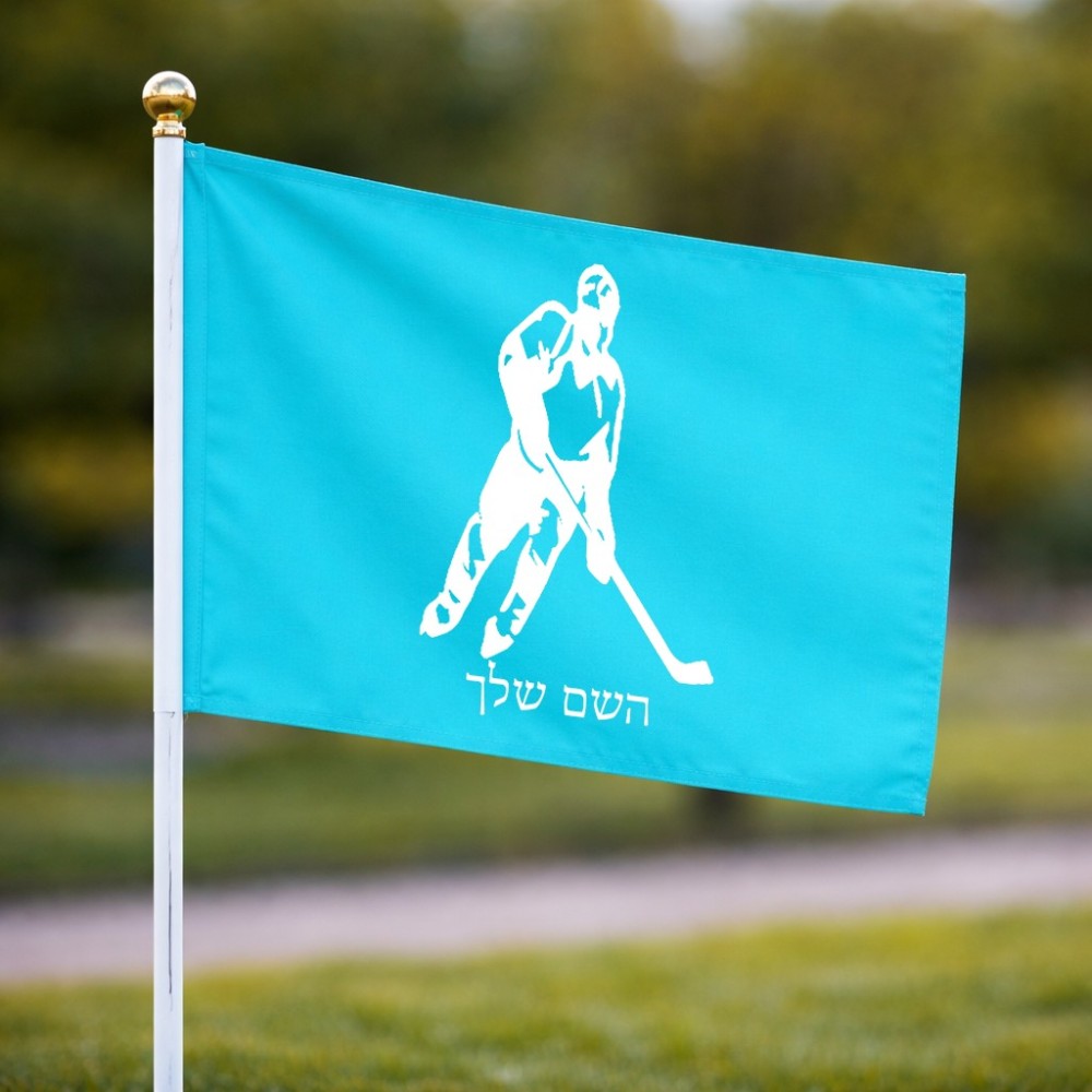 דיגלון בעיצוב אישי עם השם שלך בעיצוב שחקן הוקי גודל הדיגלון 20.5 × 14 ס"מ, ההדפסה מתבצעת בשני צידי הדגל, את השם המבוקש ניתן לציין בהזמנה, אם לא צויין אנחנו ניצור קשר לבירור.