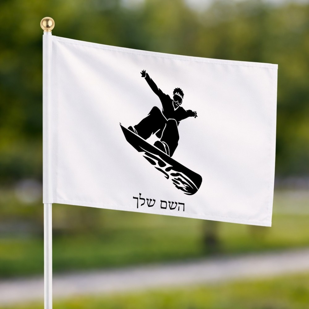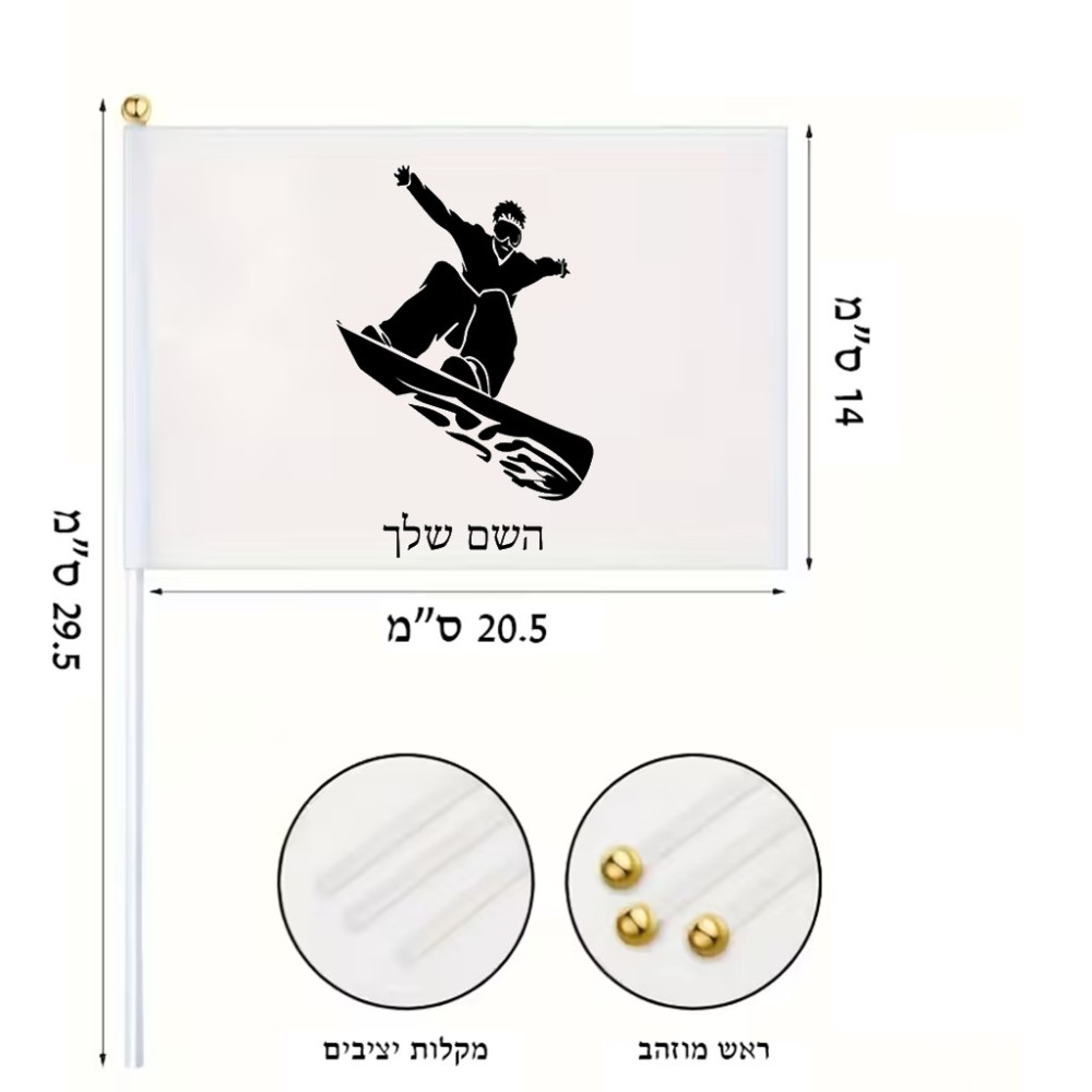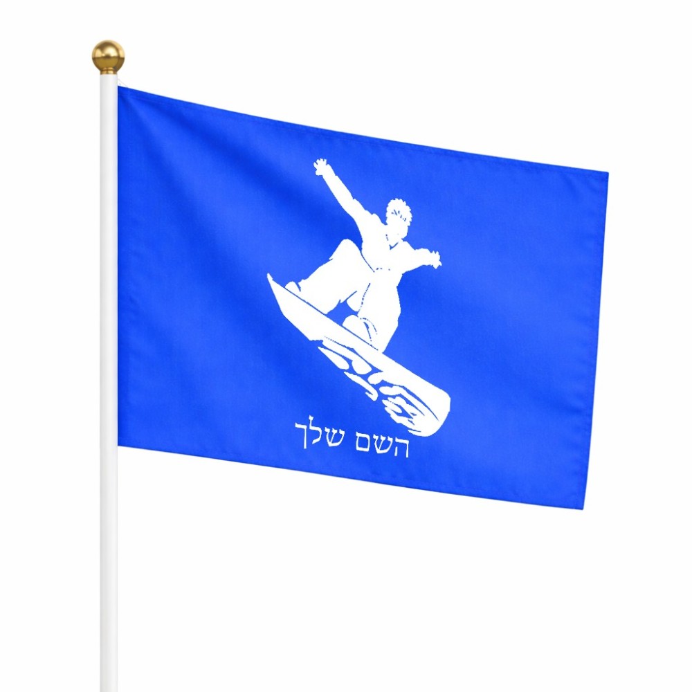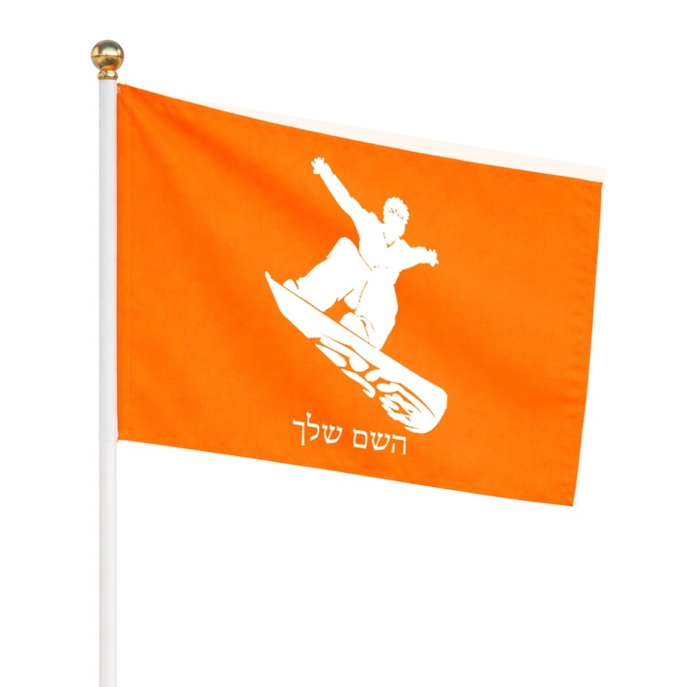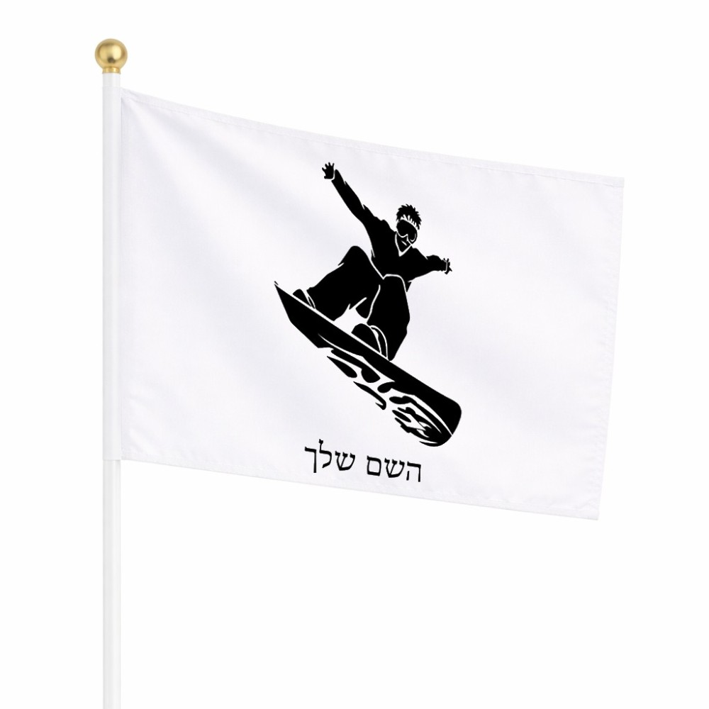 דיגלון בעיצוב אישי עם השם שלך בעיצוב סנובורדיסט גודל הדיגלון 20.5 × 14 ס"מ, ההדפסה מתבצעת בשני צידי הדגל, את השם המבוקש ניתן לציין בהזמנה, אם לא צויין אנחנו ניצור קשר לבירור.