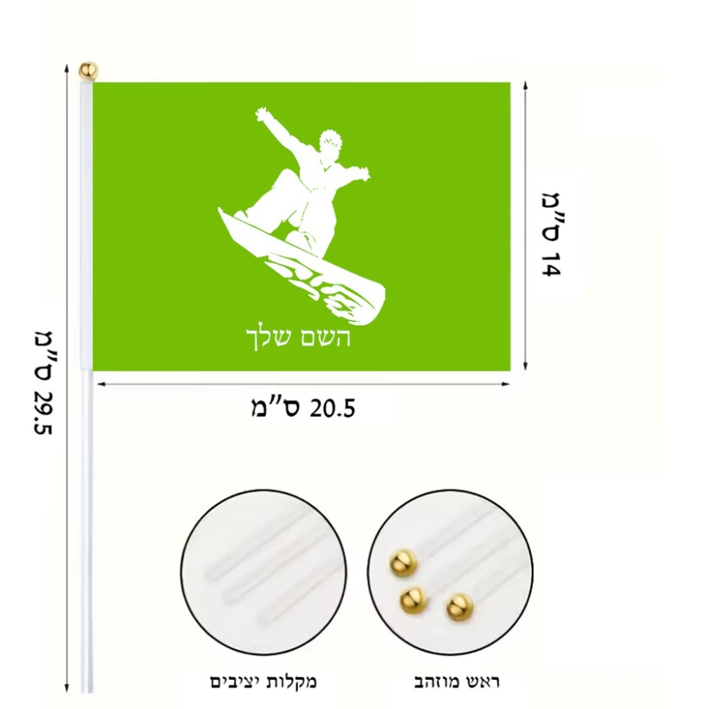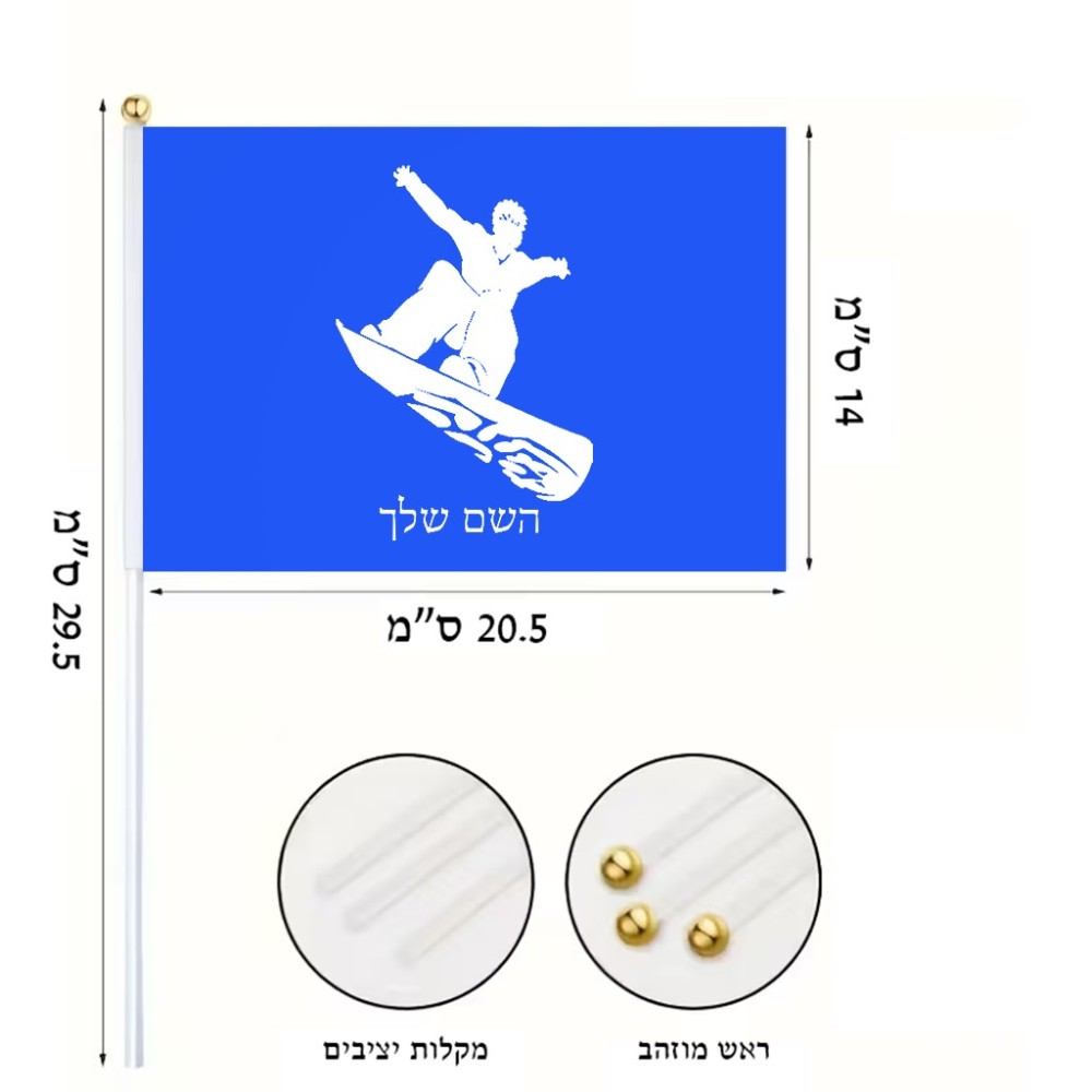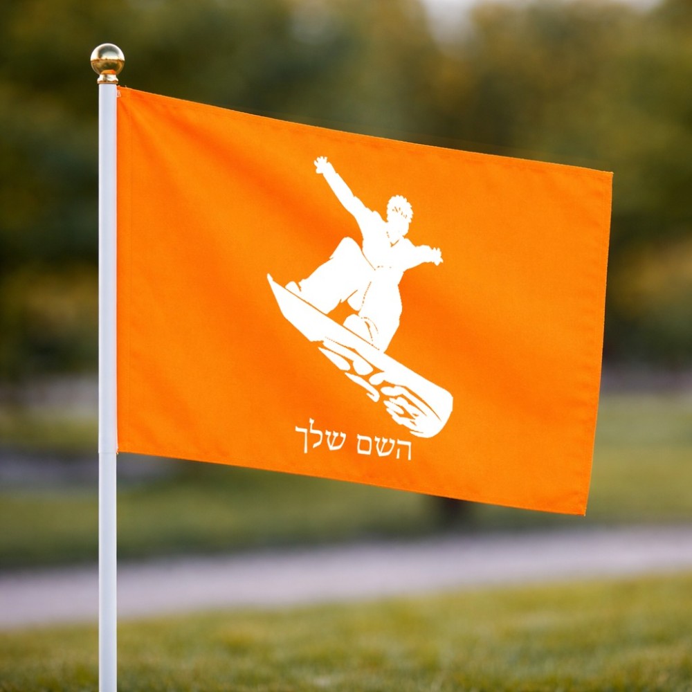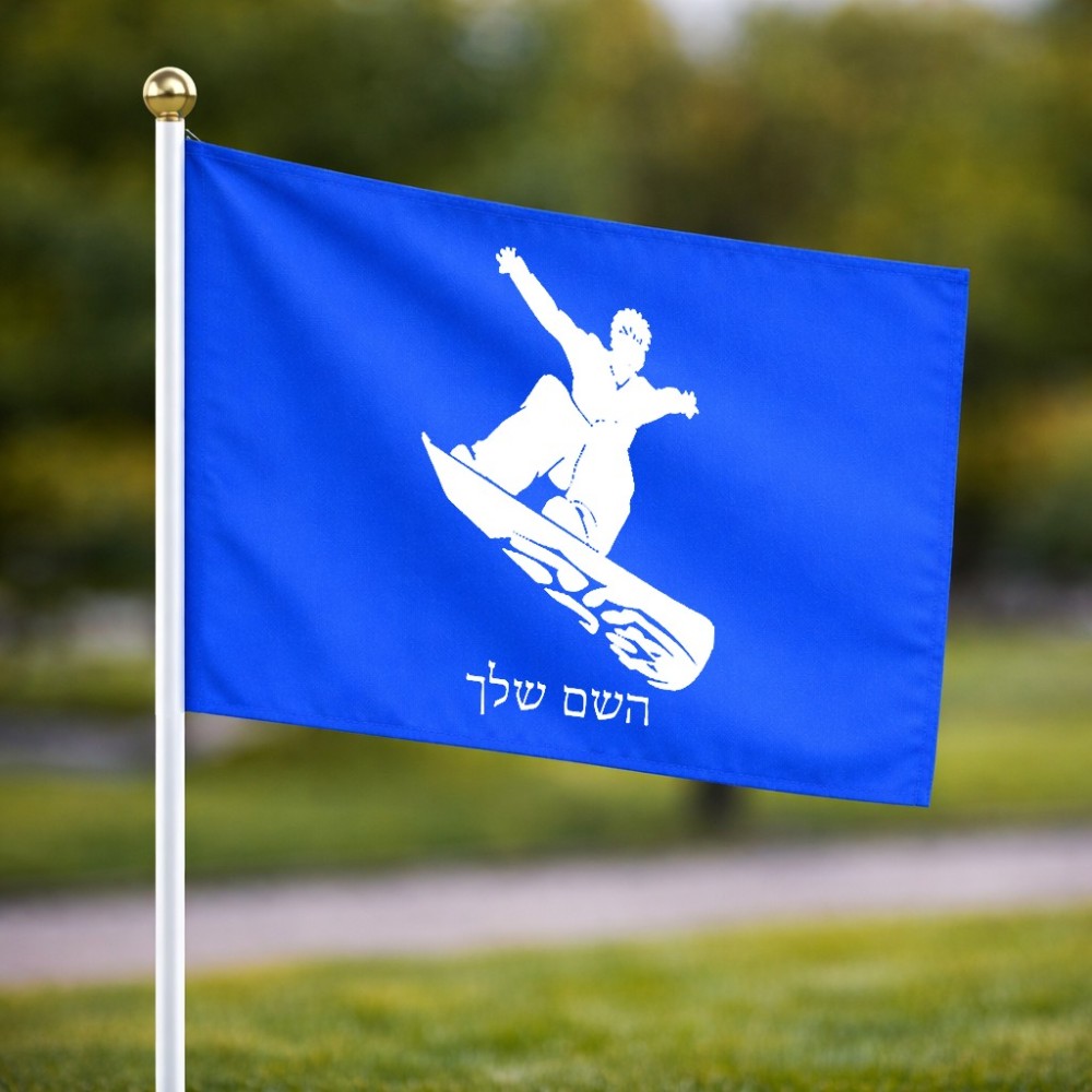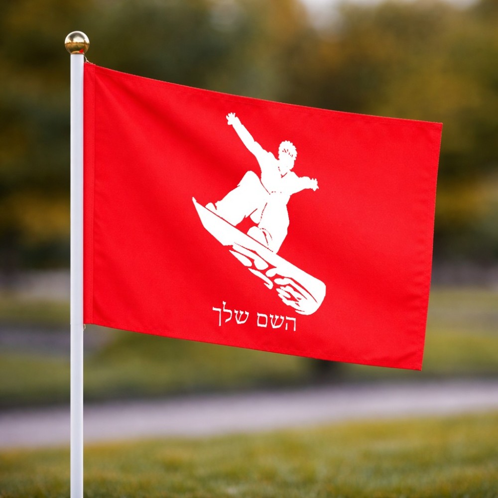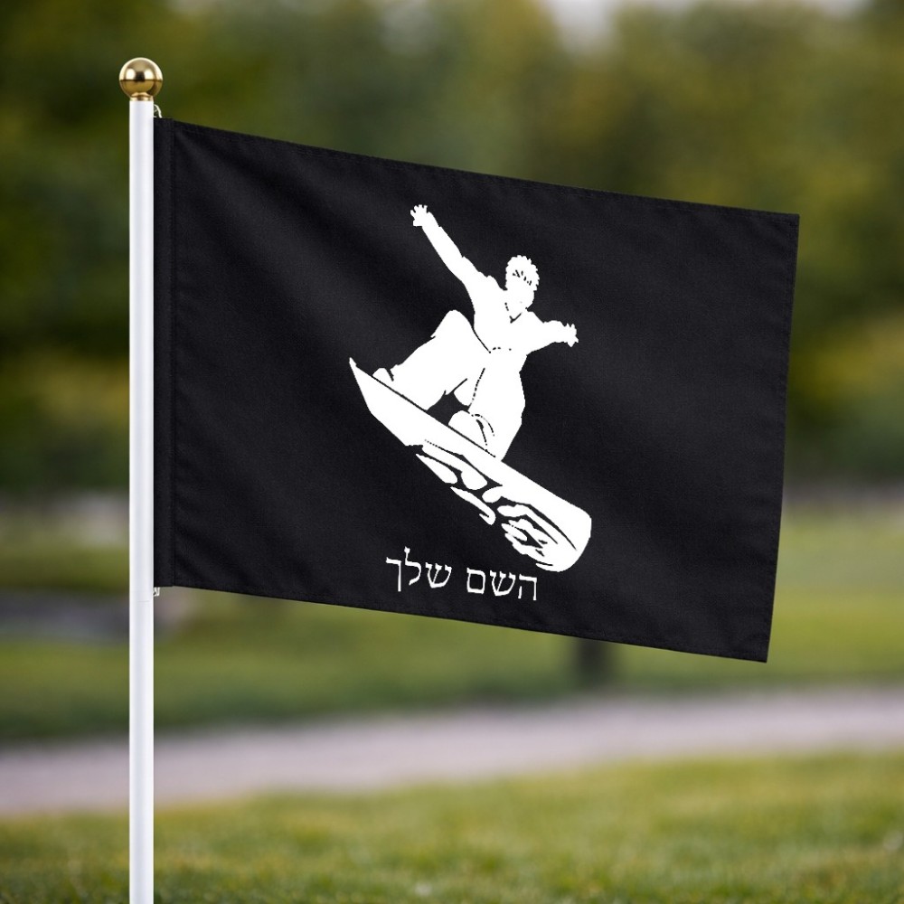 דיגלון בעיצוב אישי עם השם שלך בעיצוב סנובורדיסט גודל הדיגלון 20.5 × 14 ס"מ, ההדפסה מתבצעת בשני צידי הדגל, את השם המבוקש ניתן לציין בהזמנה, אם לא צויין אנחנו ניצור קשר לבירור.