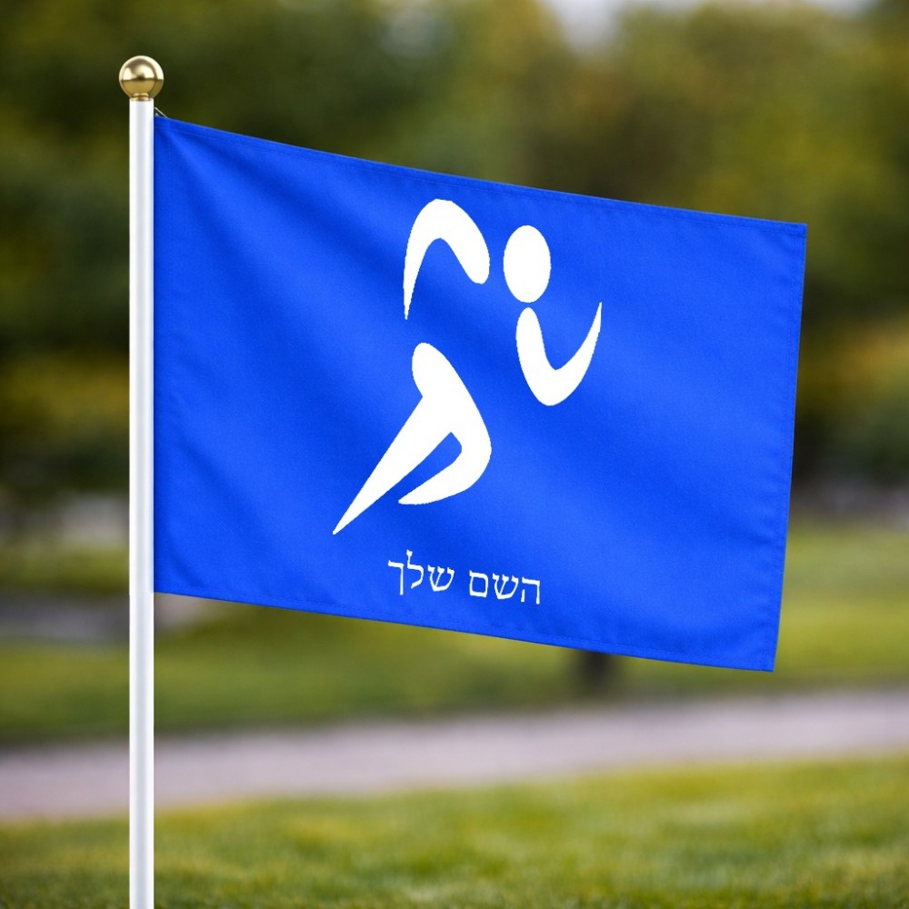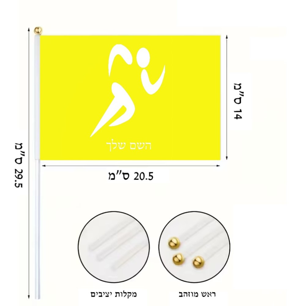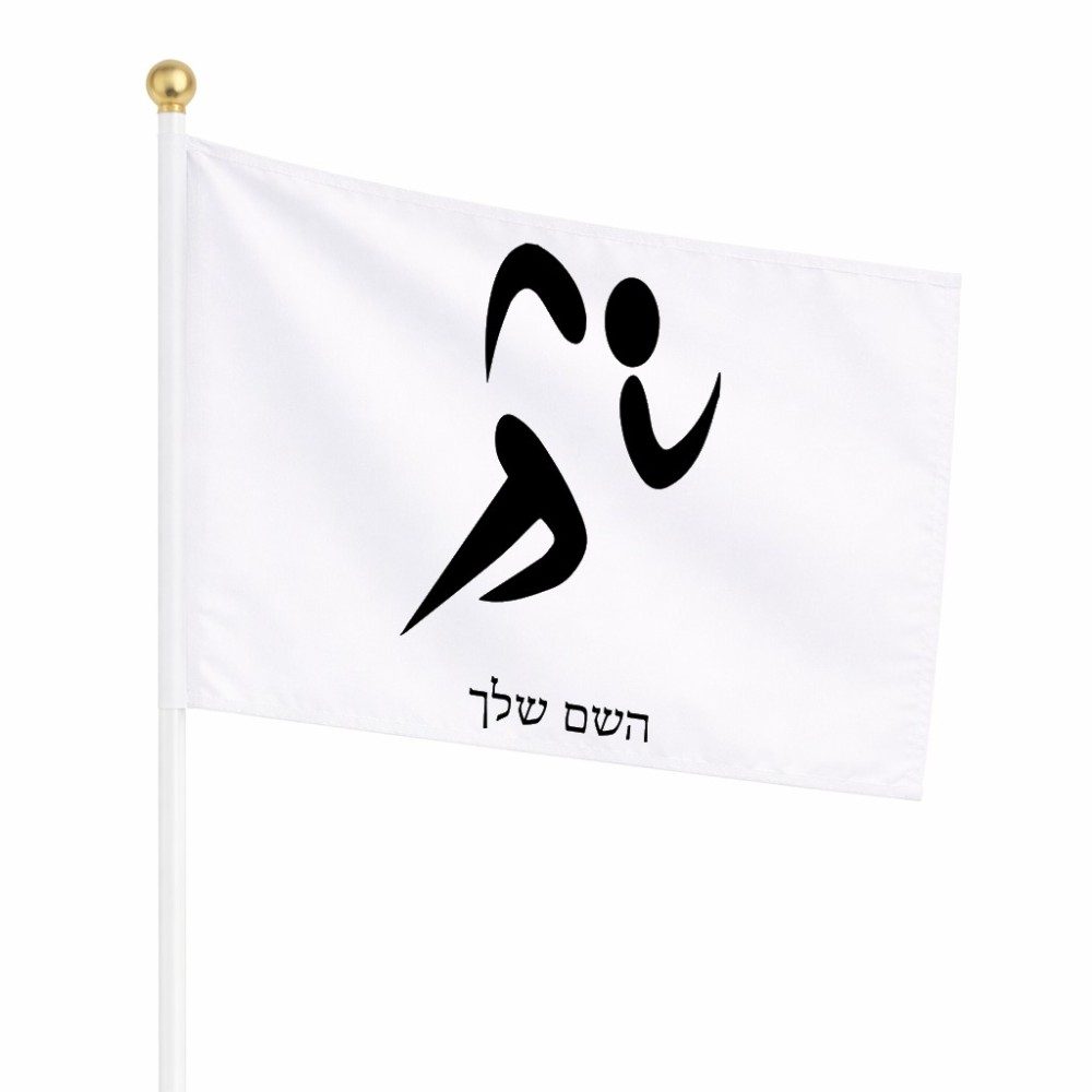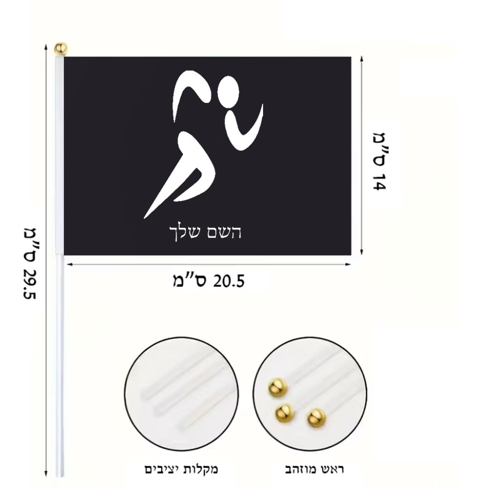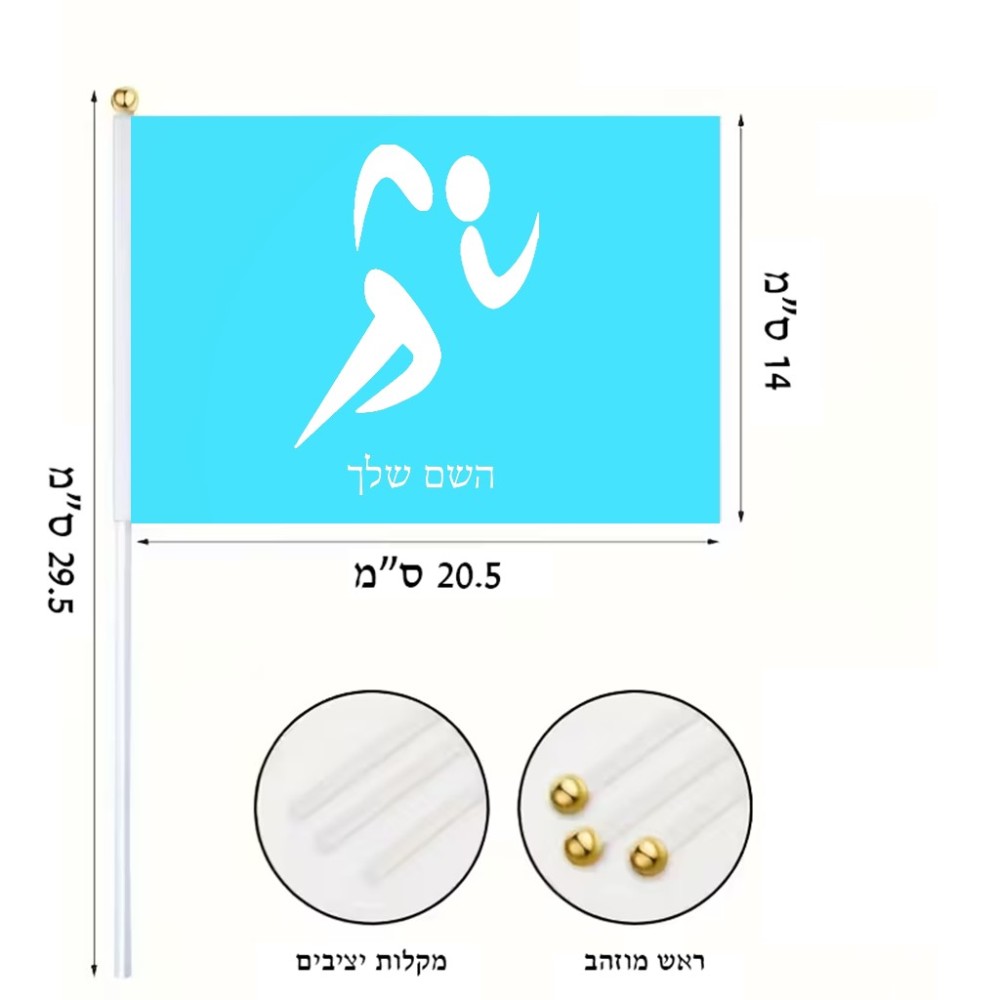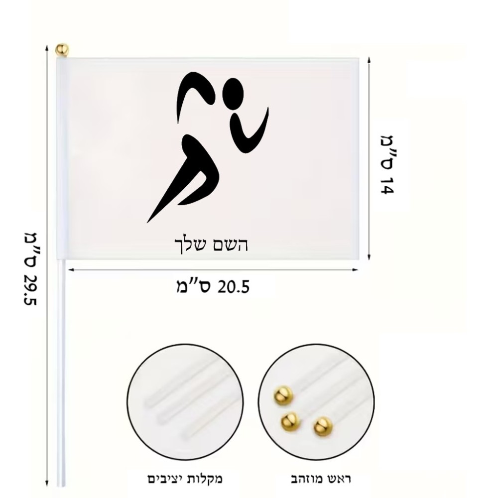 דיגלון בעיצוב אישי עם השם שלך בעיצוב רצים אולימפיים גודל הדיגלון 20.5 × 14 ס"מ, ההדפסה מתבצעת בשני צידי הדגל, את השם המבוקש ניתן לציין בהזמנה, אם לא צויין אנחנו ניצור קשר לבירור.