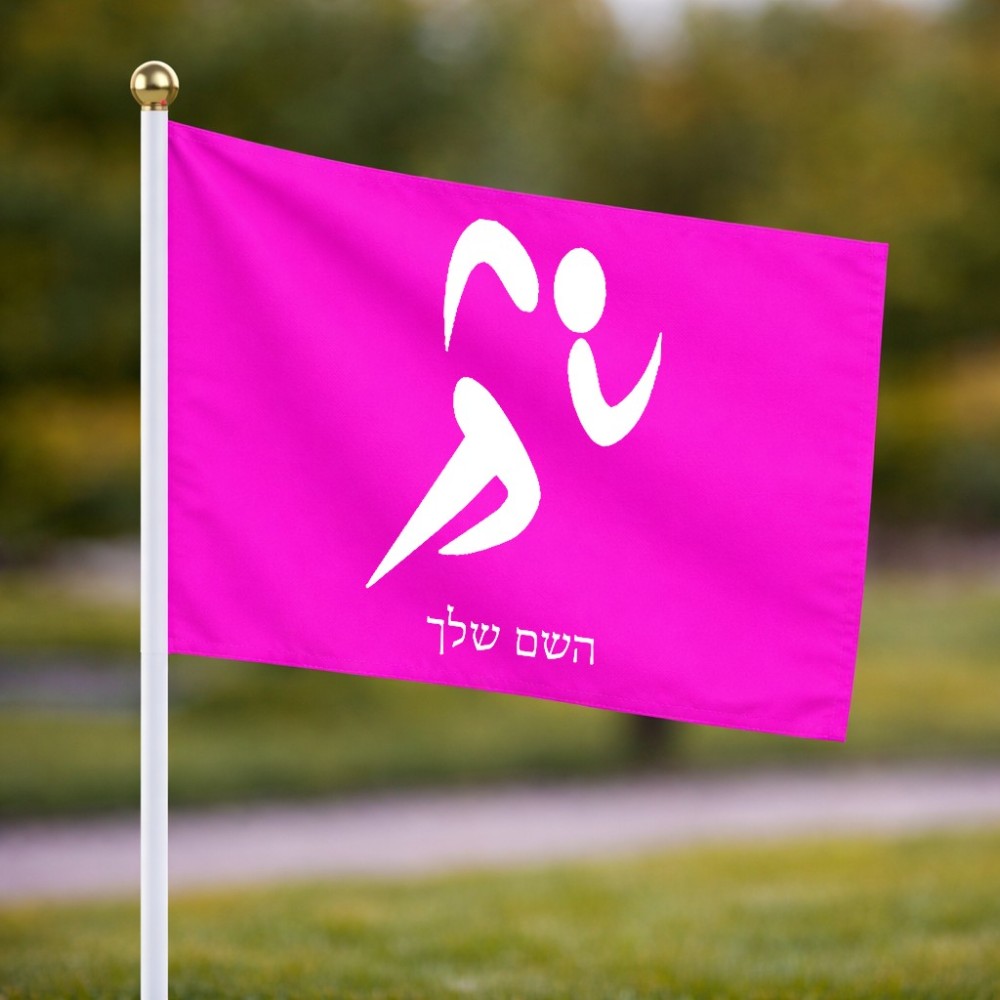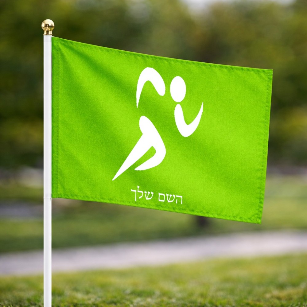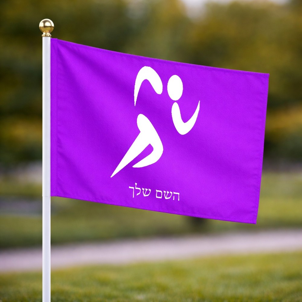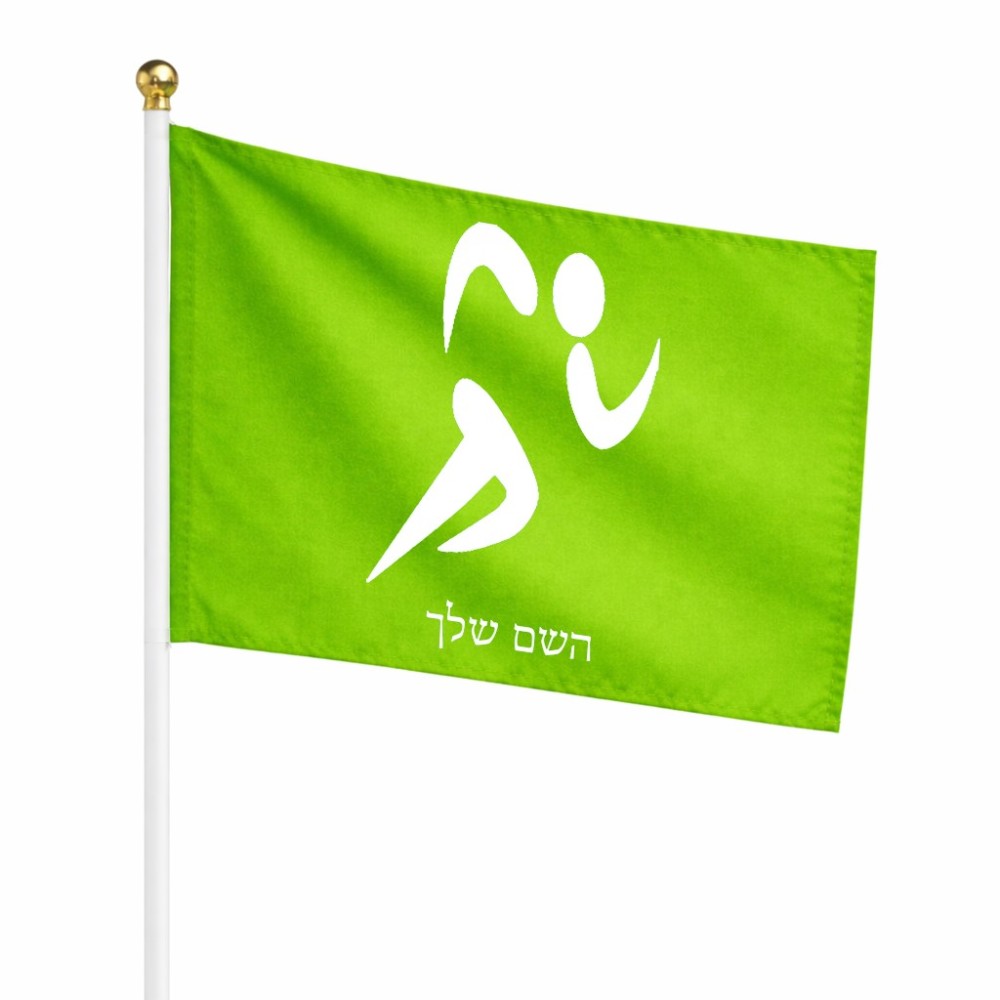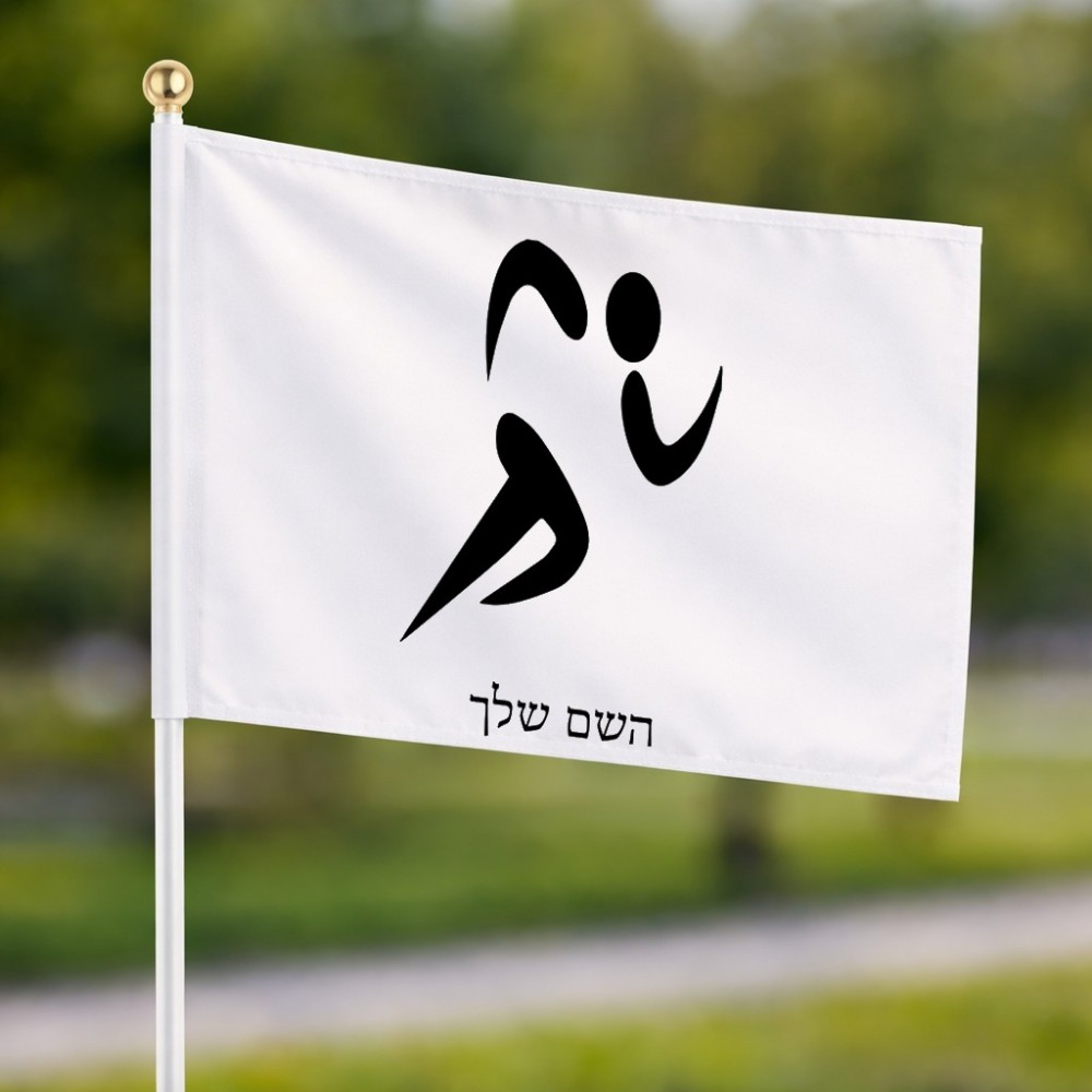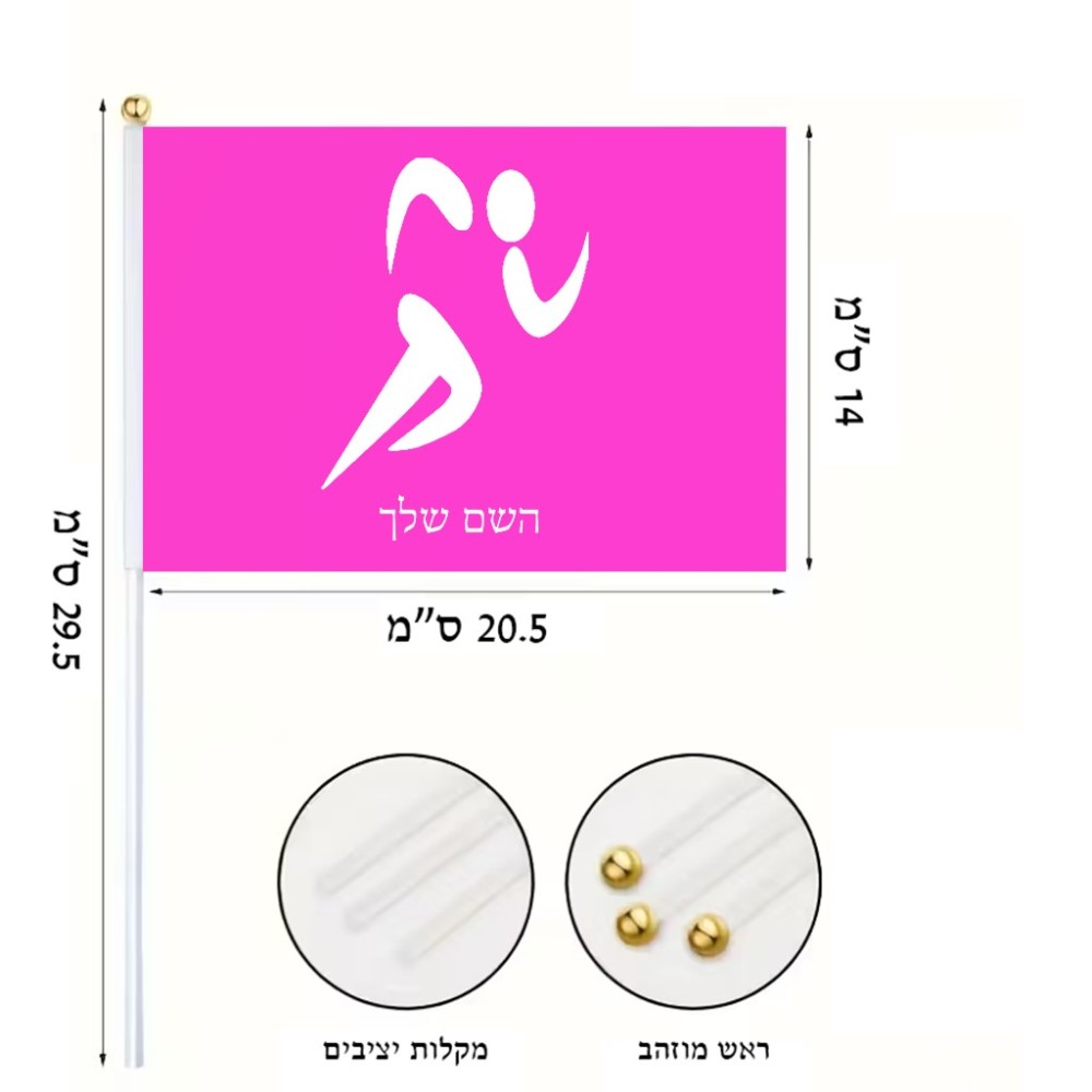 דיגלון בעיצוב אישי עם השם שלך בעיצוב רצים אולימפיים גודל הדיגלון 20.5 × 14 ס"מ, ההדפסה מתבצעת בשני צידי הדגל, את השם המבוקש ניתן לציין בהזמנה, אם לא צויין אנחנו ניצור קשר לבירור.