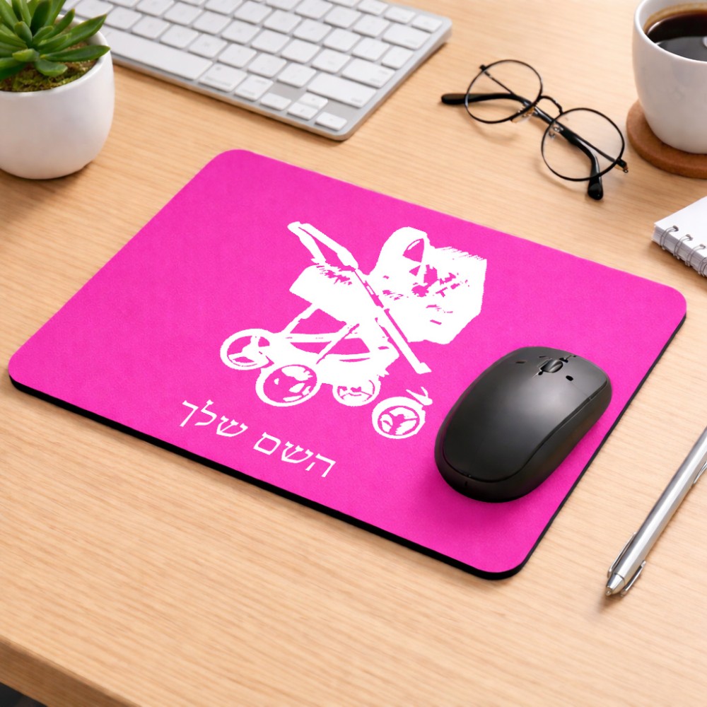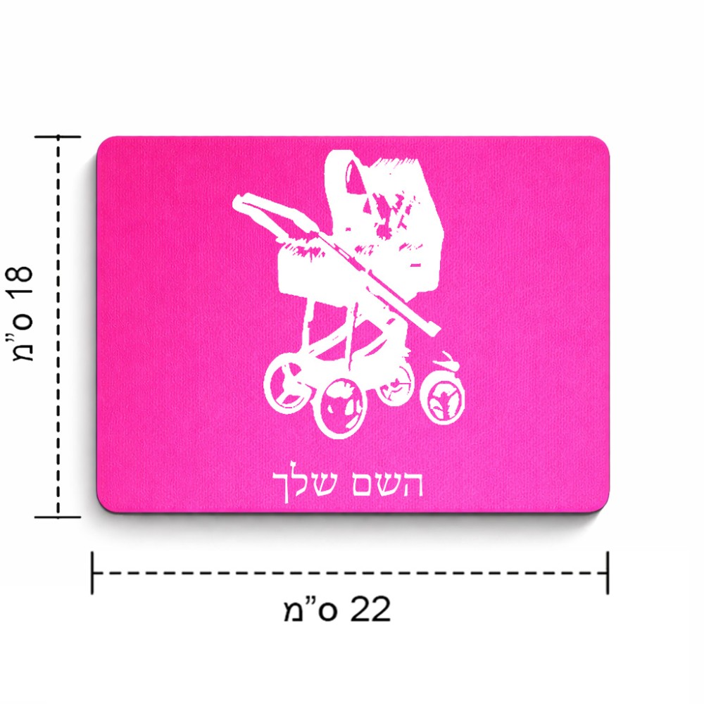 פד לעכבר בעיצוב אישי עם השם שלך בעיצוב עגלת תינוק גודל הפד 22 × 18 ס"מ. את השם המבוקש ניתן לציין בהזמנה, אם לא צויין אנחנו ניצור קשר לבירור.