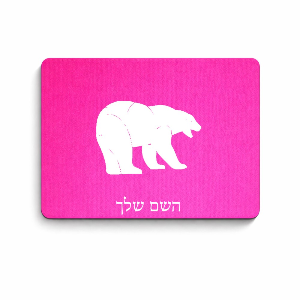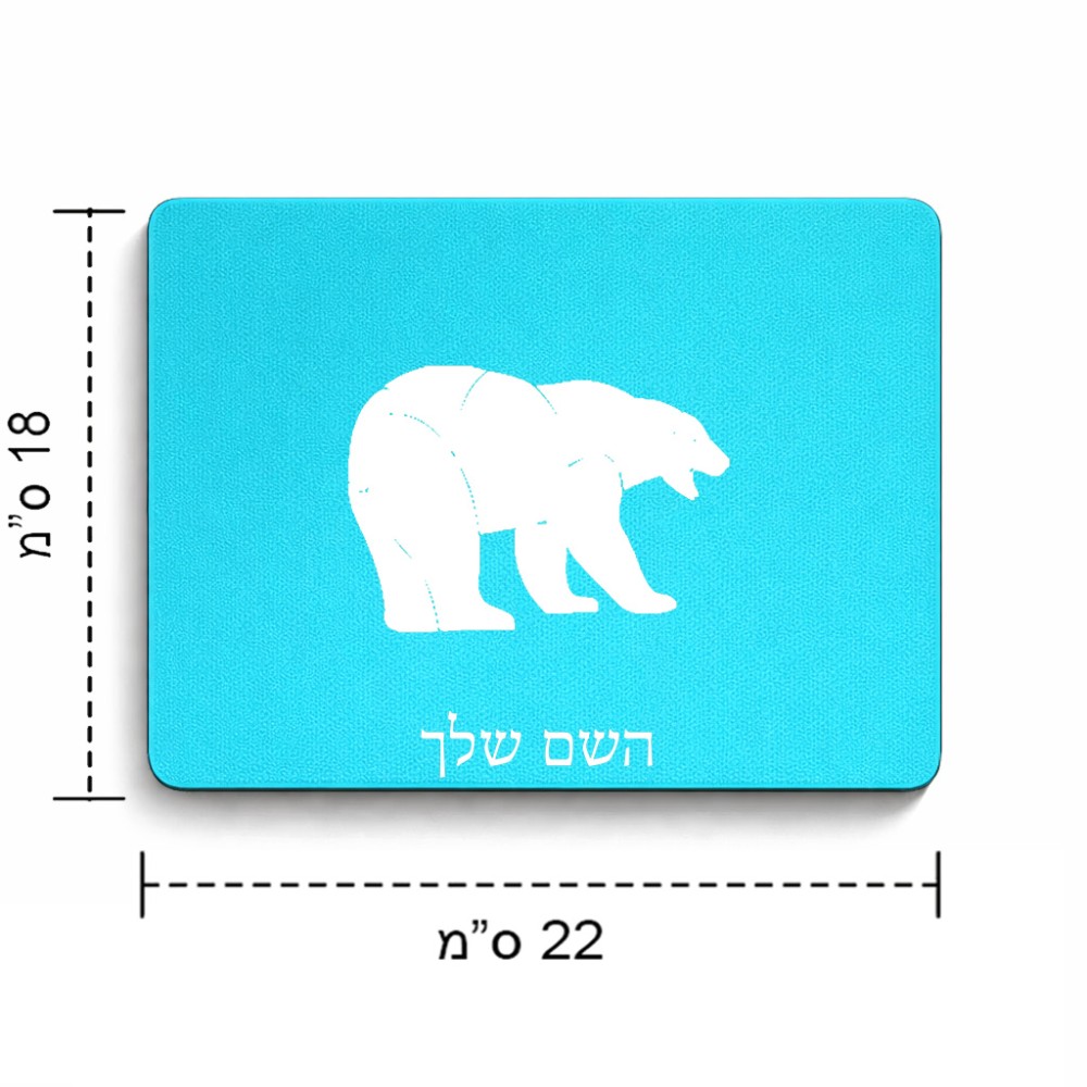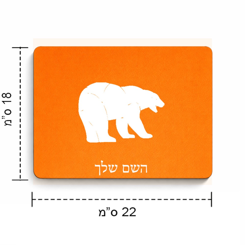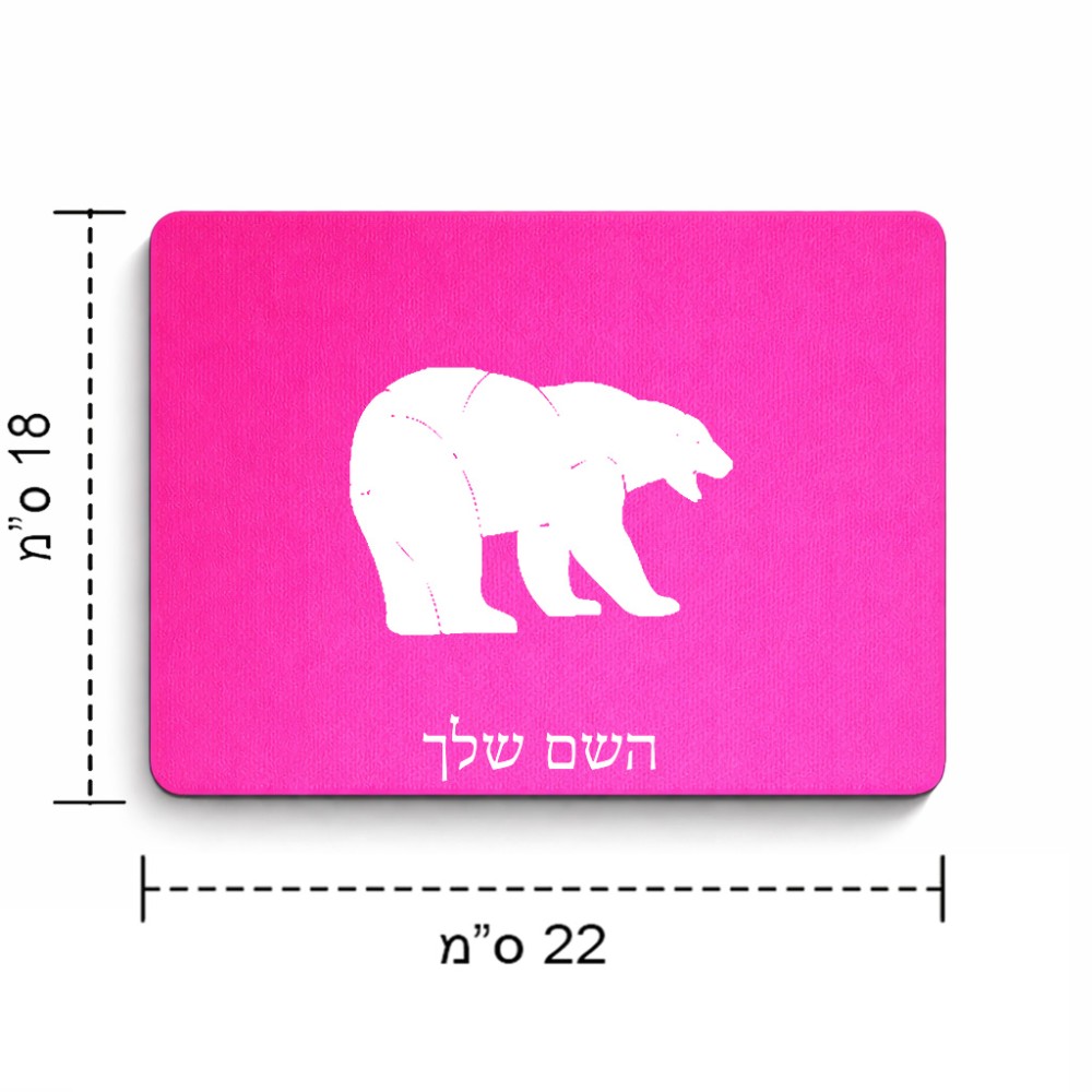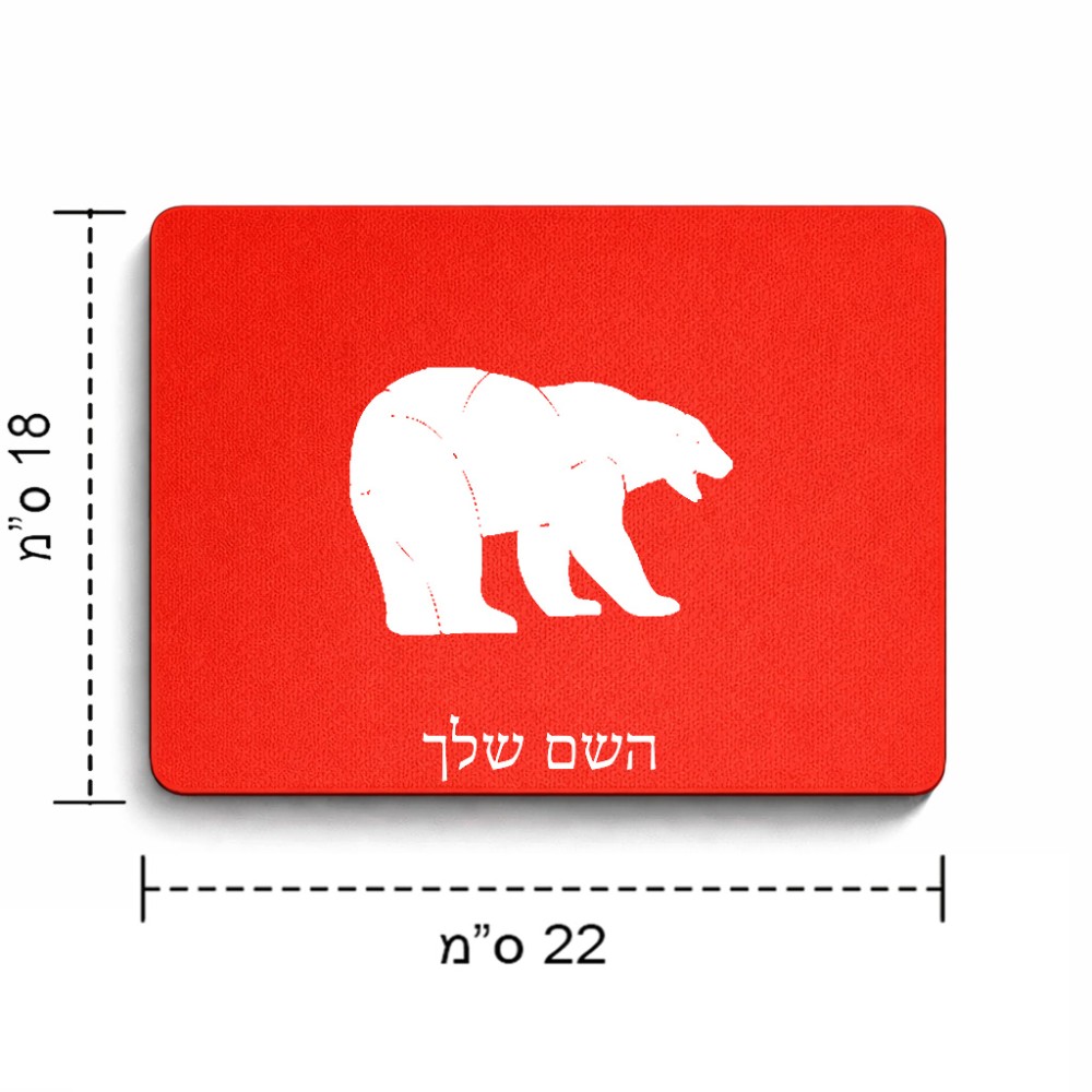 פד לעכבר בעיצוב אישי עם השם שלך בעיצוב דוב גודל הפד 22 × 18 ס"מ. את השם המבוקש ניתן לציין בהזמנה, אם לא צויין אנחנו ניצור קשר לבירור.