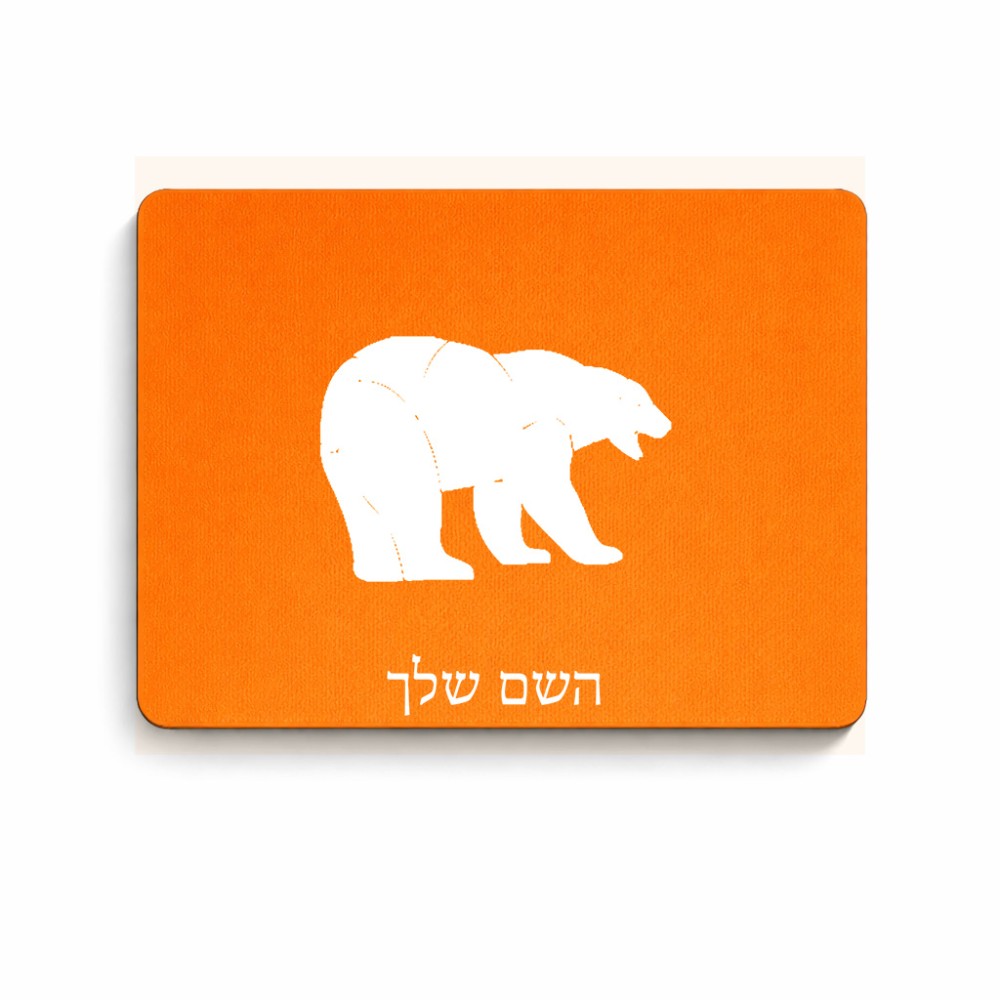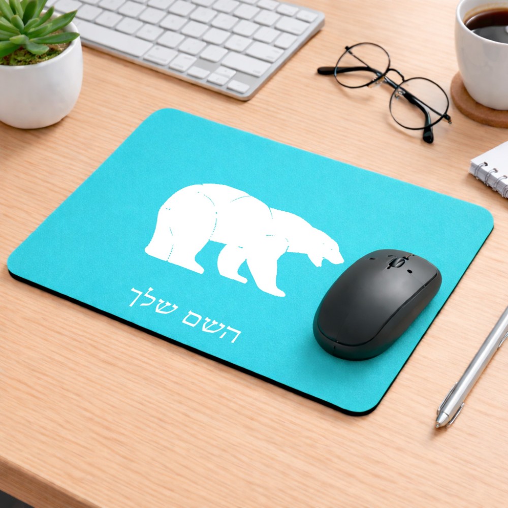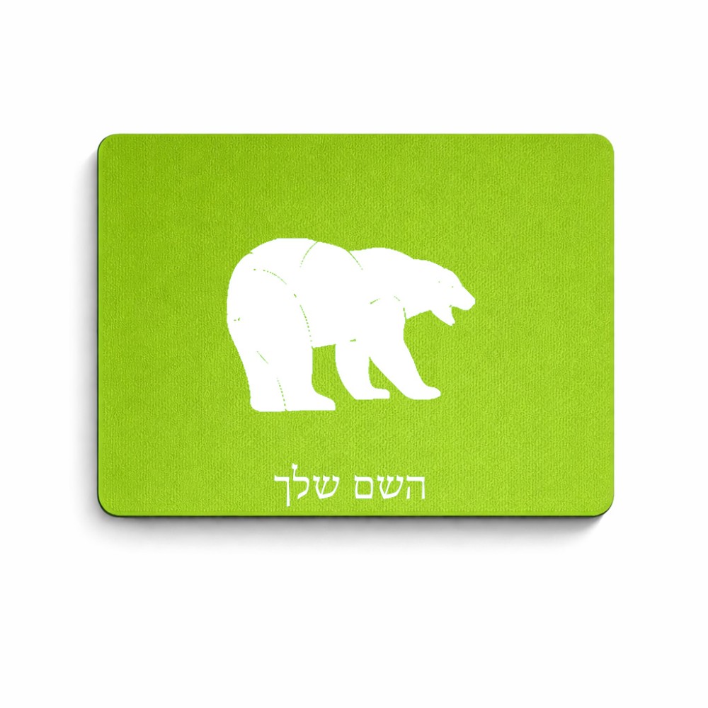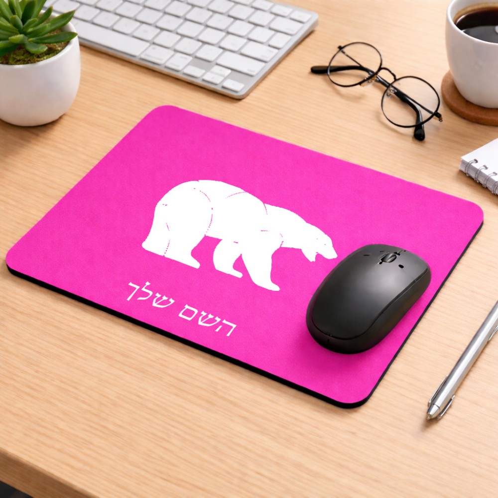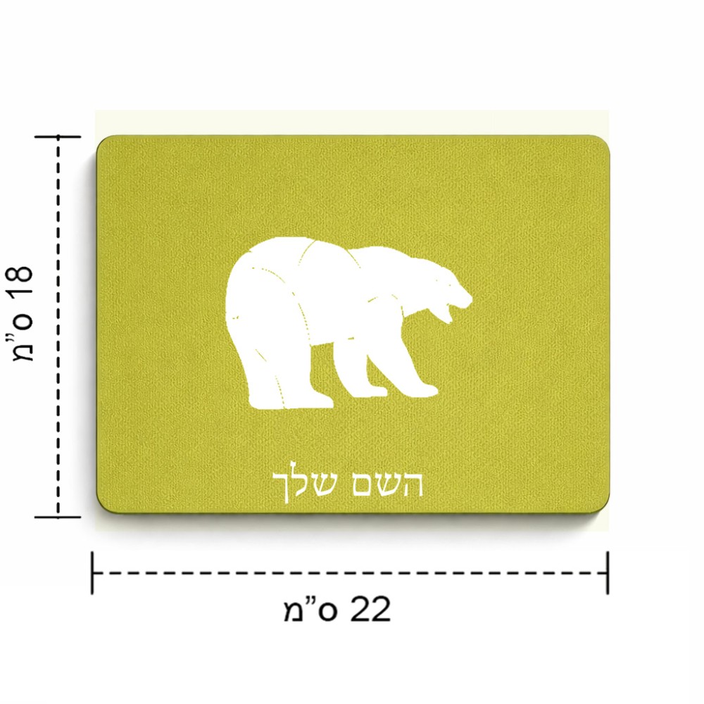פד לעכבר בעיצוב אישי עם השם שלך בעיצוב דוב גודל הפד 22 × 18 ס"מ. את השם המבוקש ניתן לציין בהזמנה, אם לא צויין אנחנו ניצור קשר לבירור.