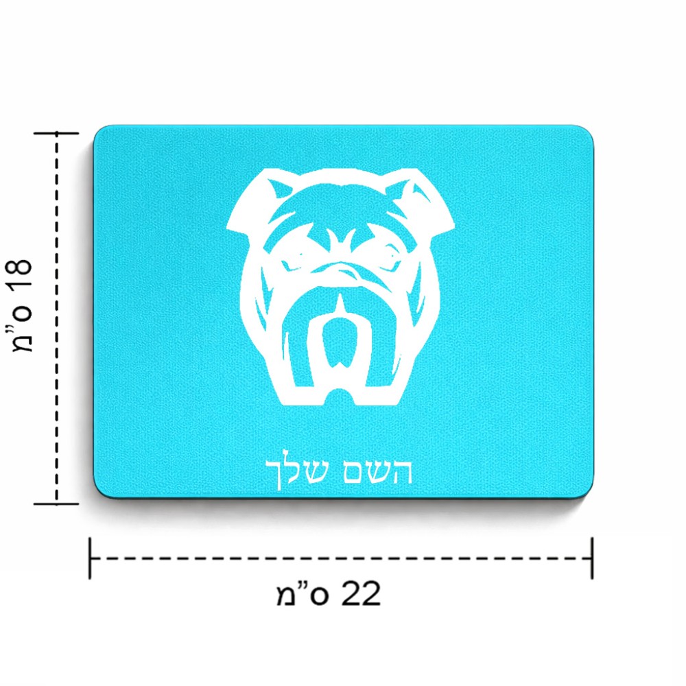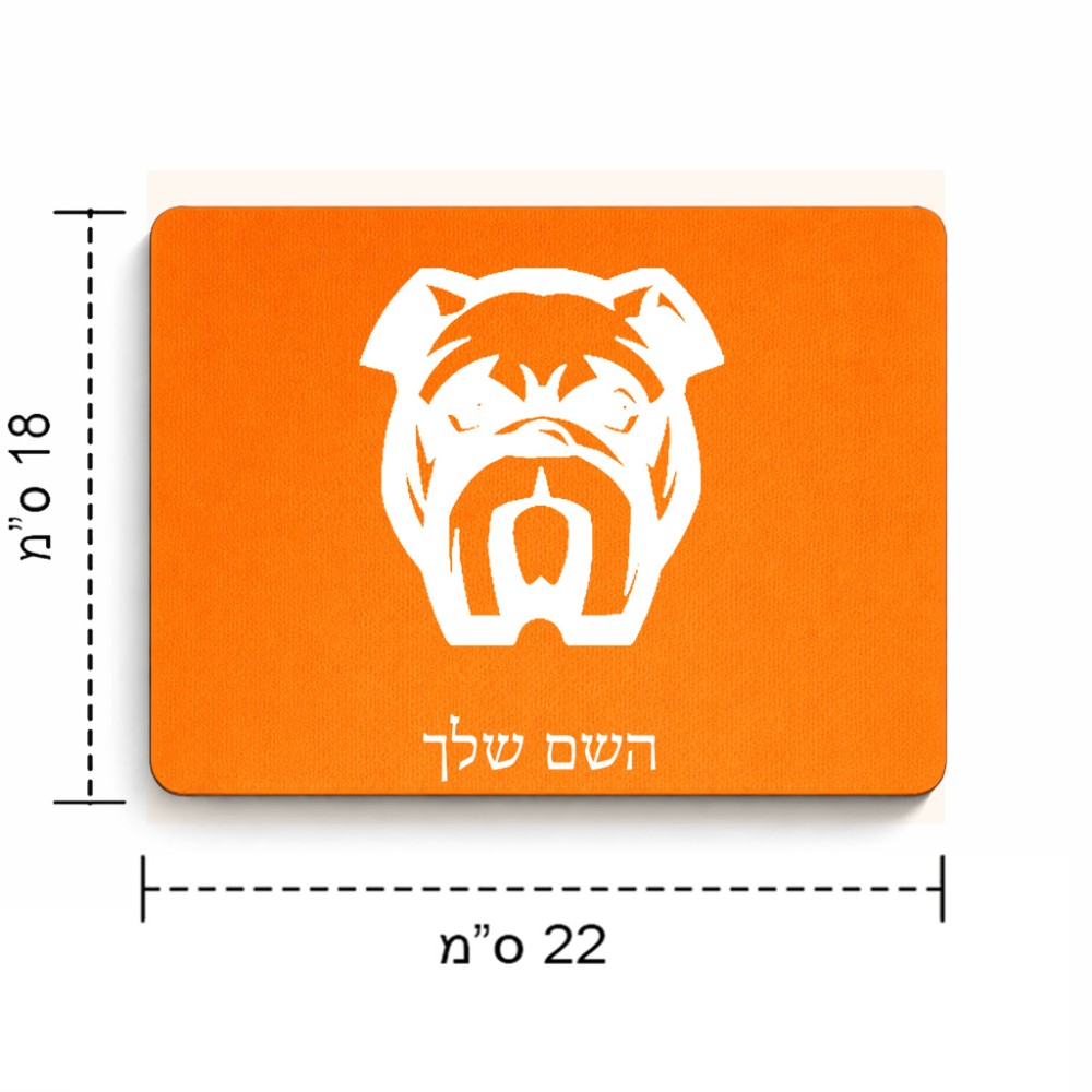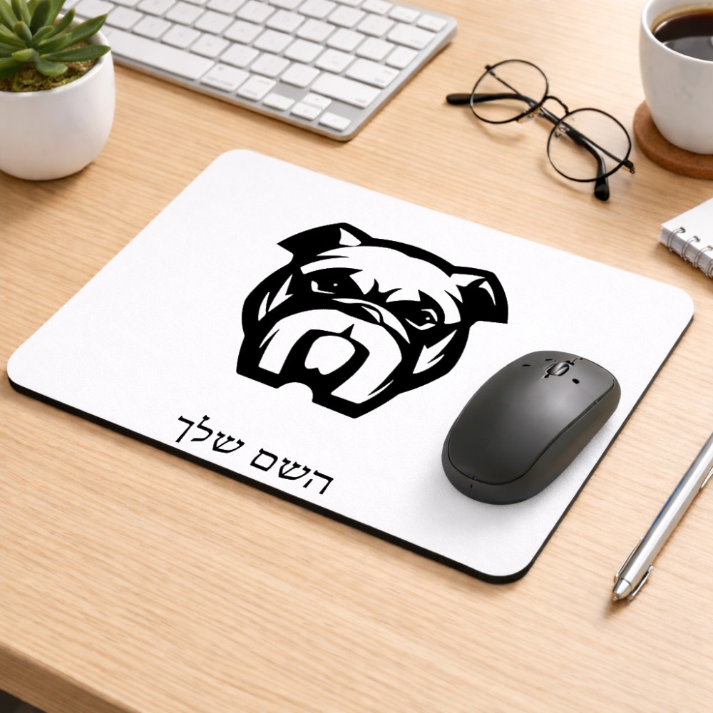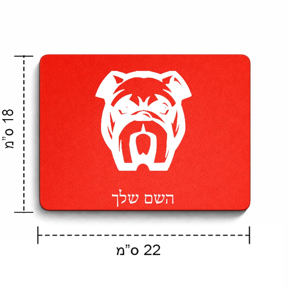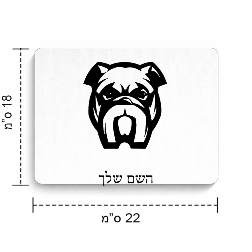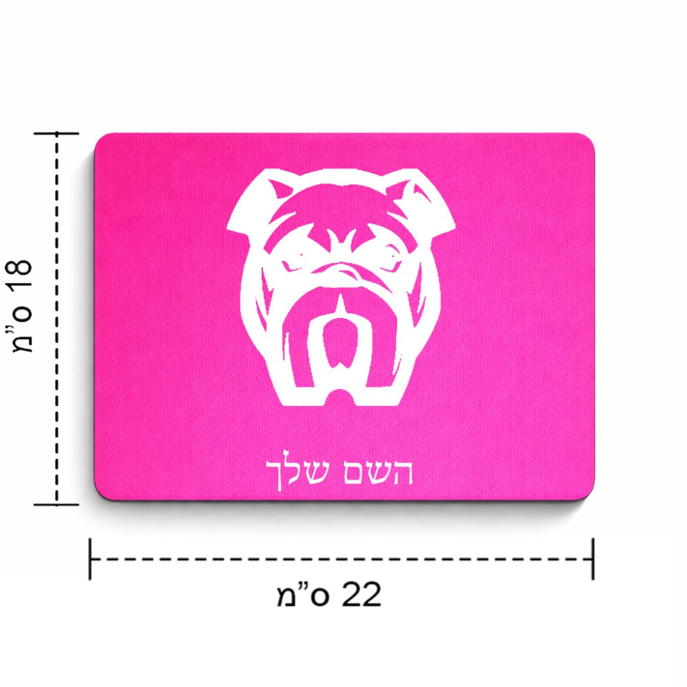 פד לעכבר בעיצוב אישי עם השם שלך בעיצוב פרצוף בולדוג גודל הפד 22 × 18 ס"מ. את השם המבוקש ניתן לציין בהזמנה, אם לא צויין אנחנו ניצור קשר לבירור.