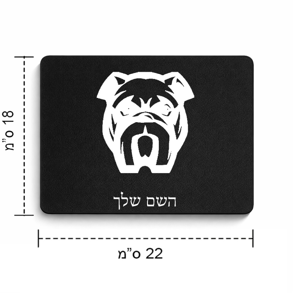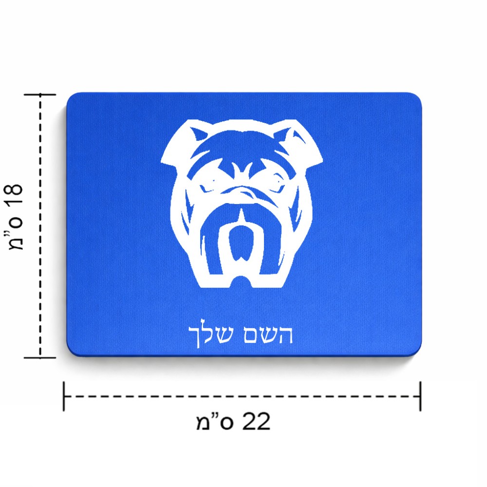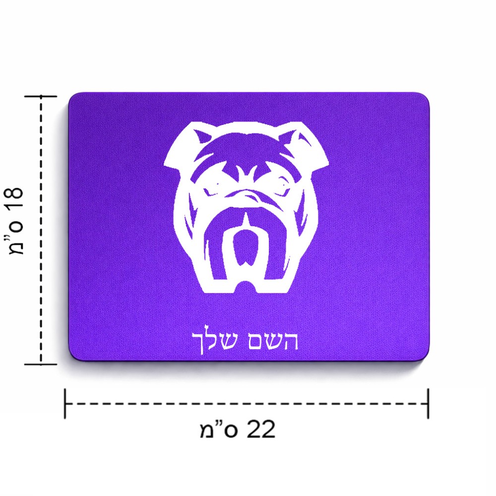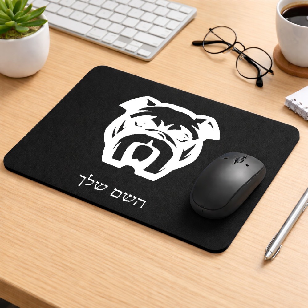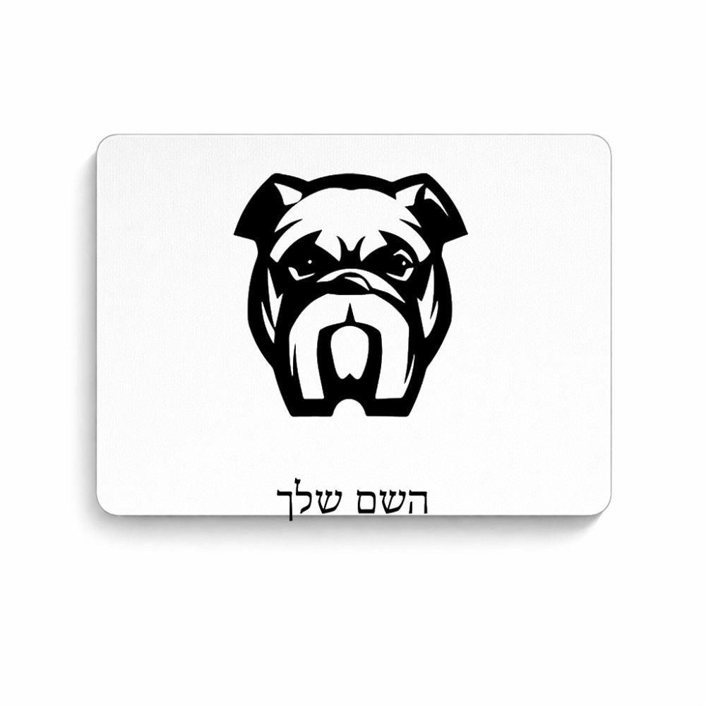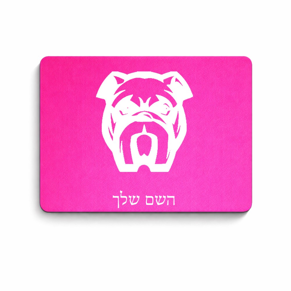 פד לעכבר בעיצוב אישי עם השם שלך בעיצוב פרצוף בולדוג גודל הפד 22 × 18 ס"מ. את השם המבוקש ניתן לציין בהזמנה, אם לא צויין אנחנו ניצור קשר לבירור.