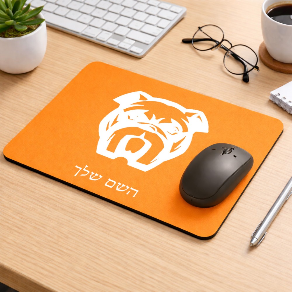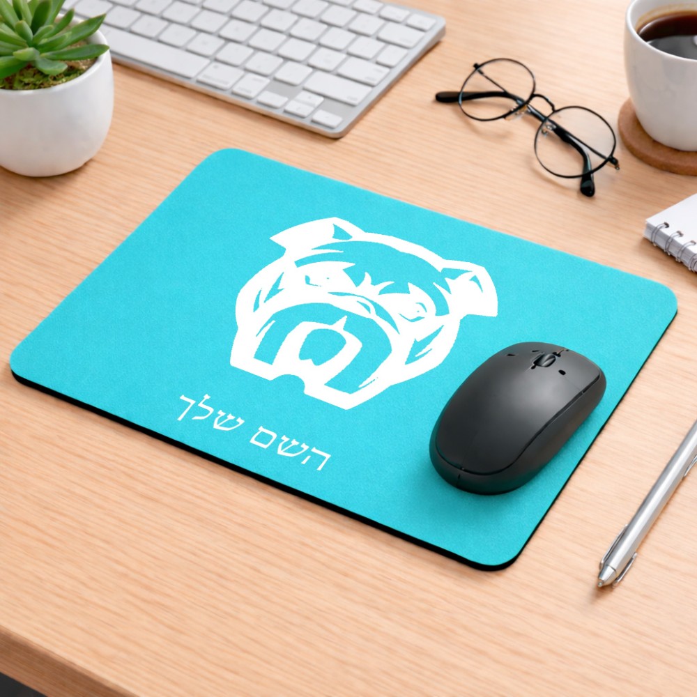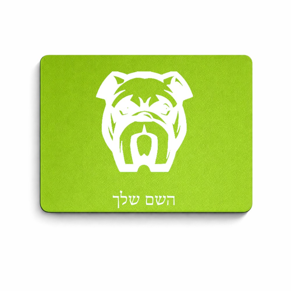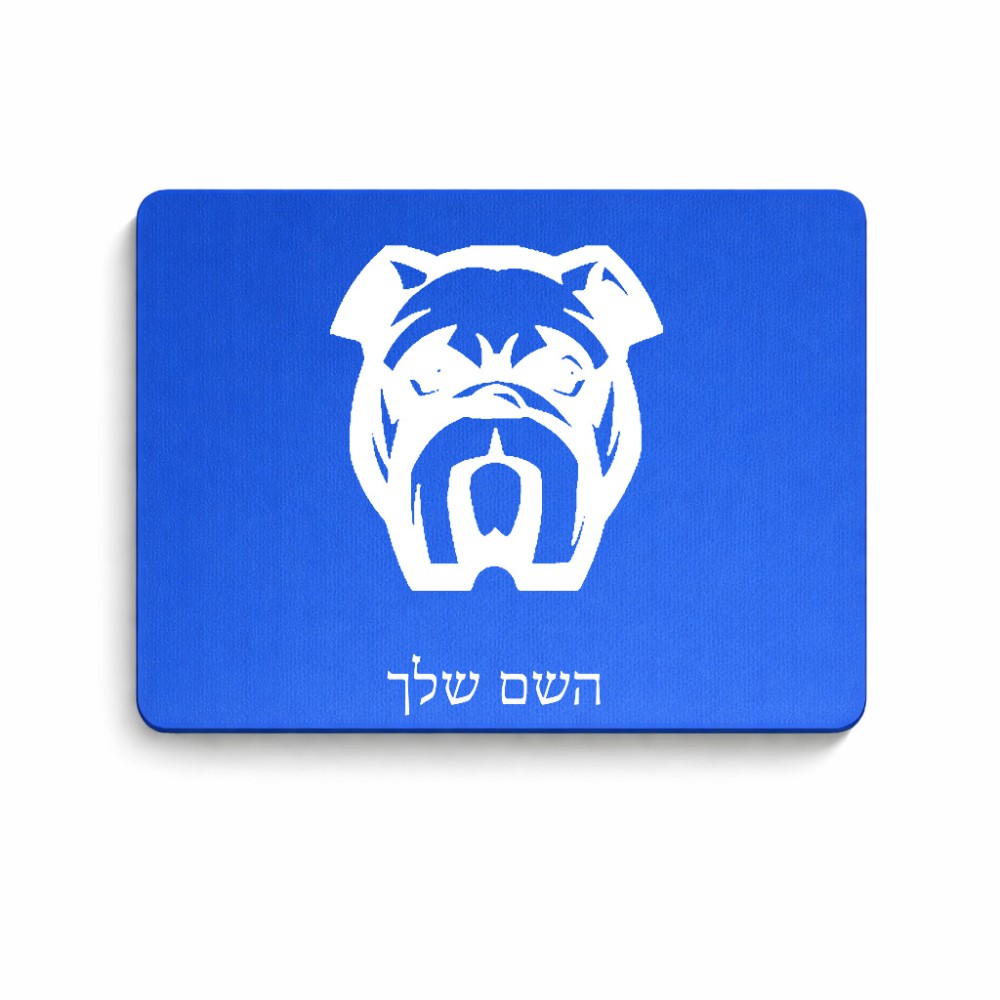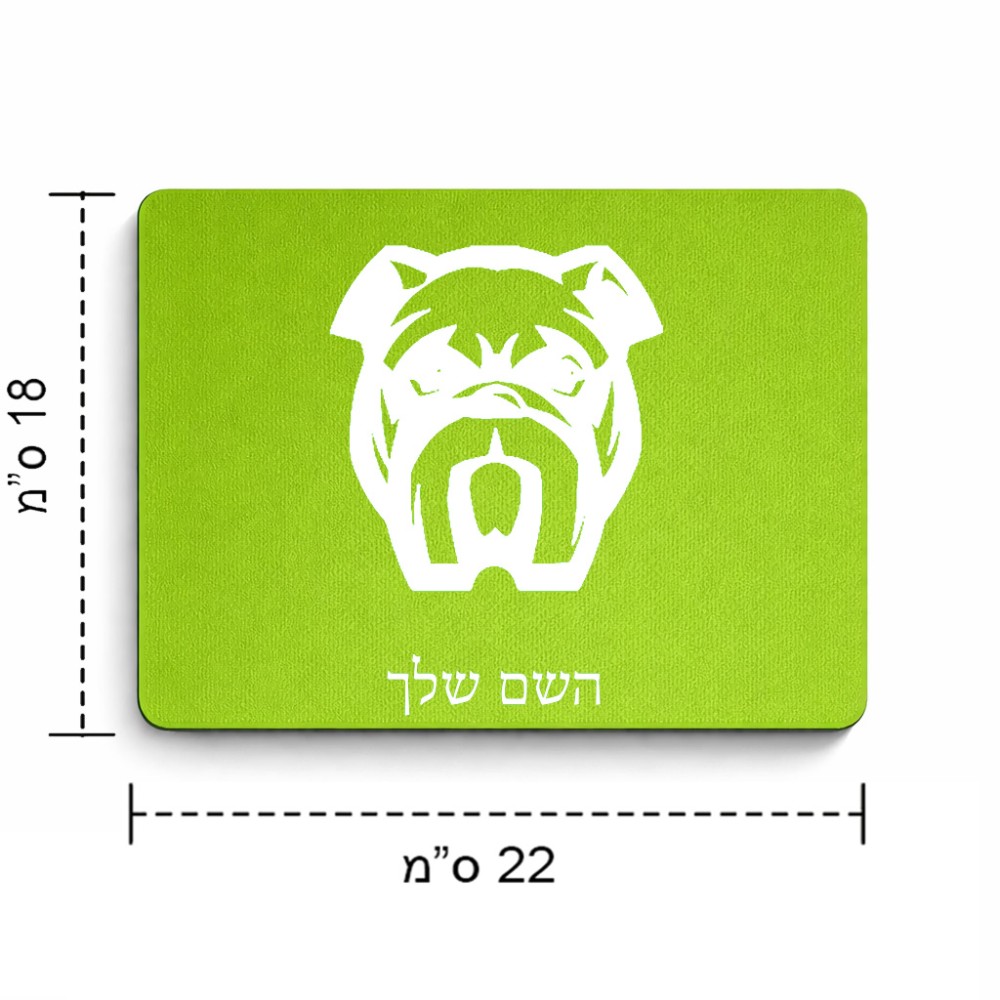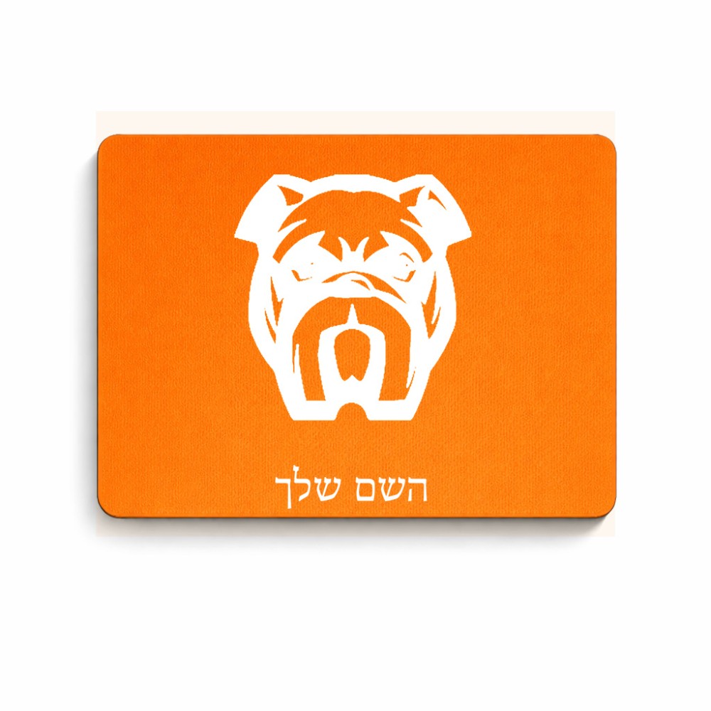 פד לעכבר בעיצוב אישי עם השם שלך בעיצוב פרצוף בולדוג גודל הפד 22 × 18 ס"מ. את השם המבוקש ניתן לציין בהזמנה, אם לא צויין אנחנו ניצור קשר לבירור.