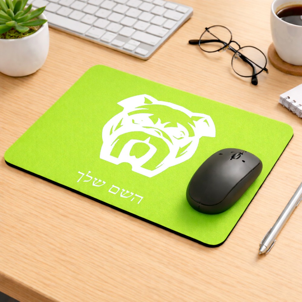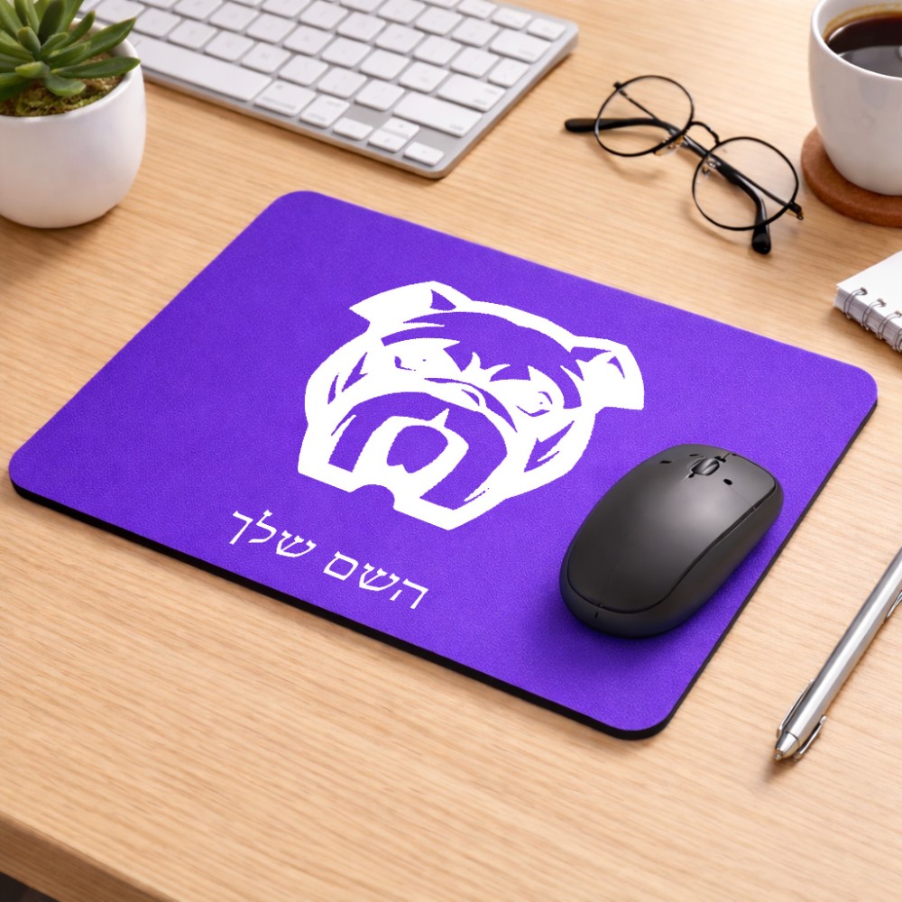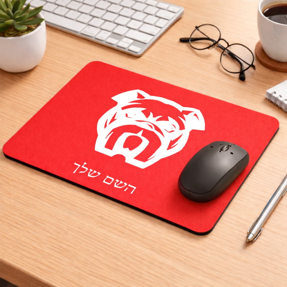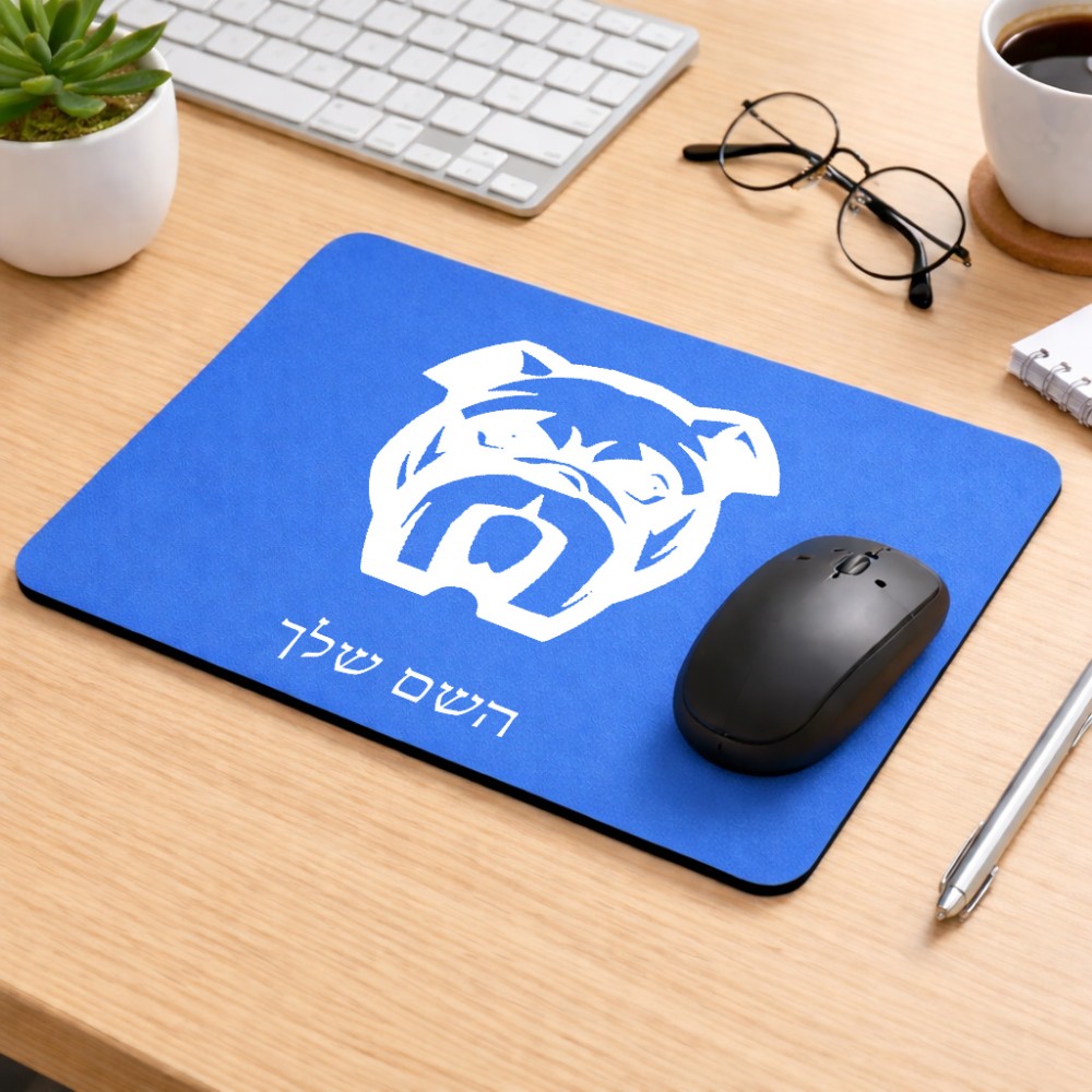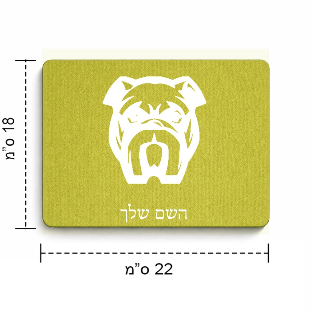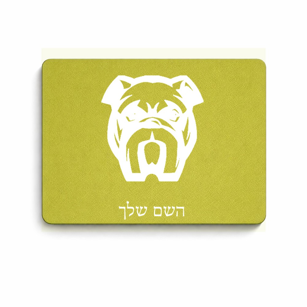 פד לעכבר בעיצוב אישי עם השם שלך בעיצוב פרצוף בולדוג גודל הפד 22 × 18 ס"מ. את השם המבוקש ניתן לציין בהזמנה, אם לא צויין אנחנו ניצור קשר לבירור.