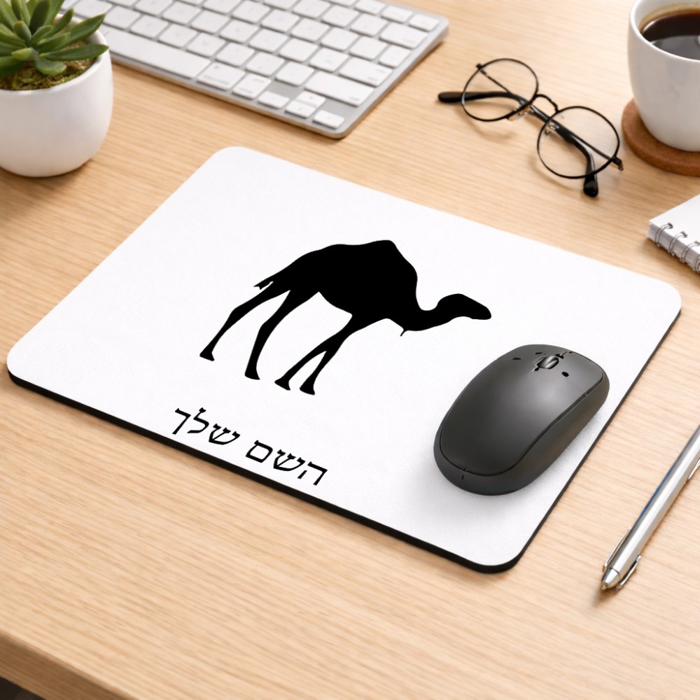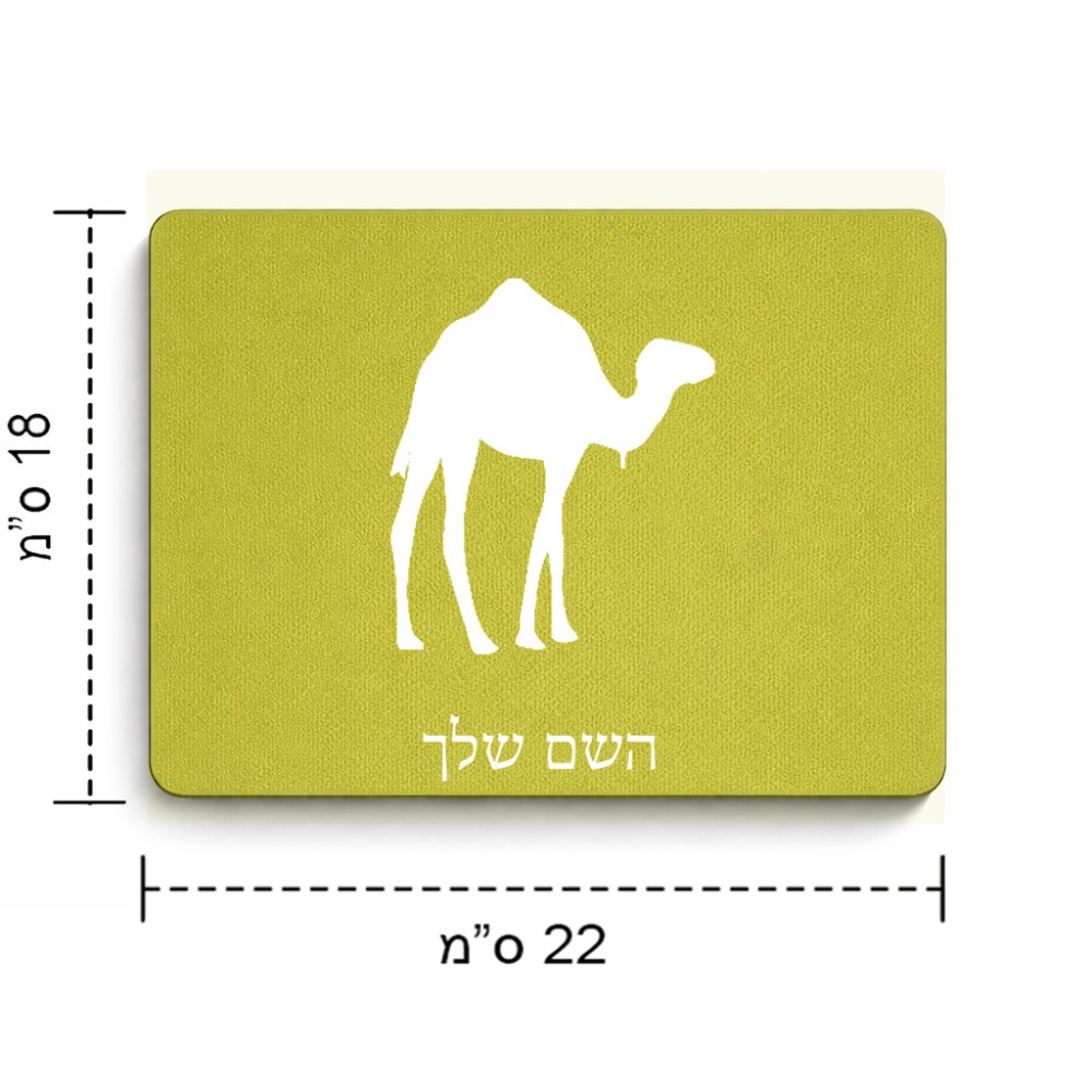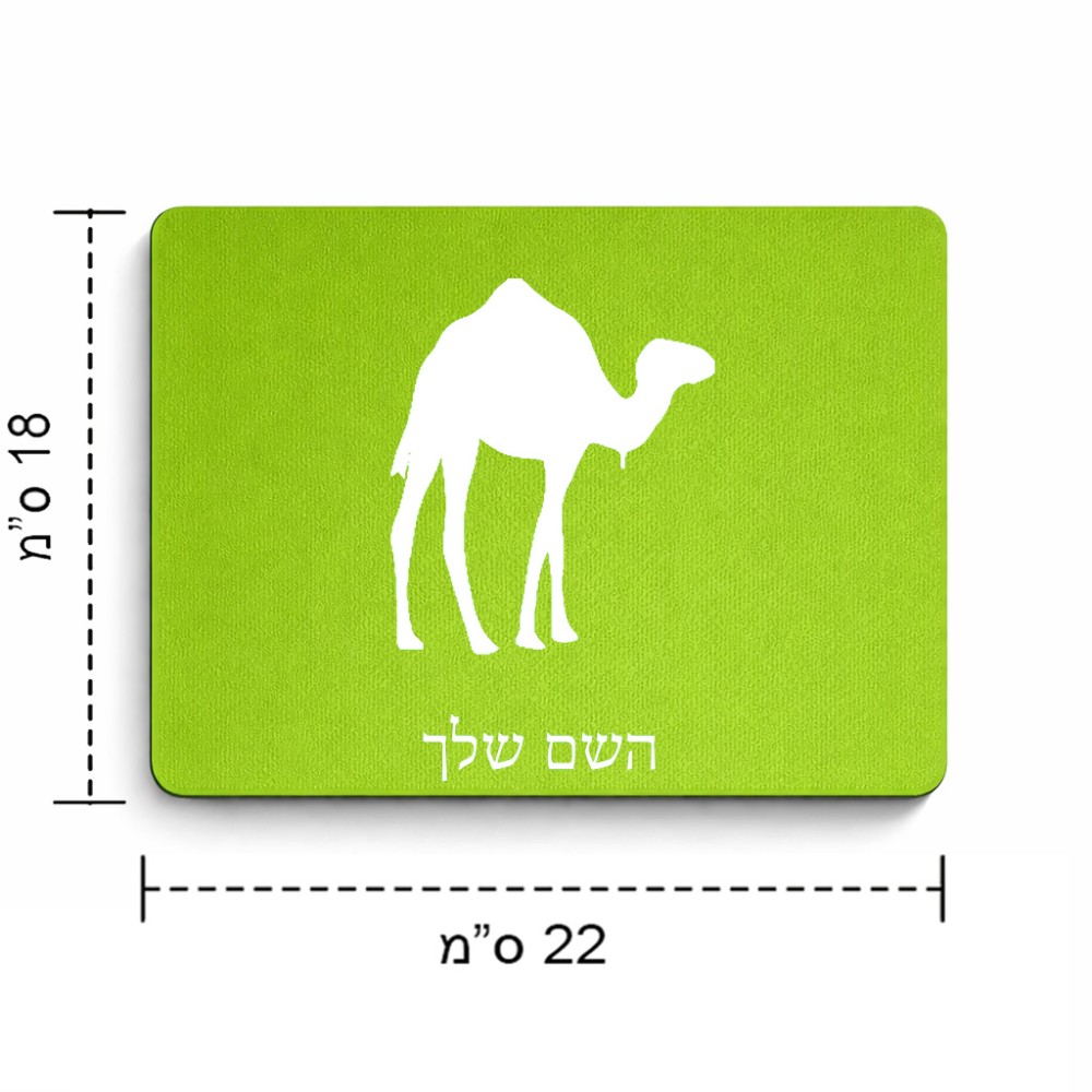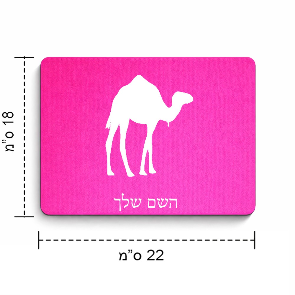 פד לעכבר בעיצוב אישי עם השם שלך בעיצוב גמל גודל הפד 22 × 18 ס"מ. את השם המבוקש ניתן לציין בהזמנה, אם לא צויין אנחנו ניצור קשר לבירור.