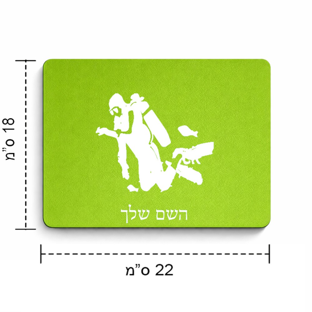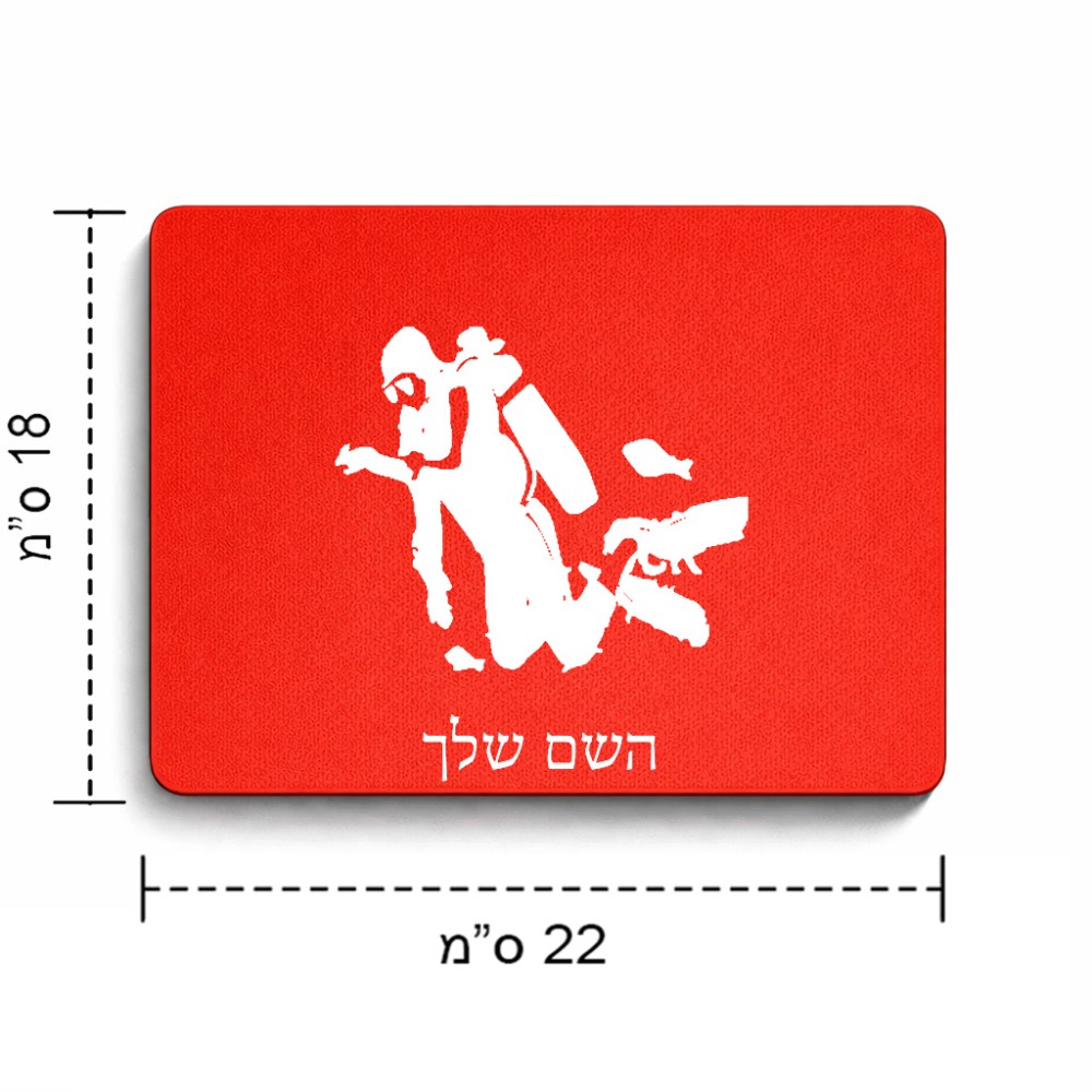 פד לעכבר בעיצוב אישי עם השם שלך בעיצוב צוללן גודל הפד 22 × 18 ס"מ. את השם המבוקש ניתן לציין בהזמנה, אם לא צויין אנחנו ניצור קשר לבירור.